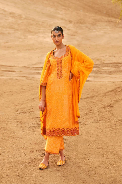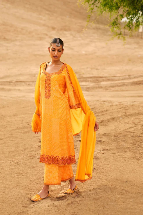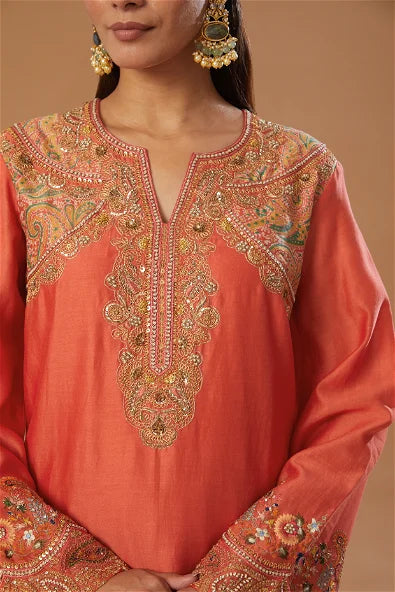 Orange Chanderi Embroidered Kurta Set