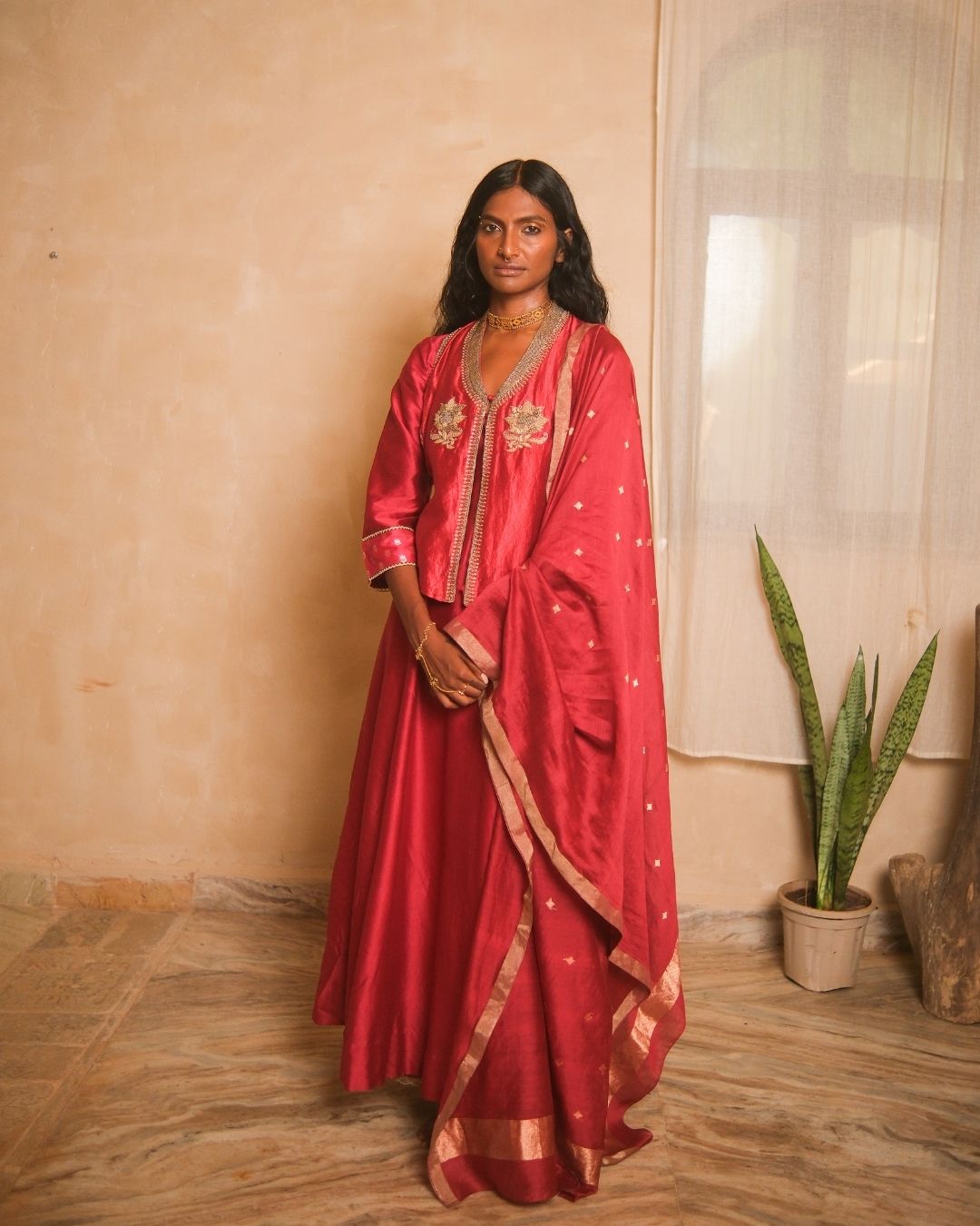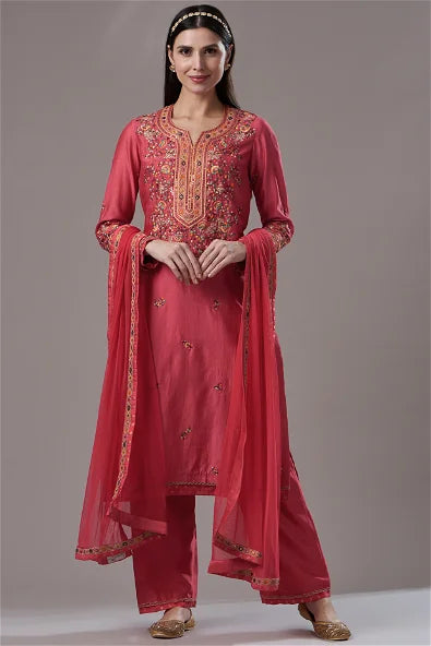 Red Embroidered Kurta Set