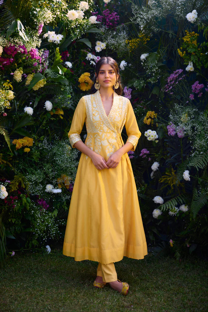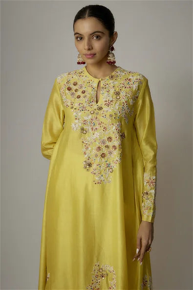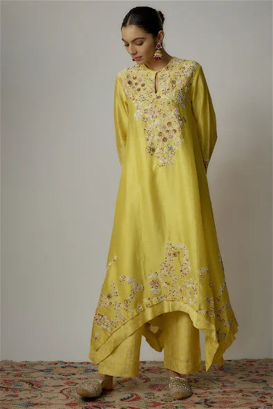 Yellow Chanderi Dori Embroidered Kurta Set