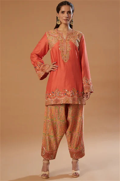 Orange marodi work kurta set