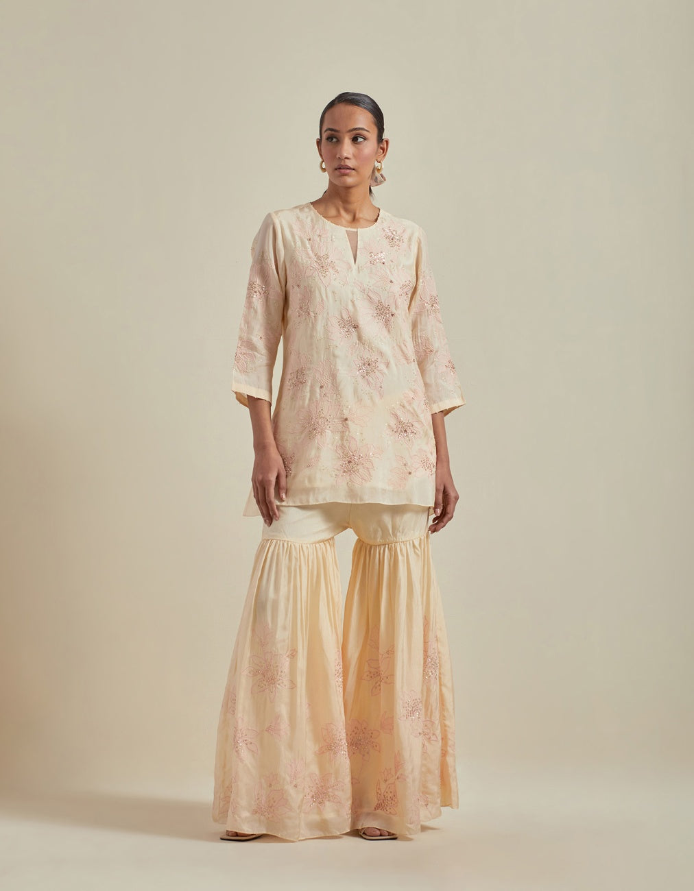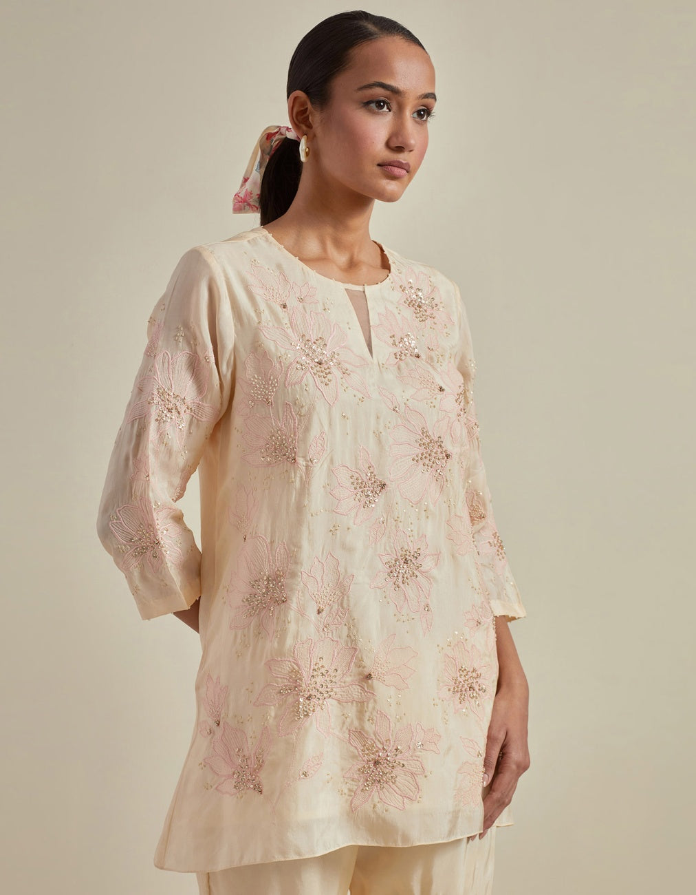 Ecru Kurta Set In Silk