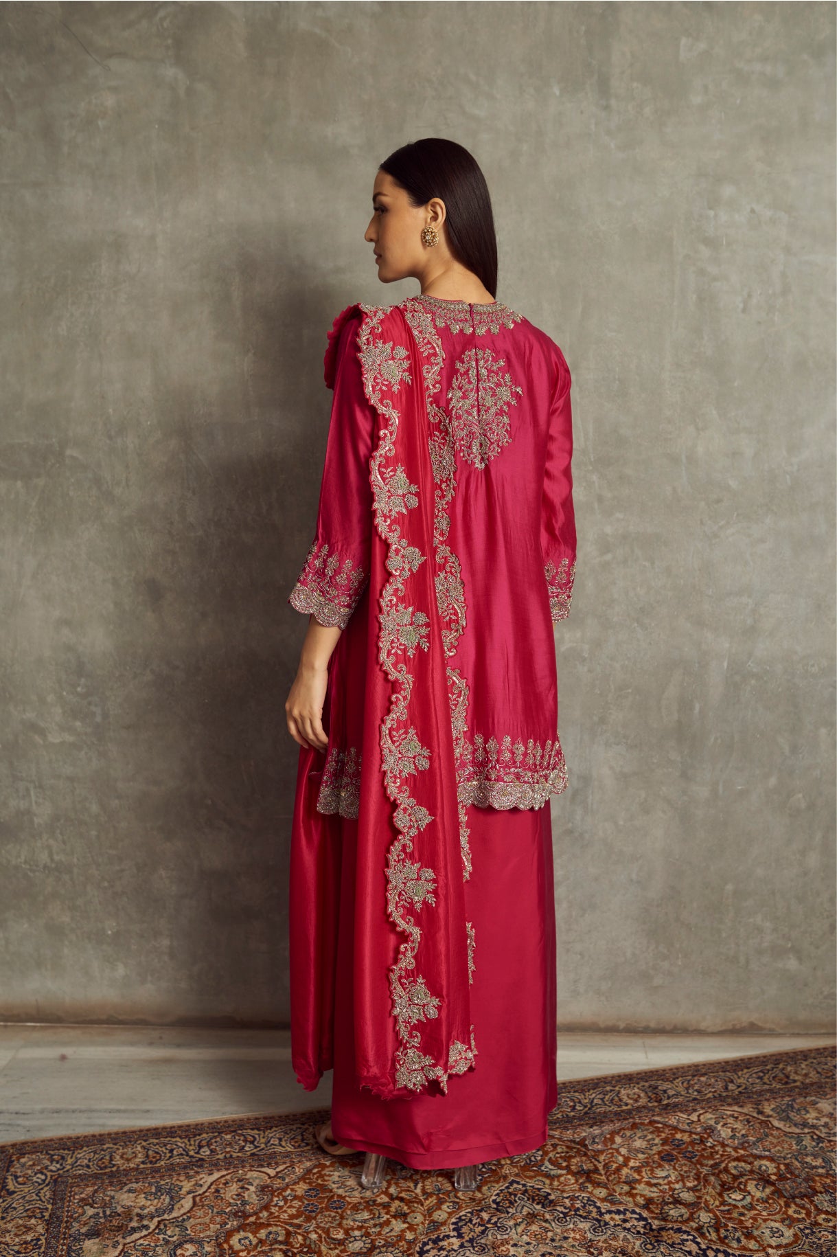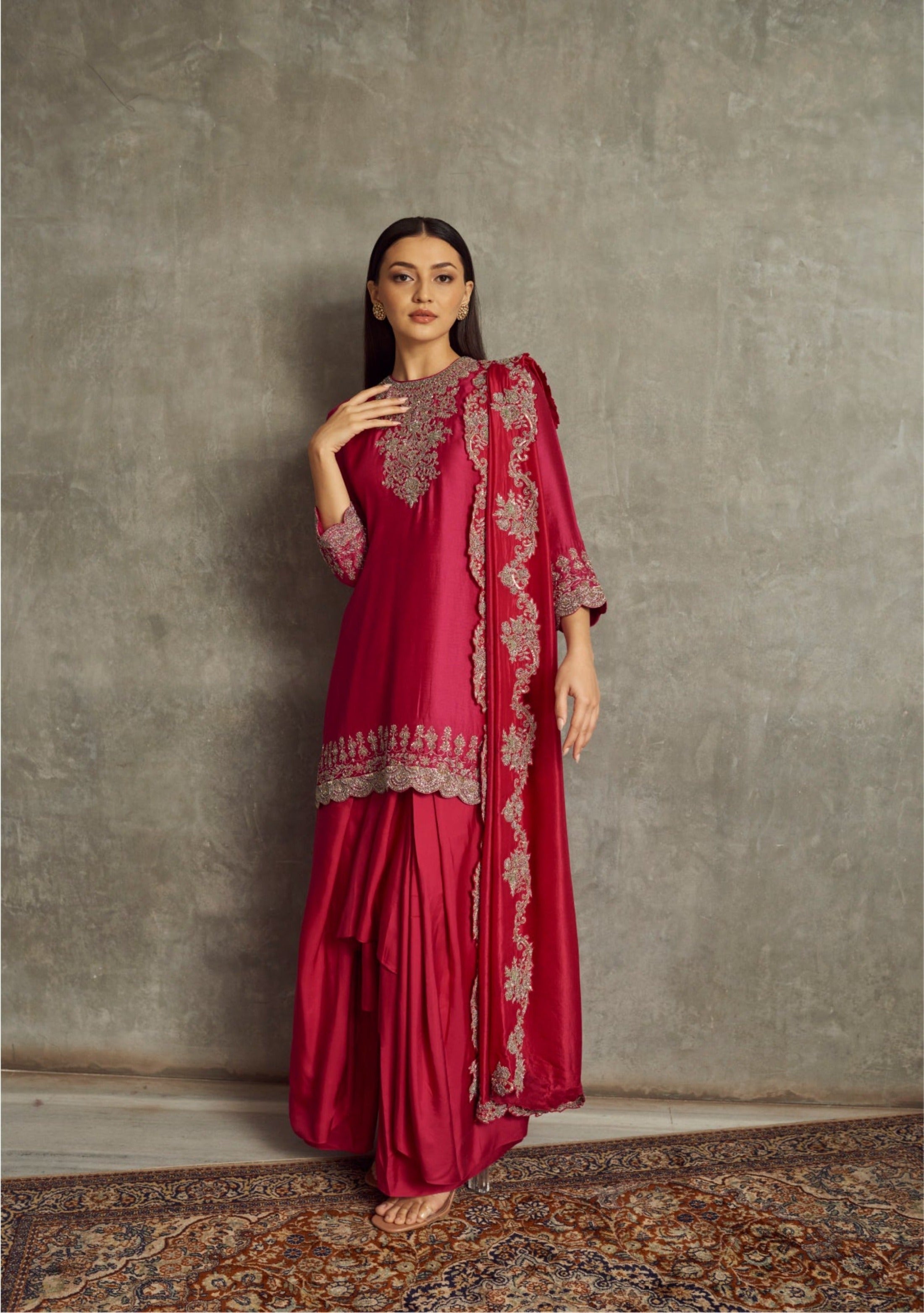 Pink Cheniya Silk Embroidered Kurta Skirt Set