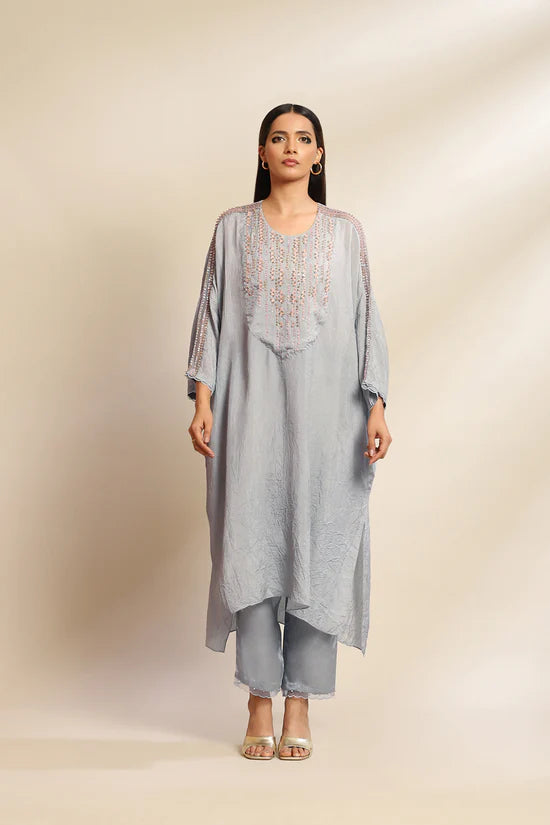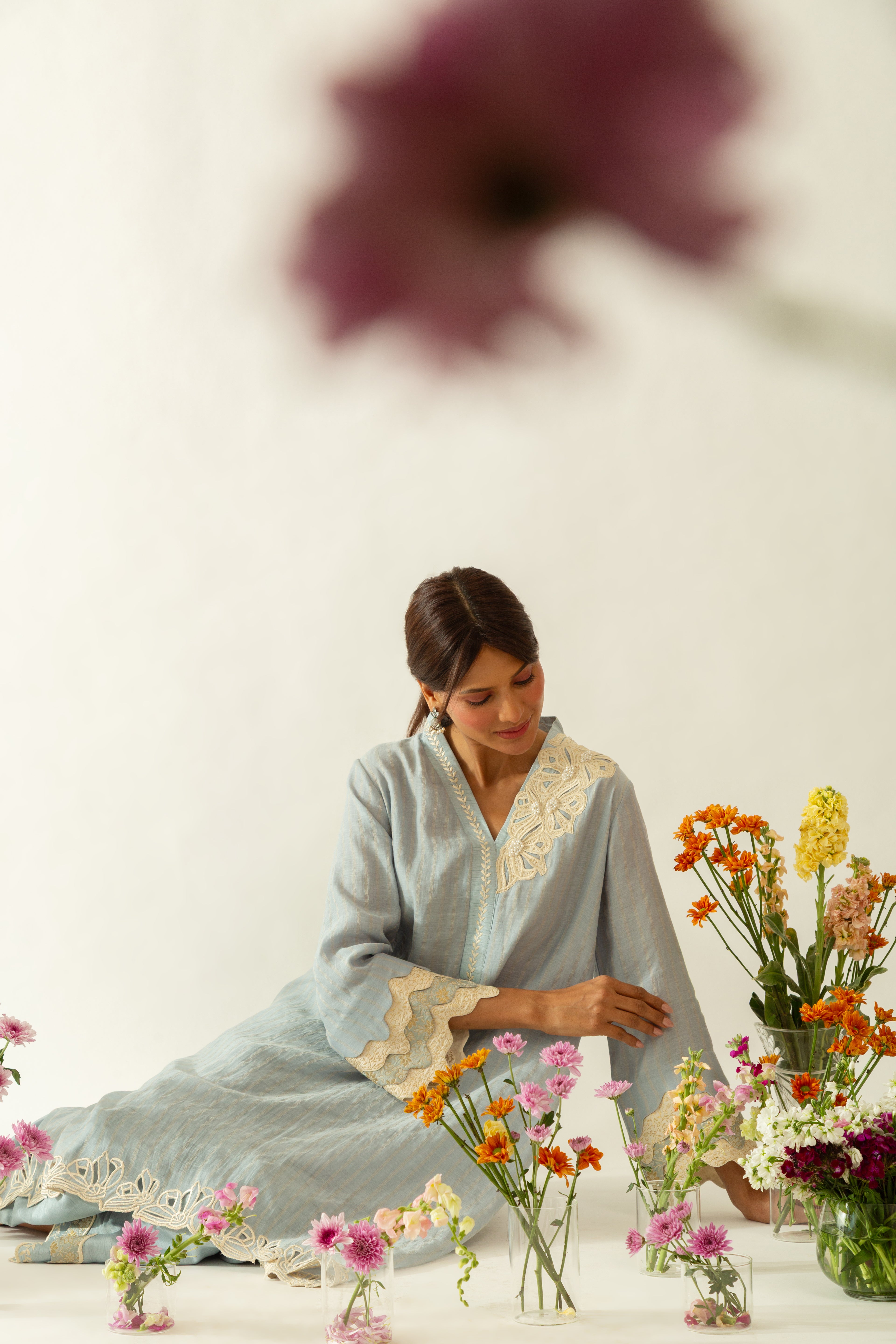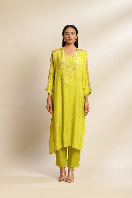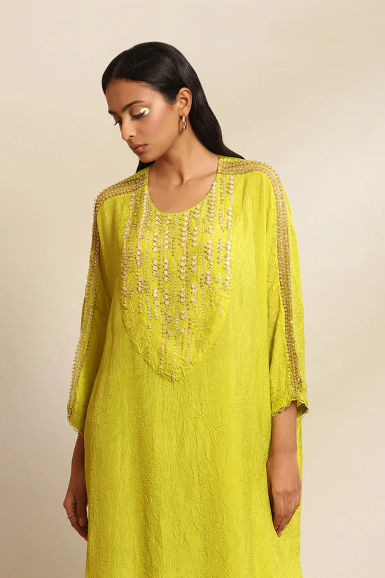 Olive Green Pankh Pintuck Embroidered Kurta Set