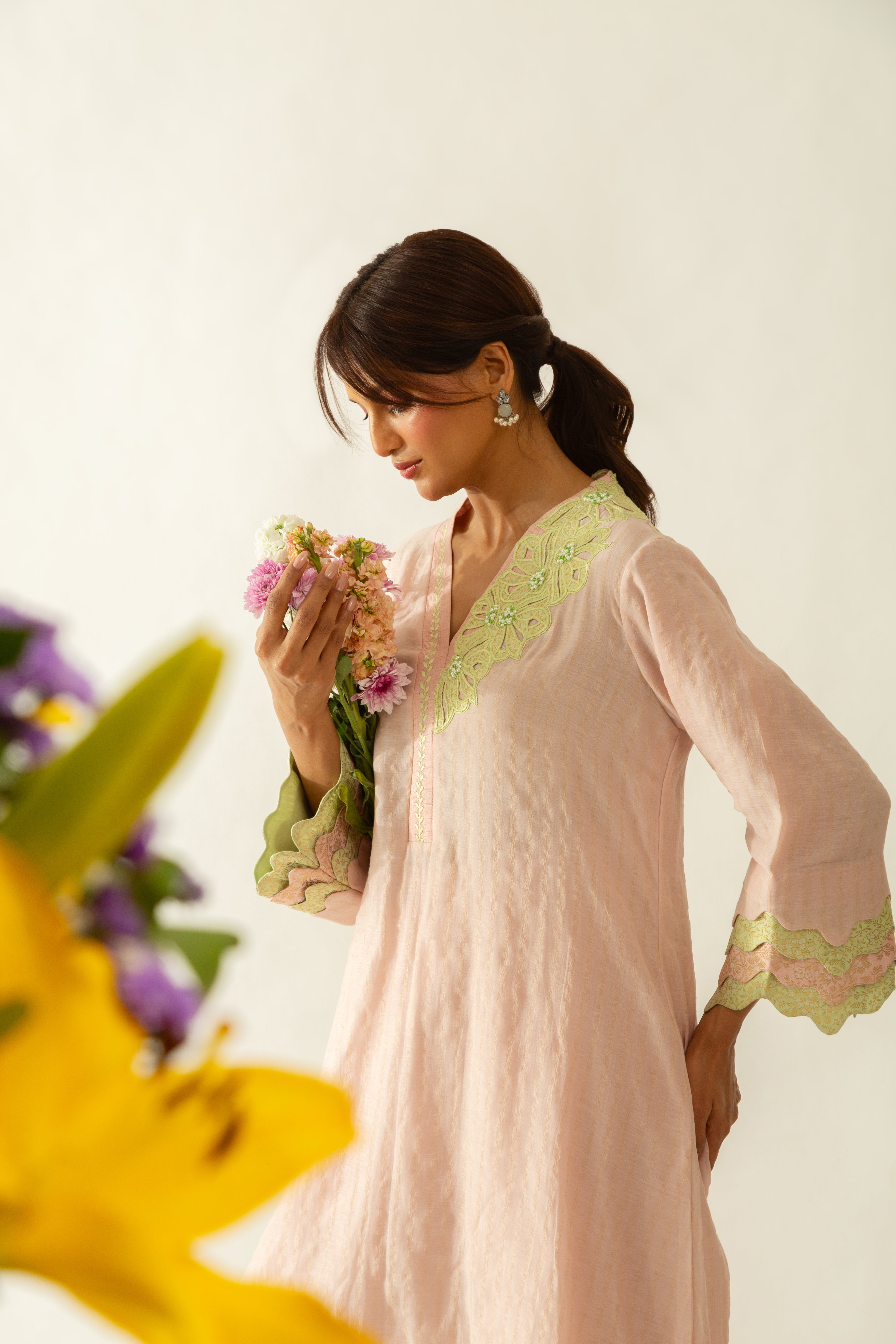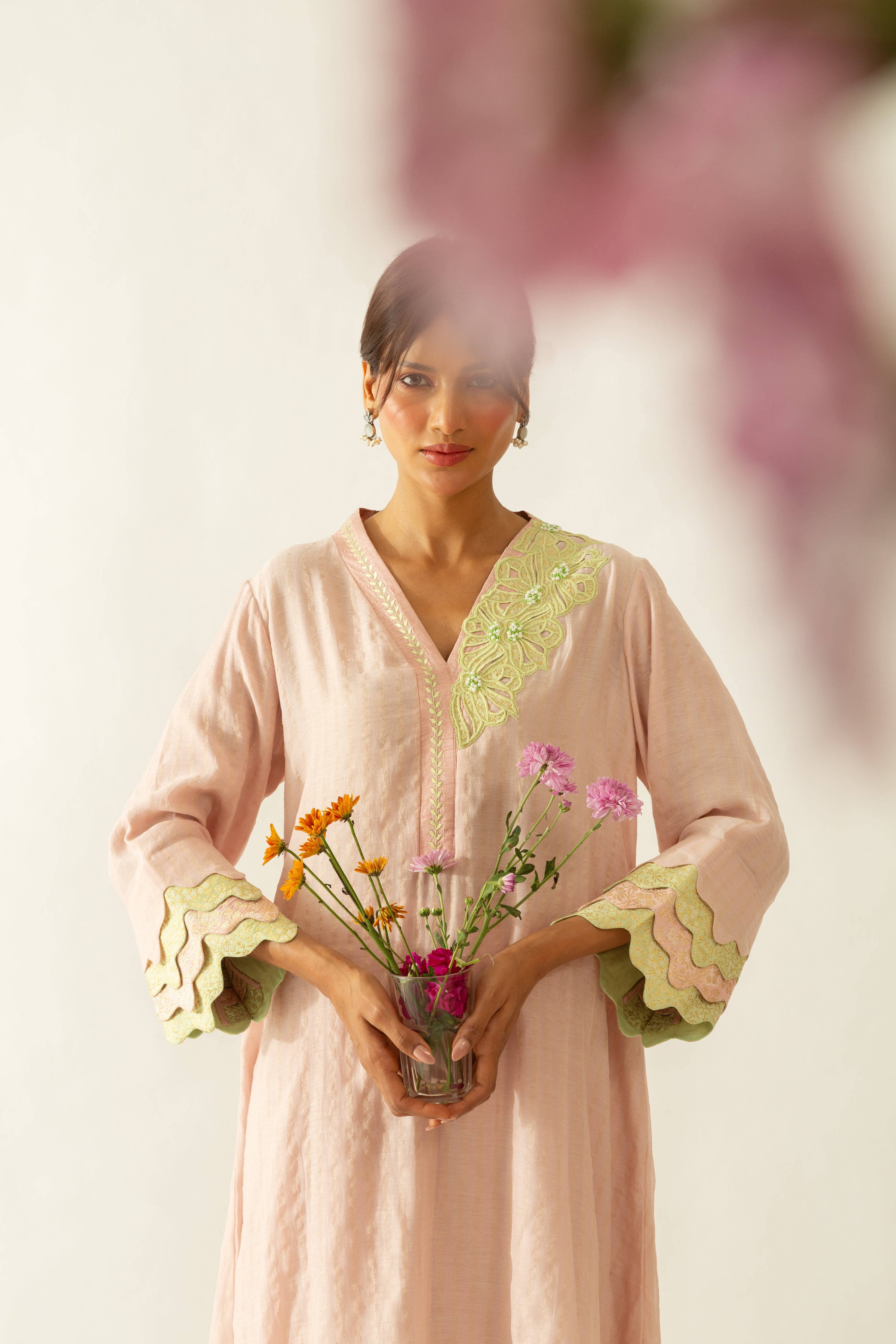 Pink Multi Zardozi Buti Frockstyle Kurta set