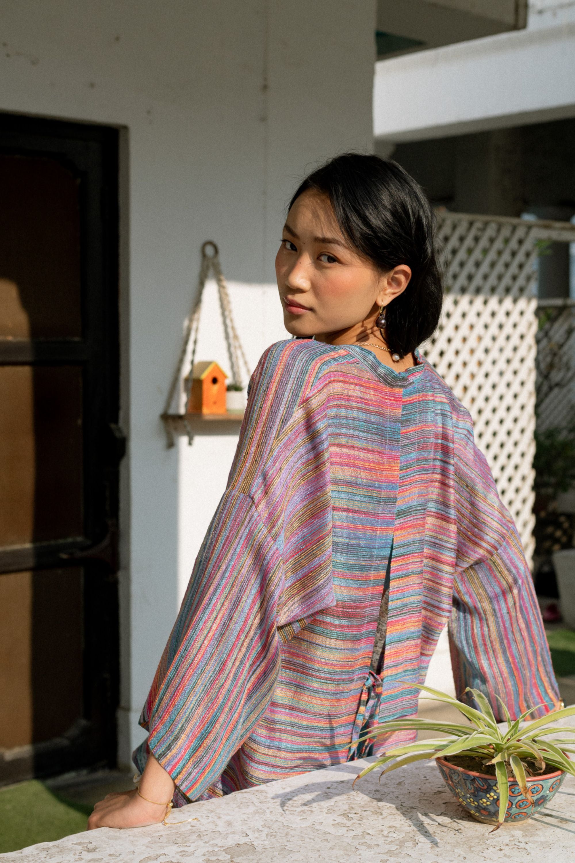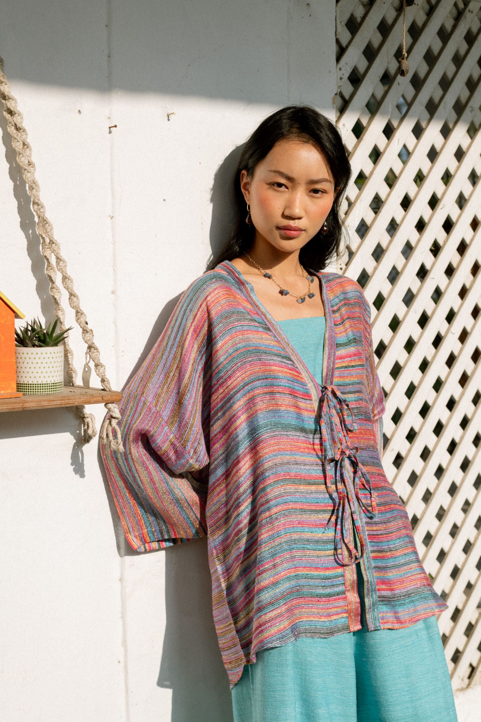 Textured Linen Shrug with Back Slit & Ice Blue Ensemble