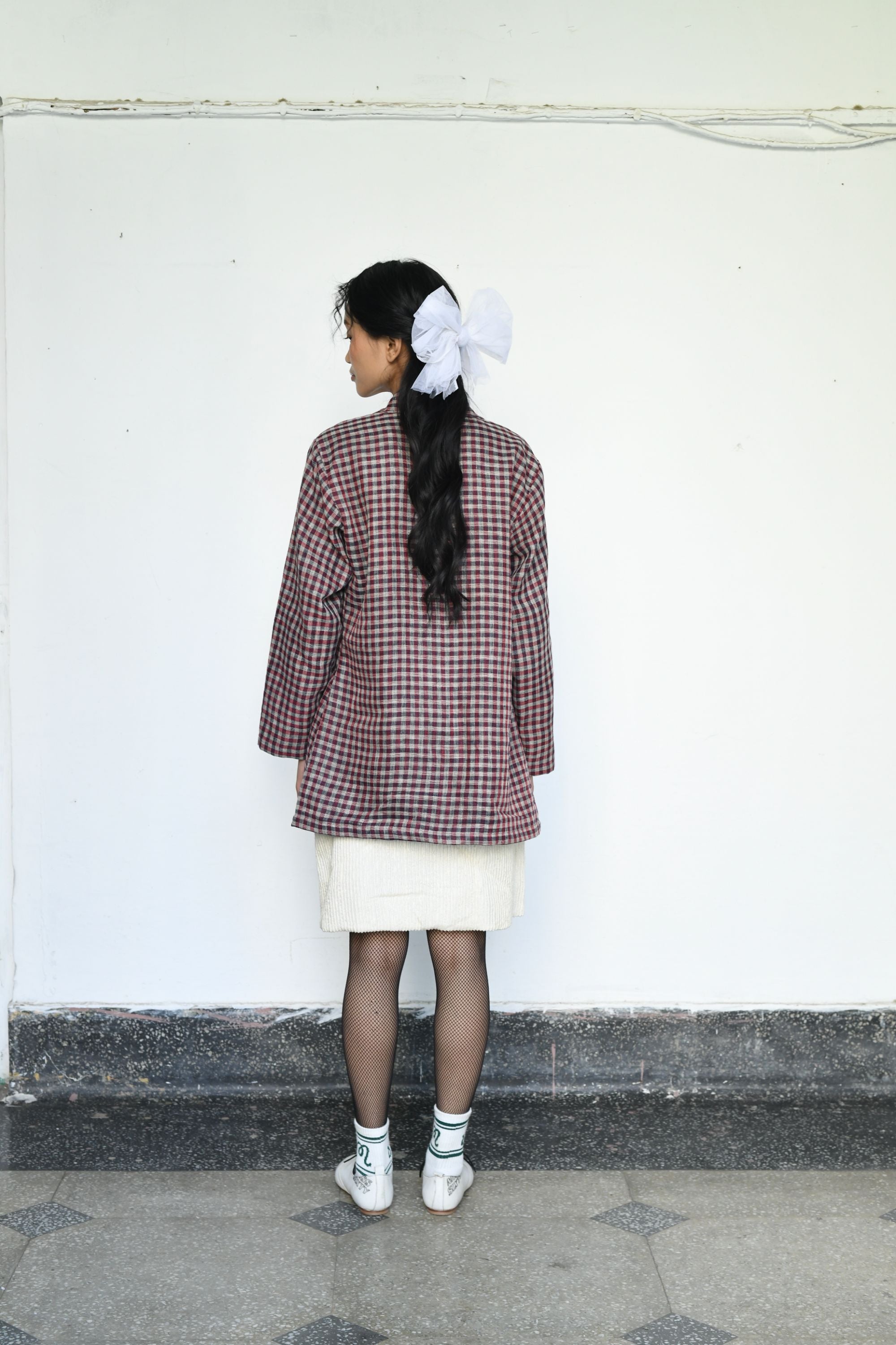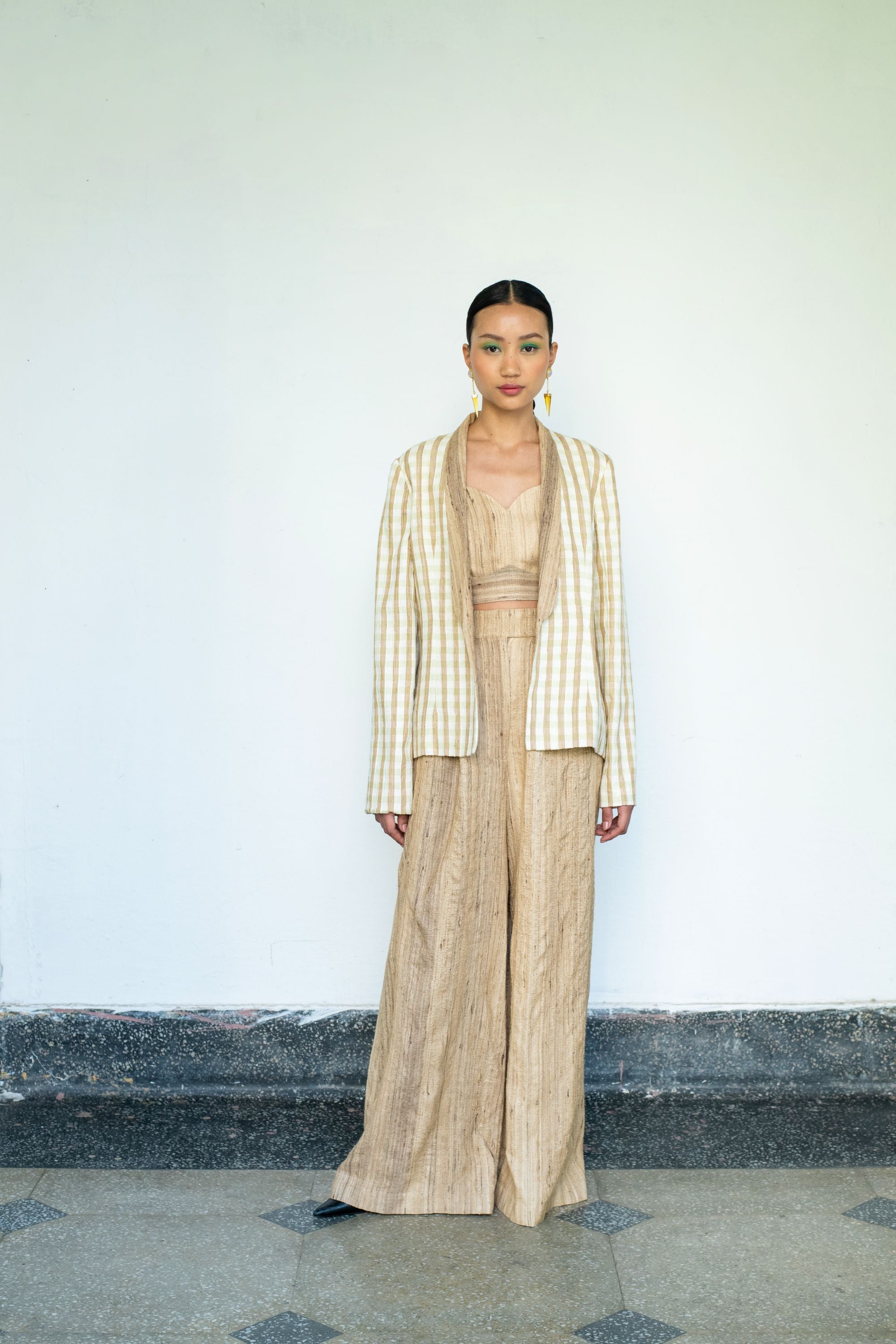 Crisp Linen Jacket with Bralette & Cream Textured Skirt