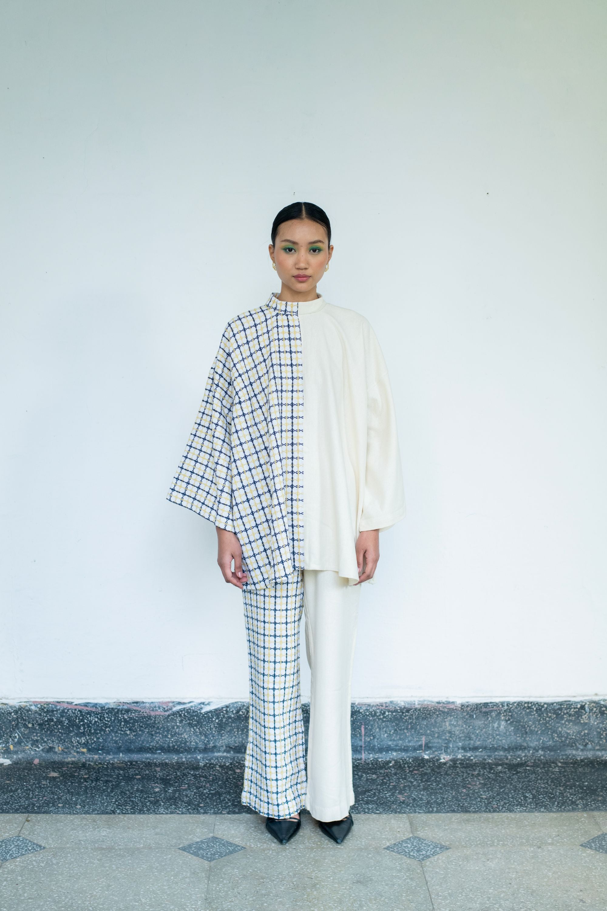 Ombre Modal Satin Shirt with Cape & Streamlined Trousers