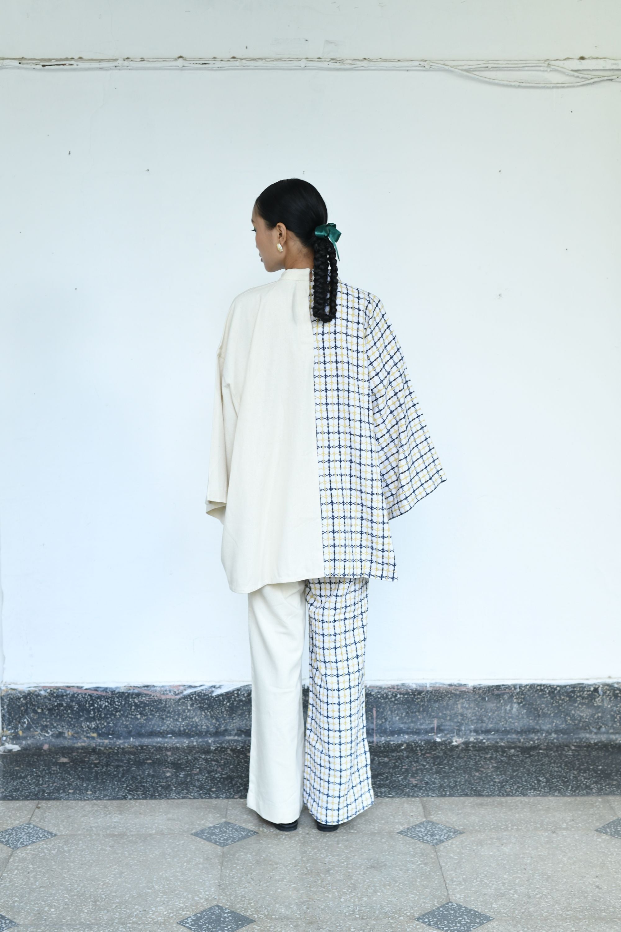 Luxurious Linen Silk Shirt with Dramatic Flares & Wide-Leg Pants