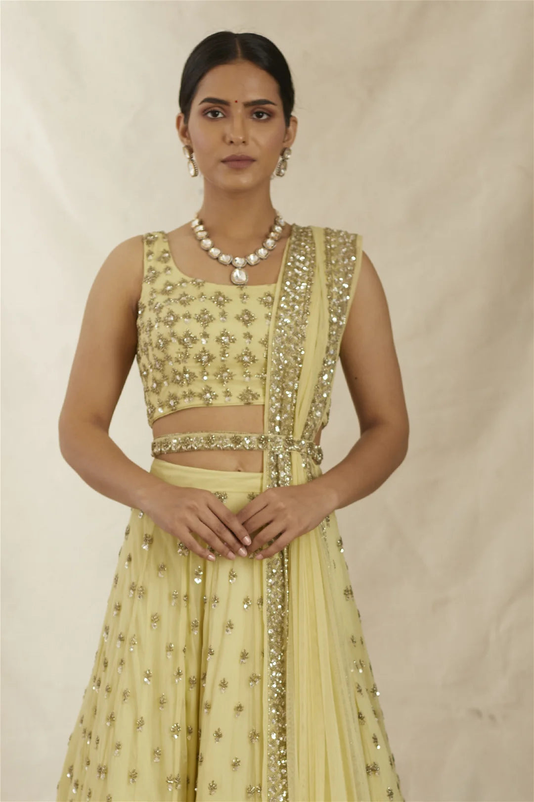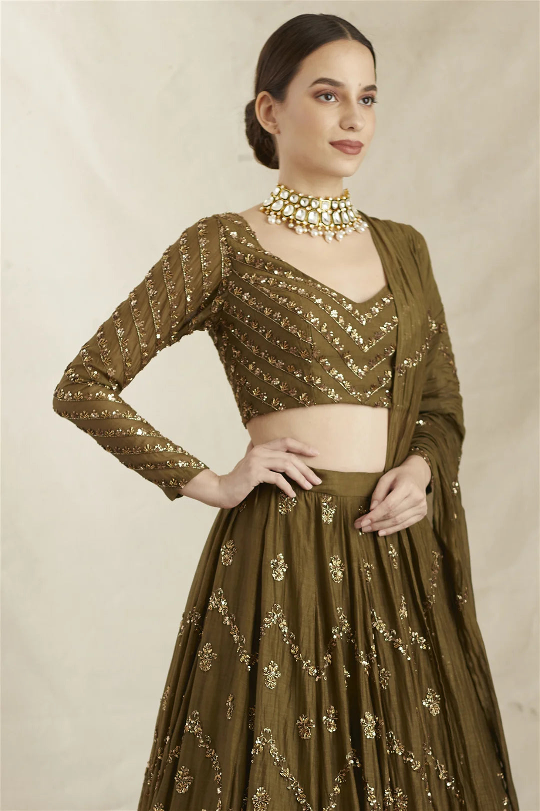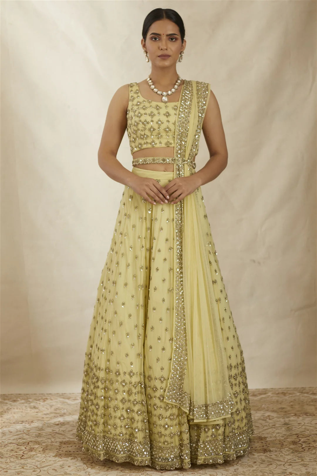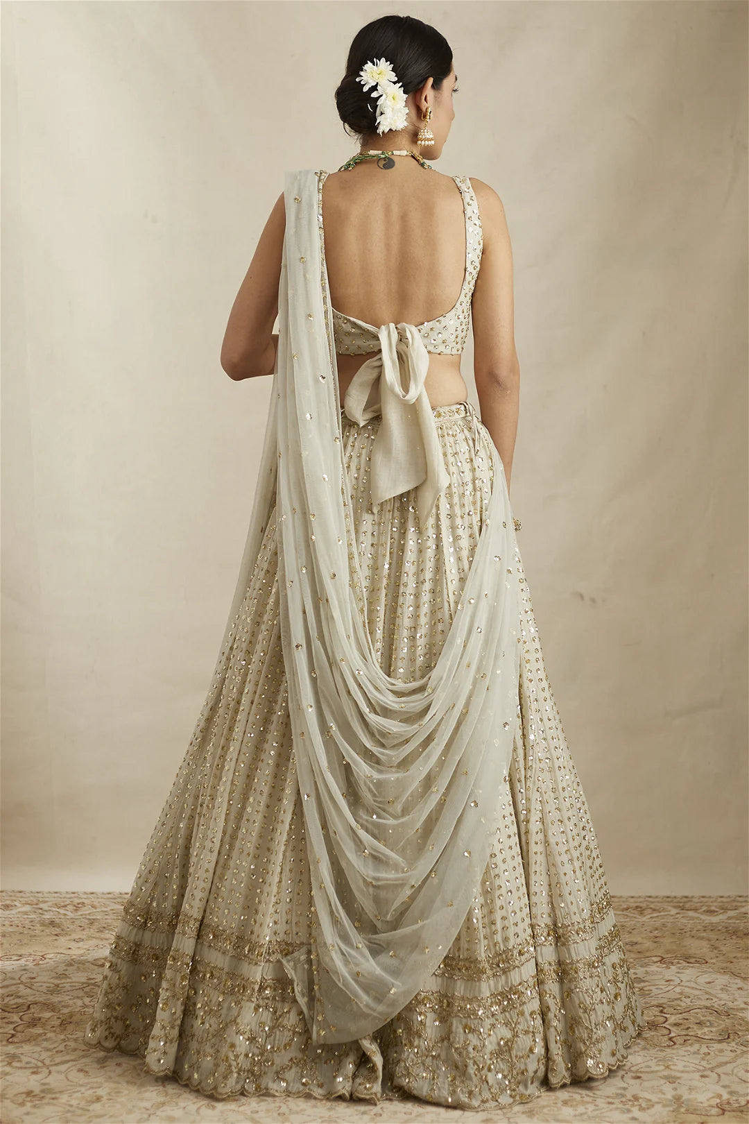 LIGHT MINT CHANDERI SILK LEHENGA SET