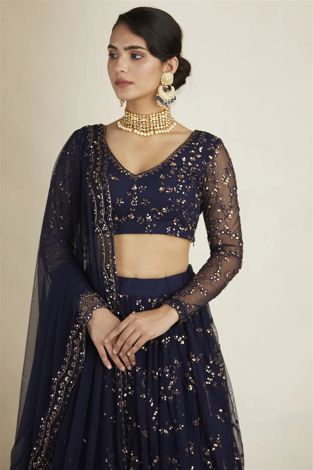 BLUE THREAD WITH SEQUENCE WORK LEHENGA SET