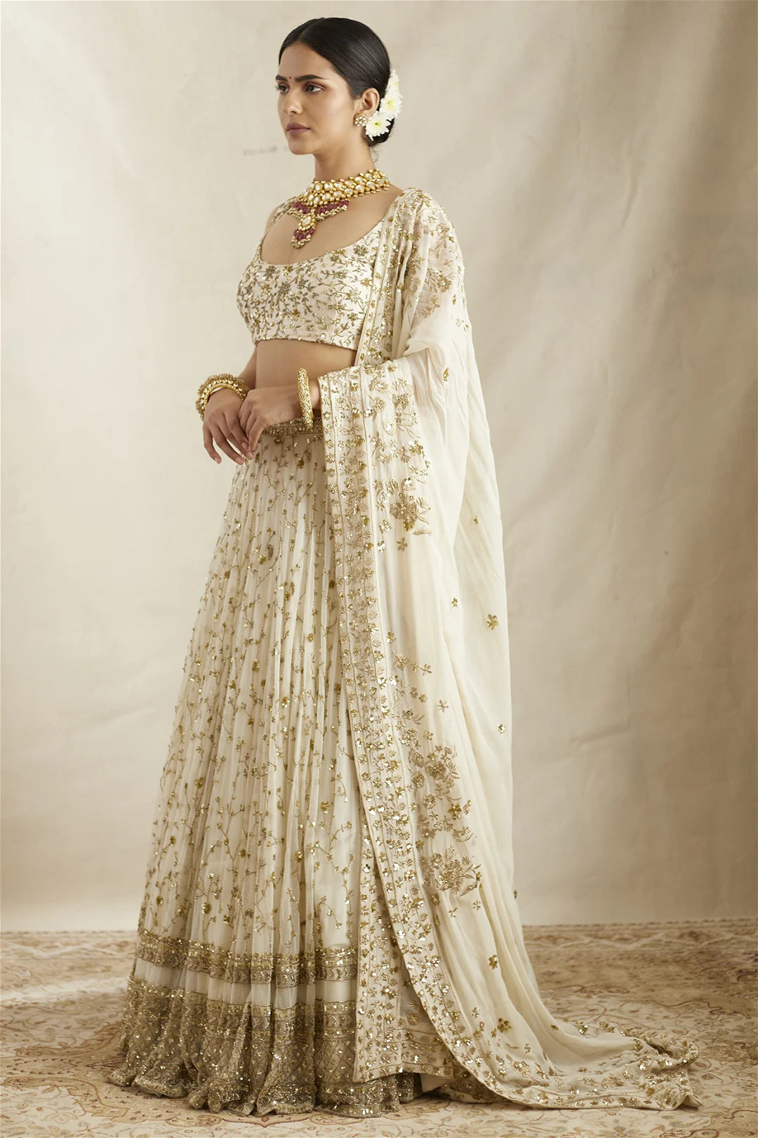WHITE AND BLACK RAW SILK LEHENGA SET