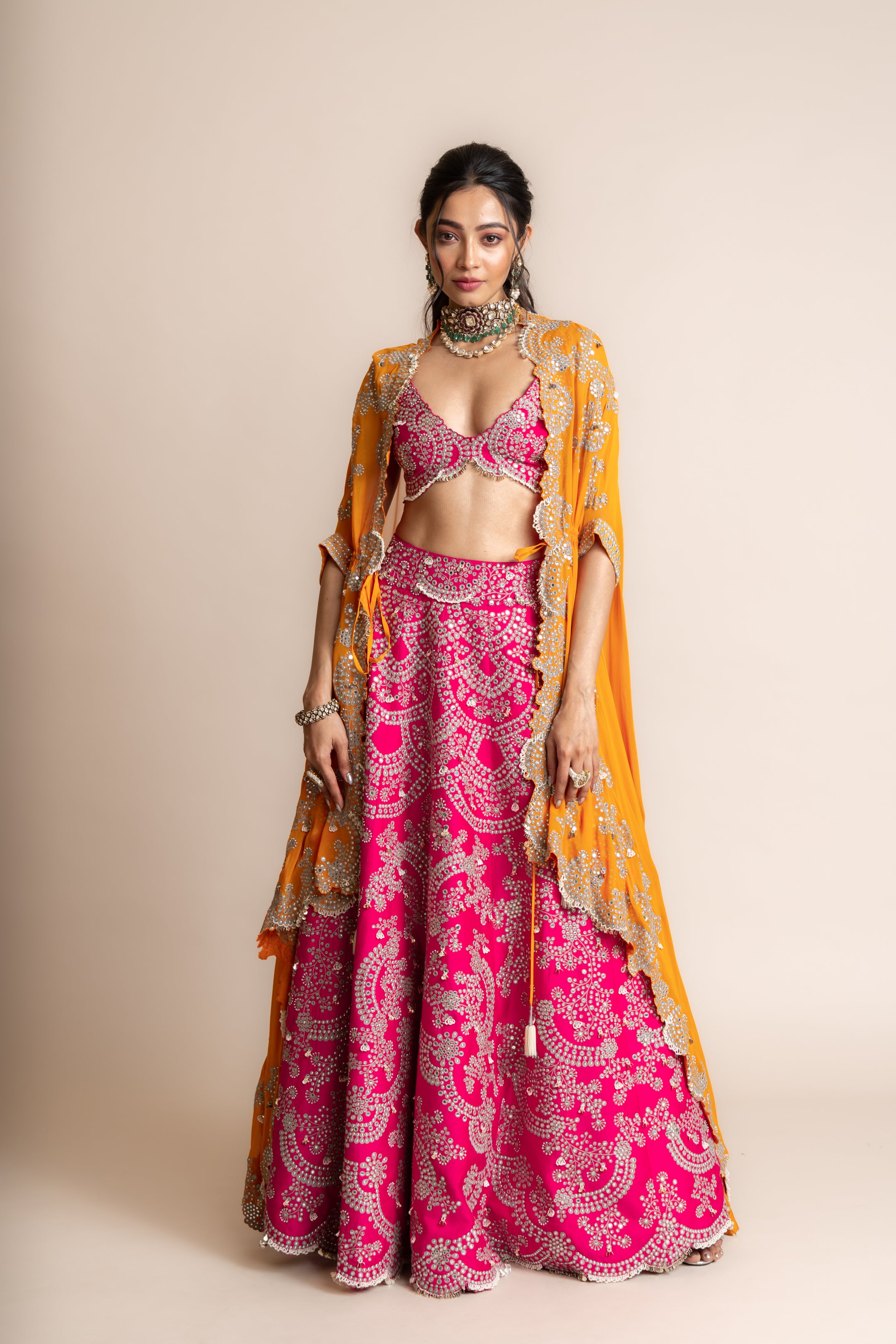 Rani Pink Heavy Lehenga Paired With Blouse & Dupatta