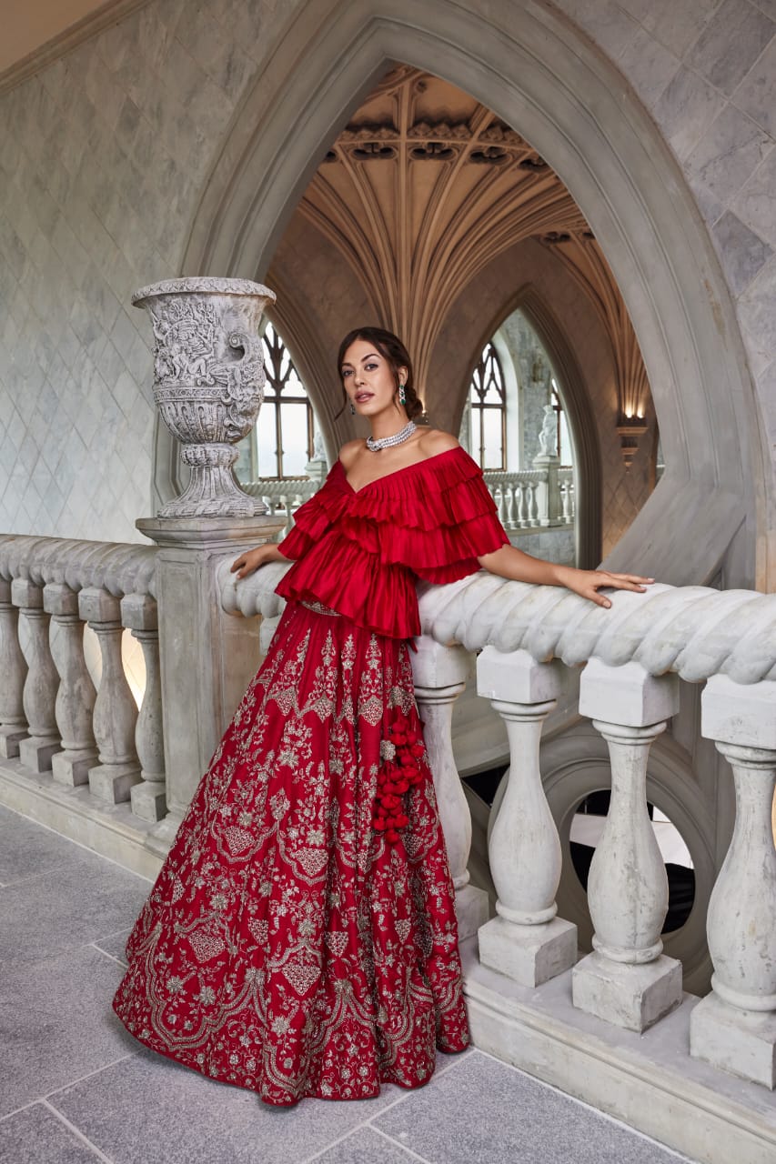 Pink Raw Silk Zardosi Embroidered Lehenga Set With Belt