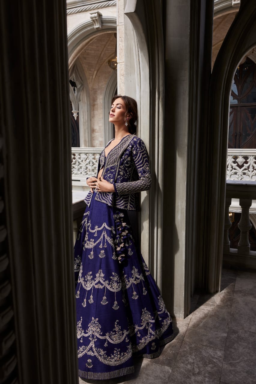 Purple Embroidered Lehenga Set WIth Pink Blouse