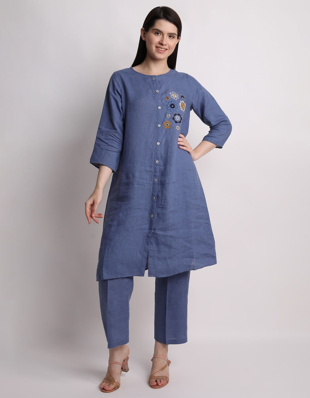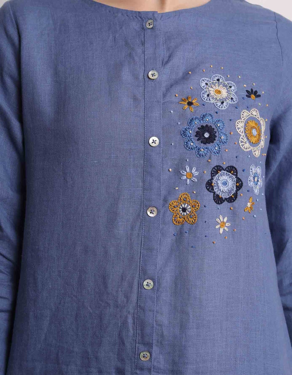 Blue Floral Embroidered Tunic