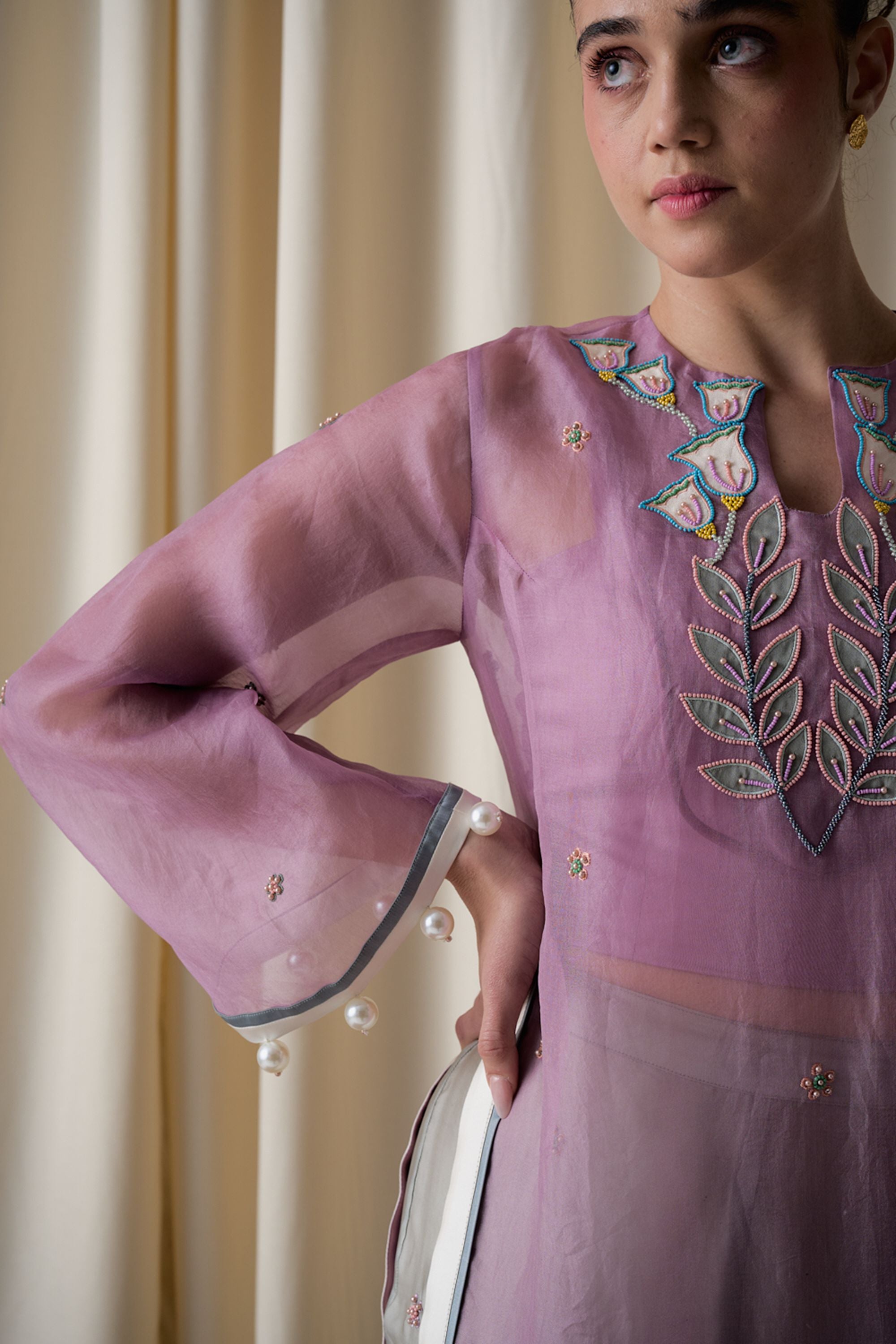 Lilac sheer tunic ensemble