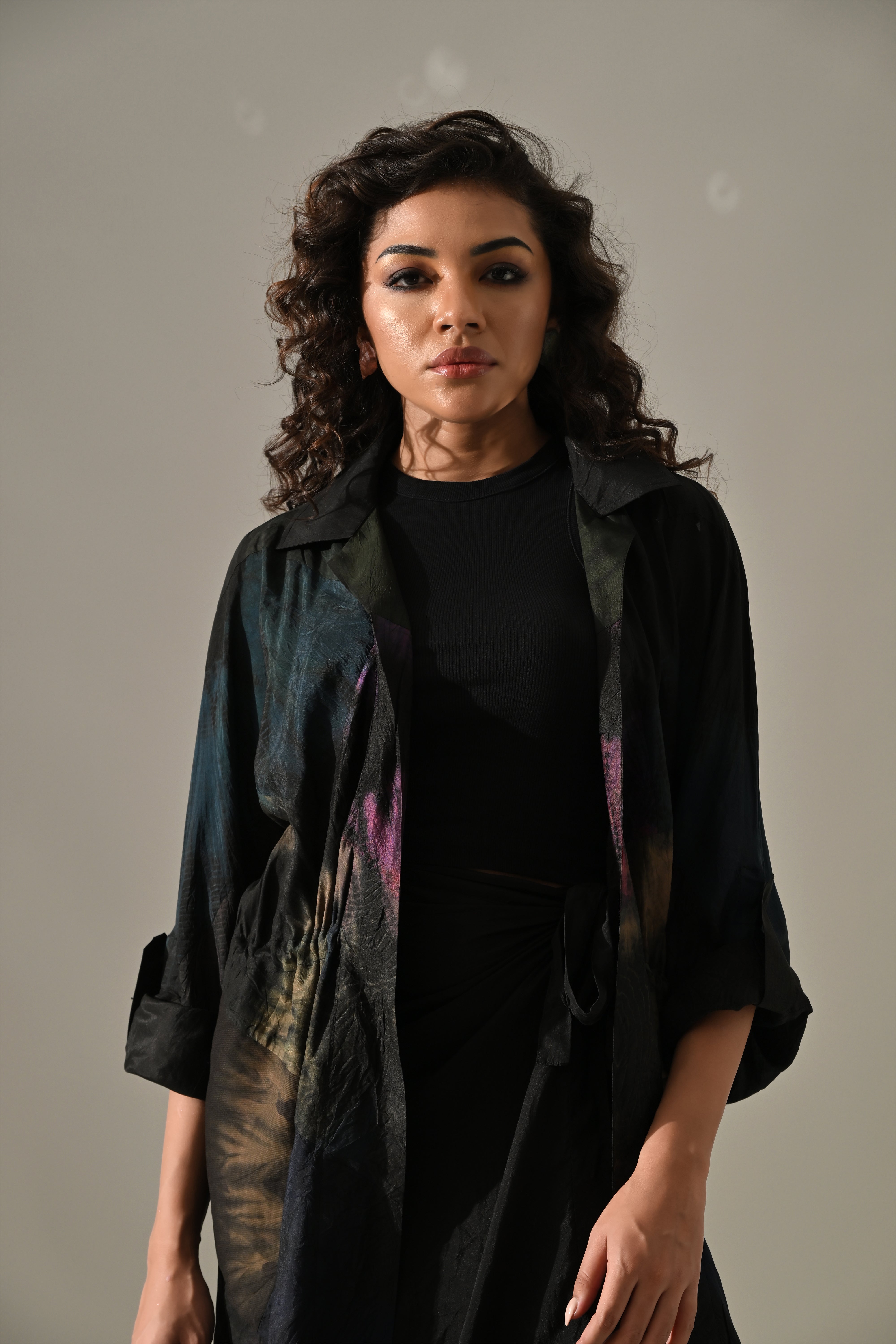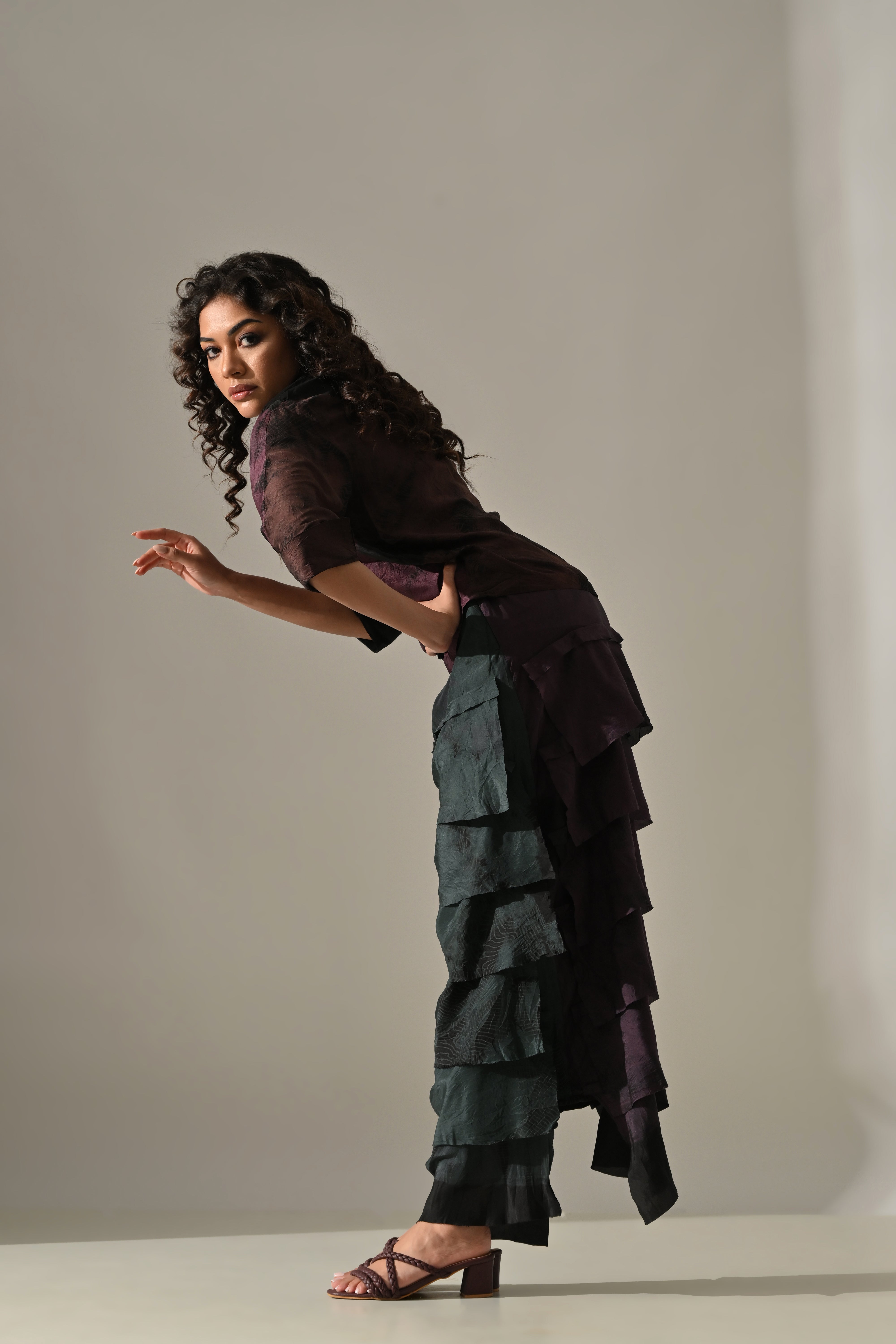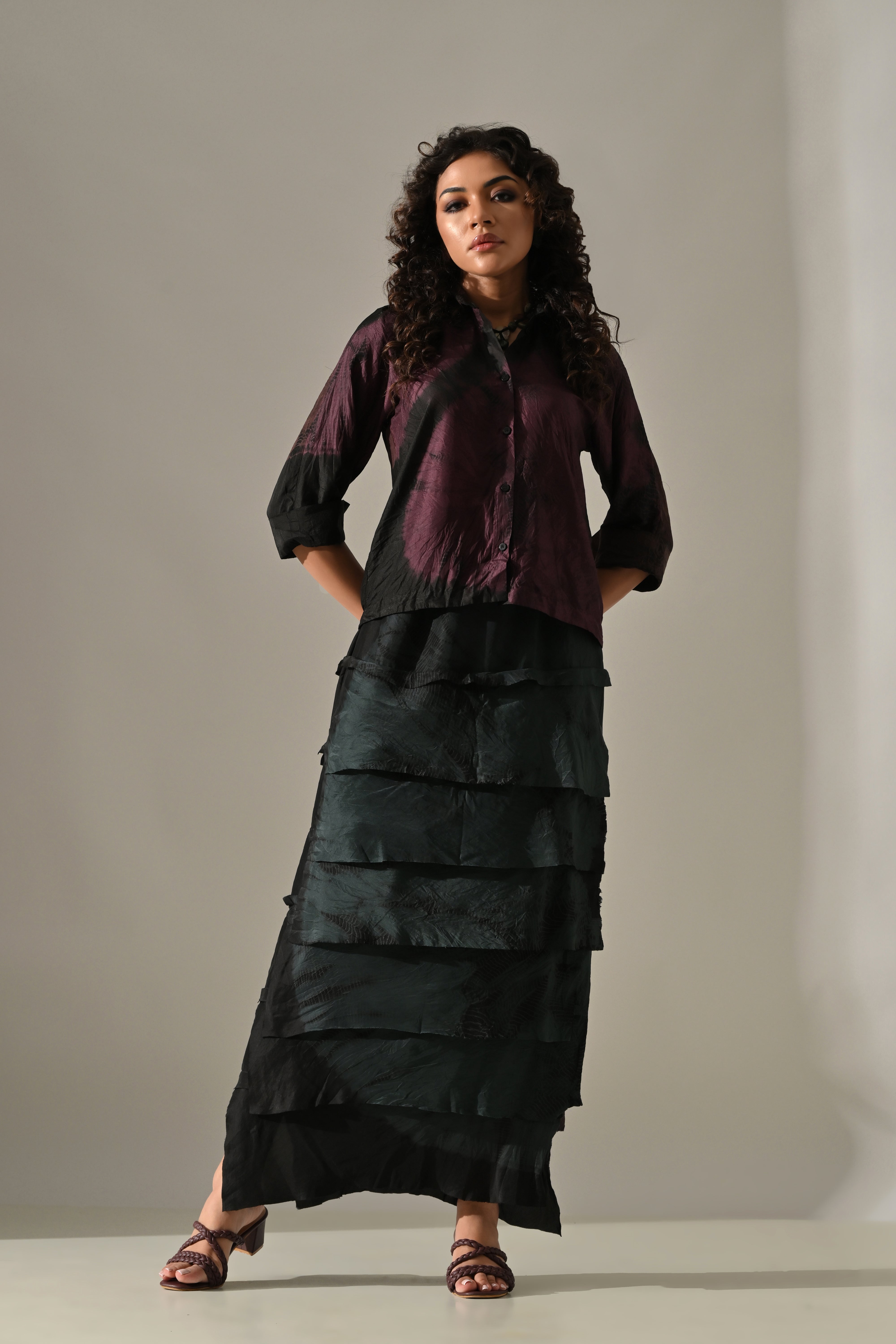 Purple Teal Brown Black Placement Tie Dye Skirt Set