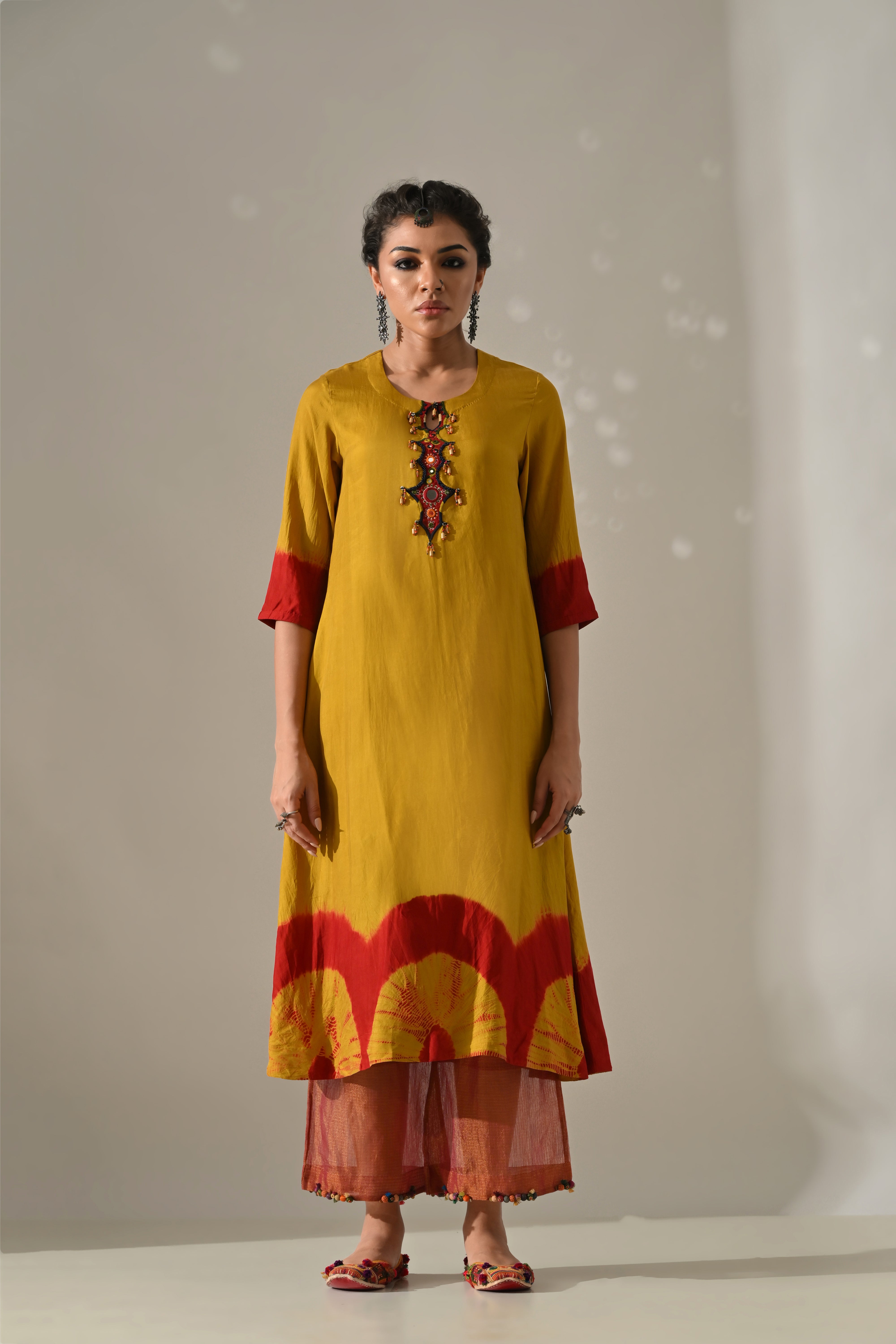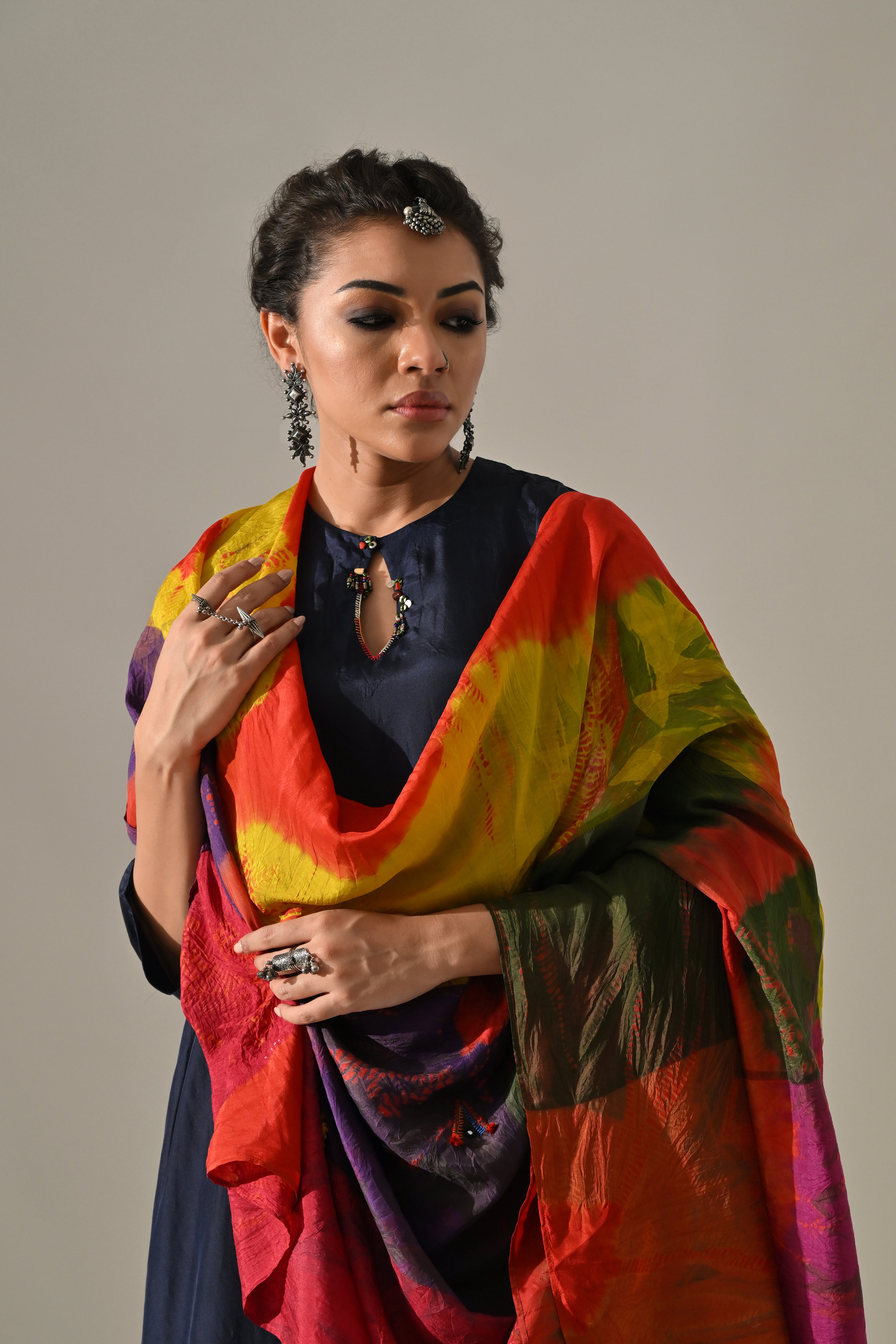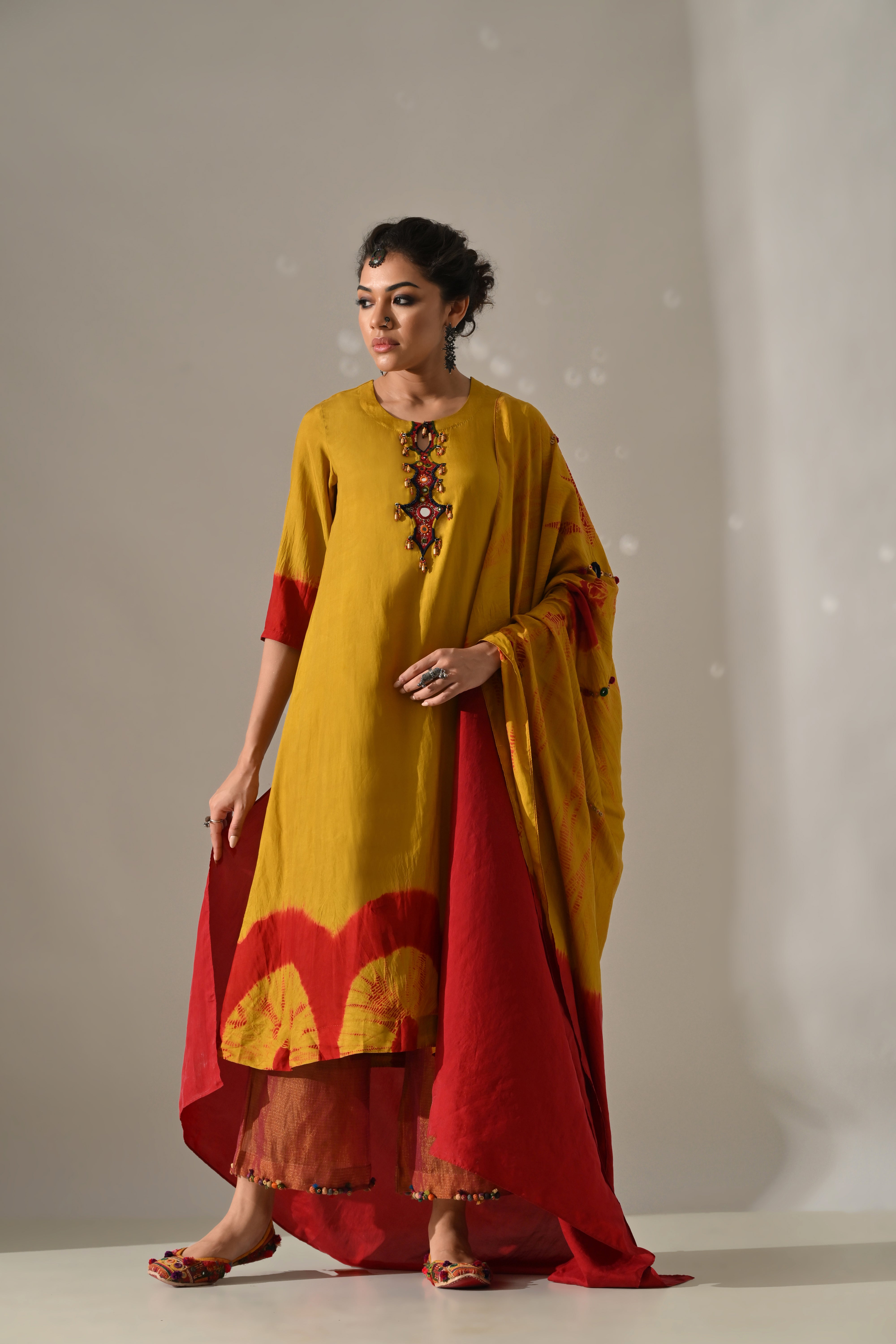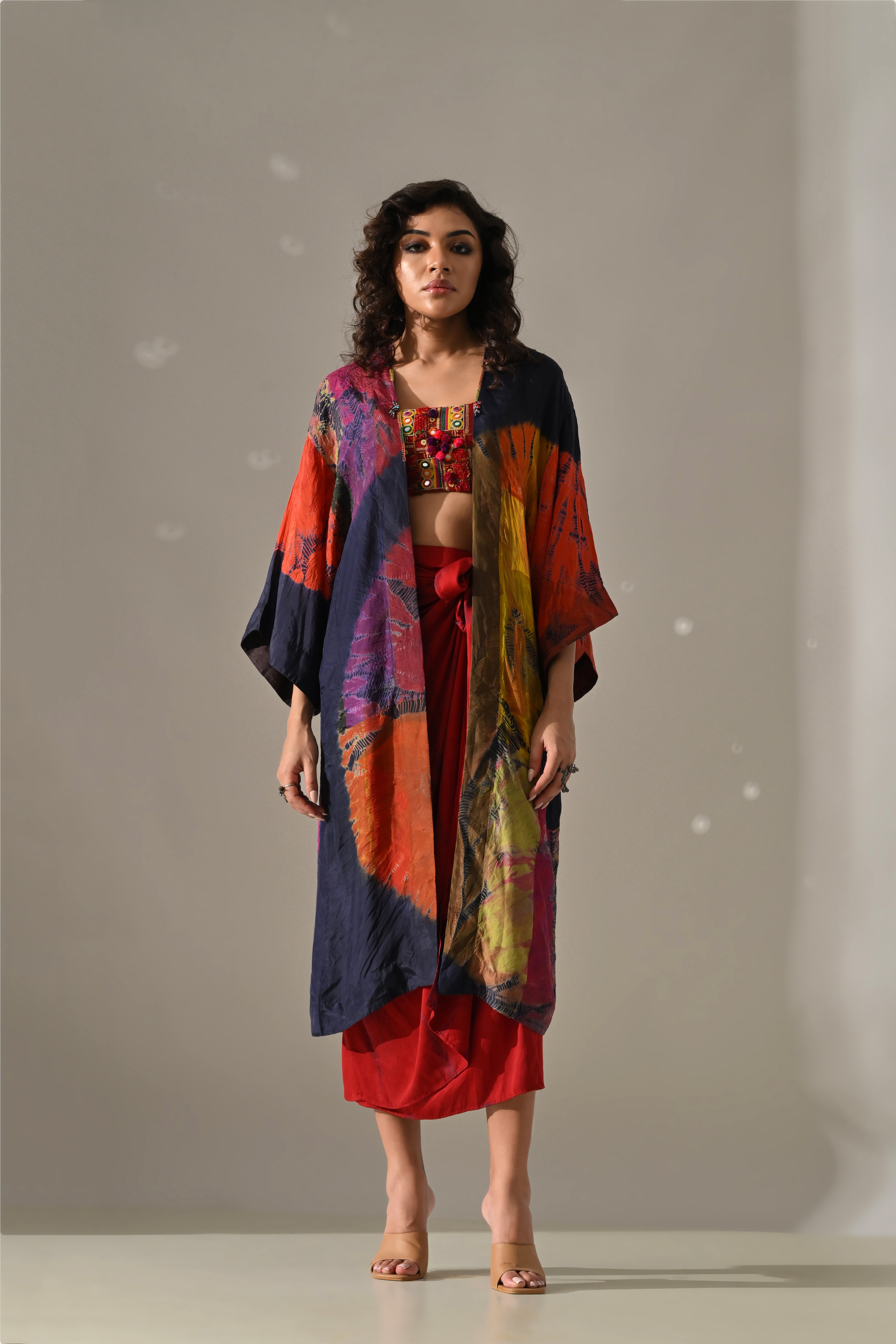 Red Multi Patchwork And Placement Tie Dye Cape Set