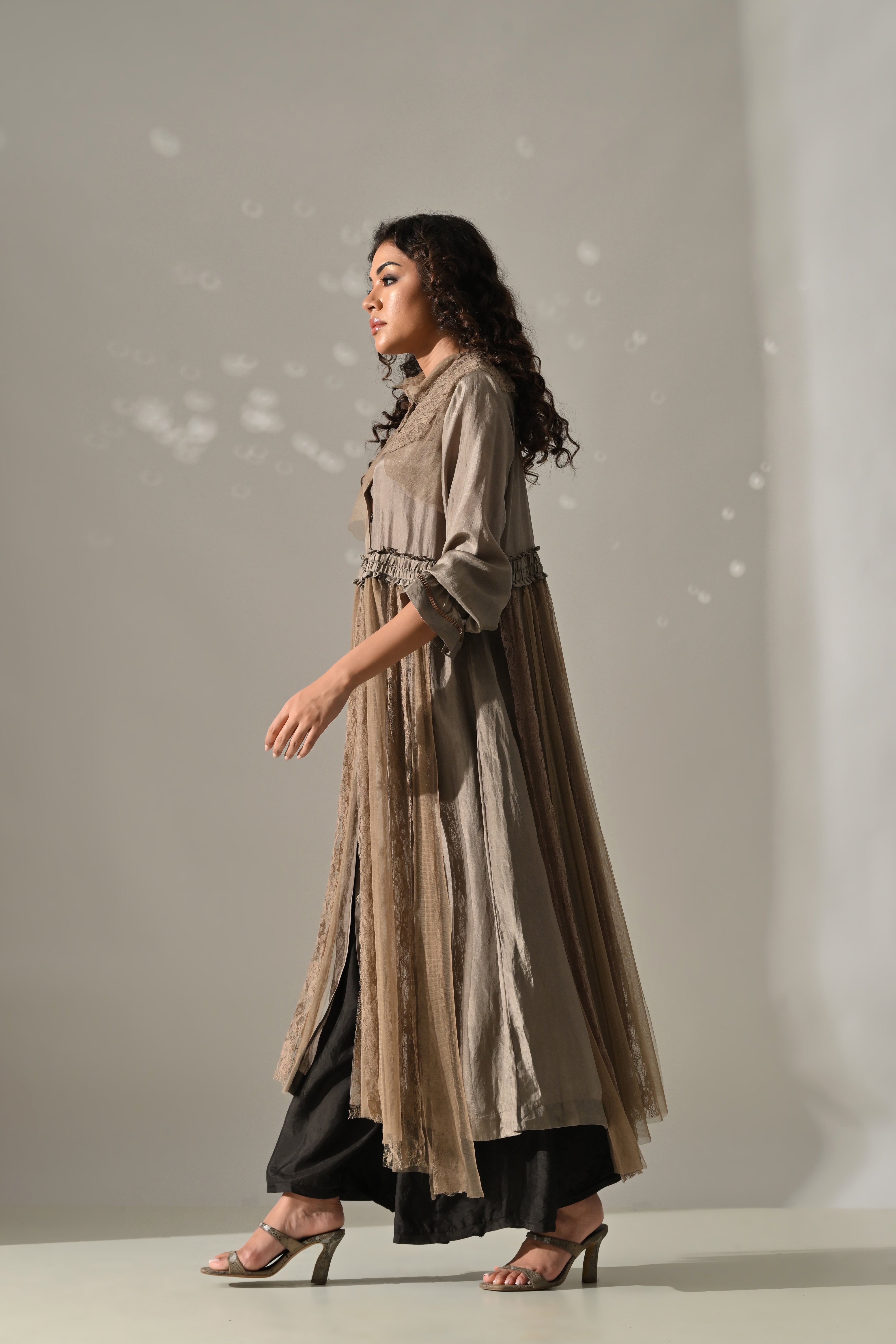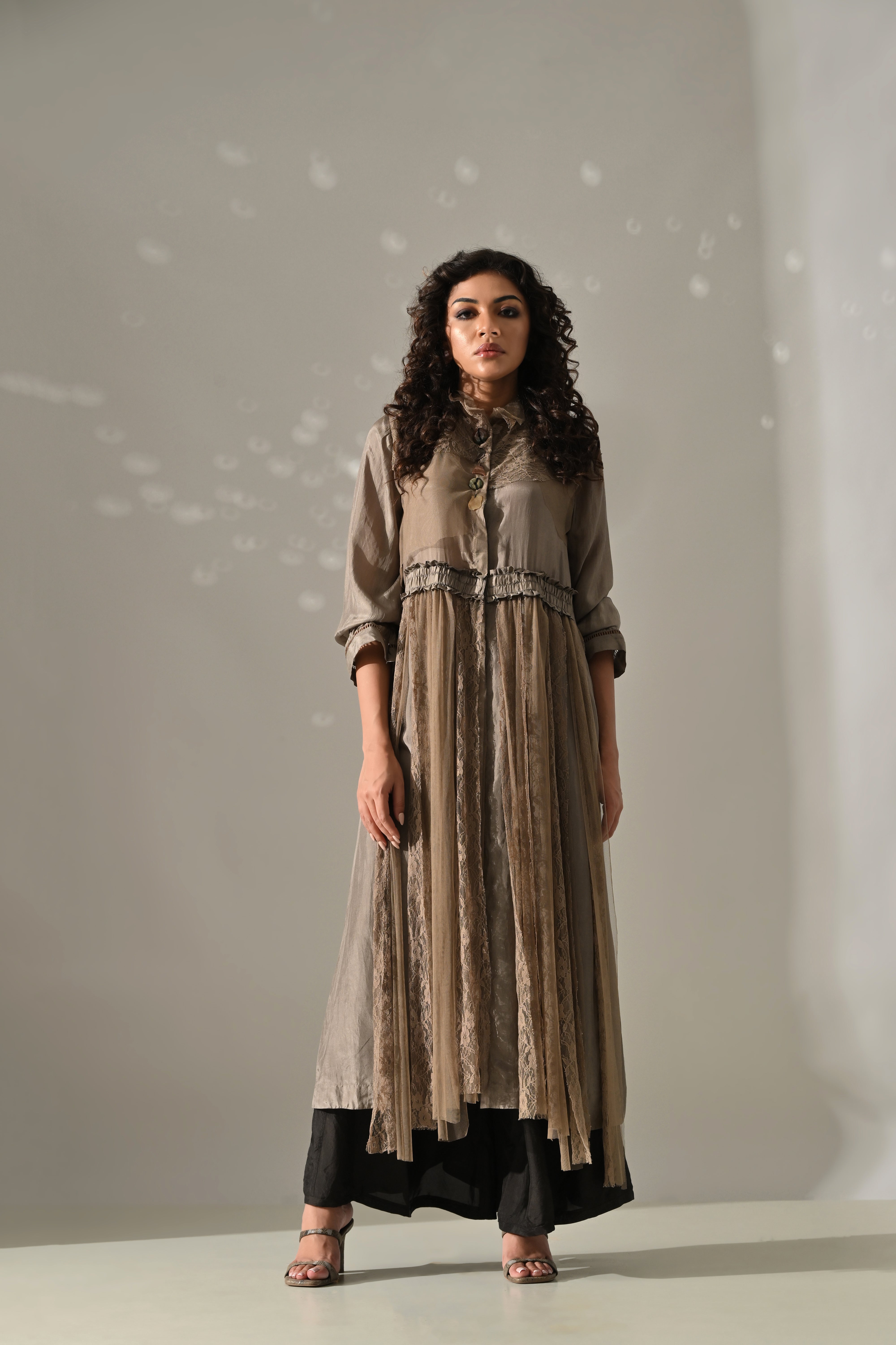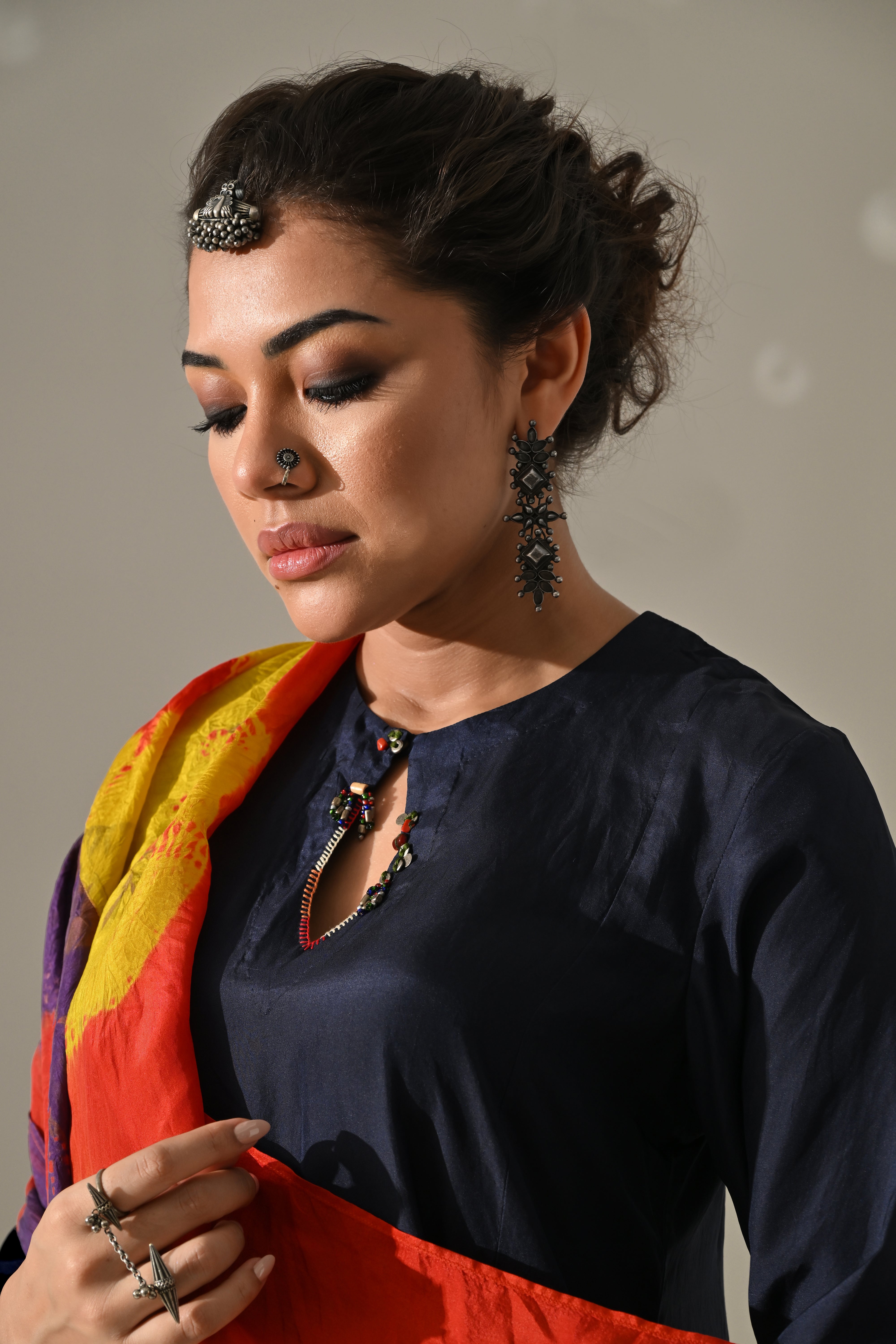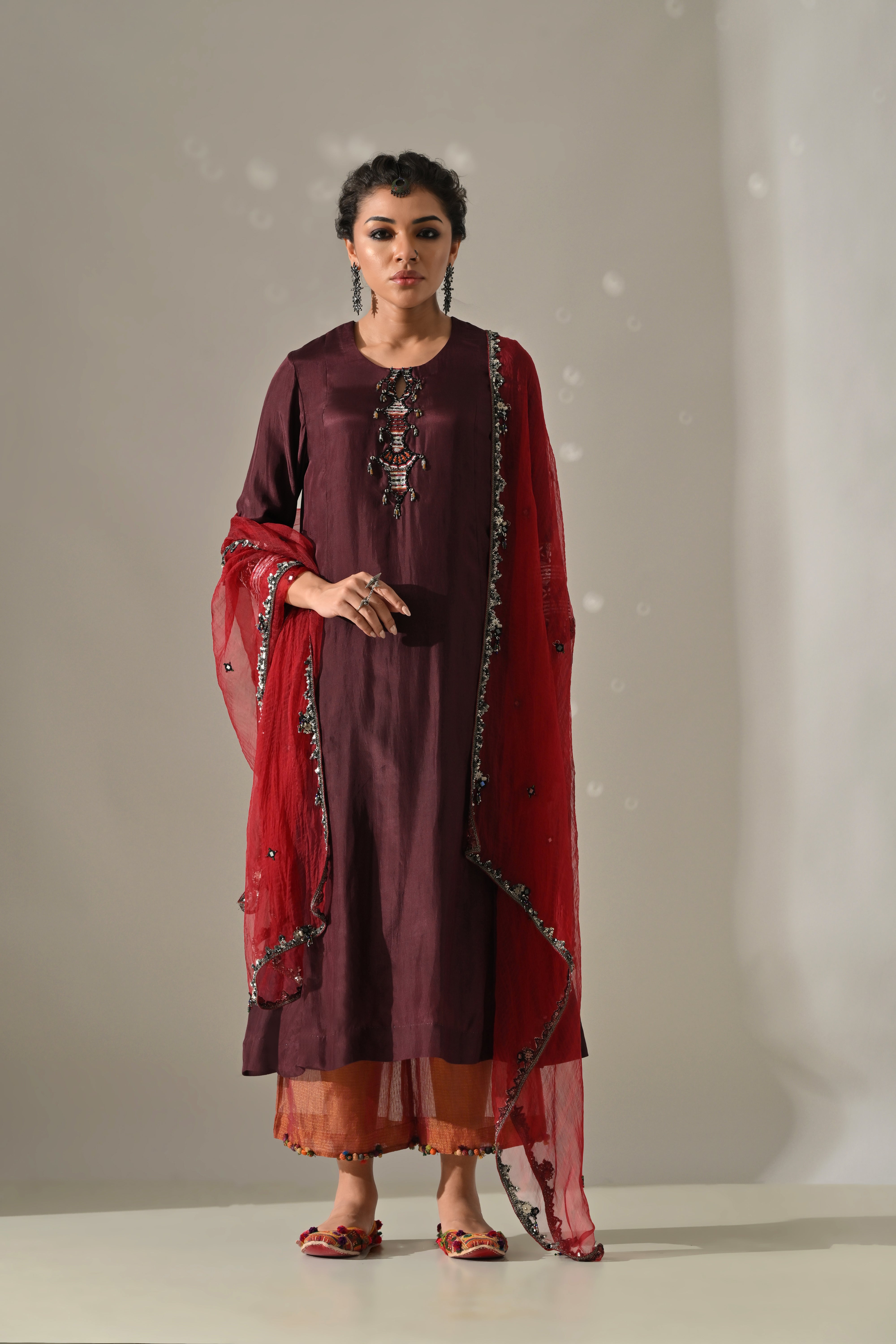 Red Multi Patchwork And Placement Tie Dye Cape Set