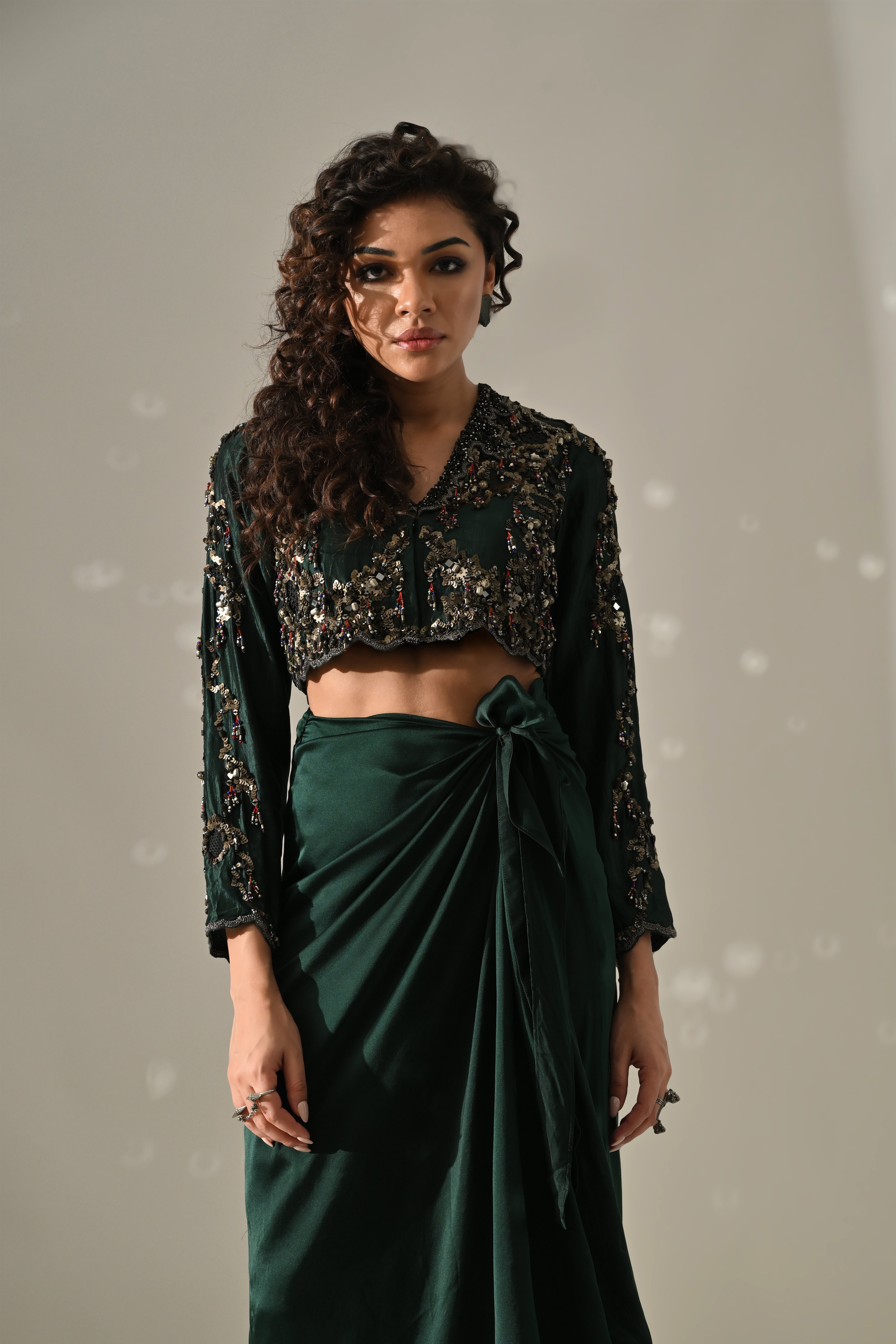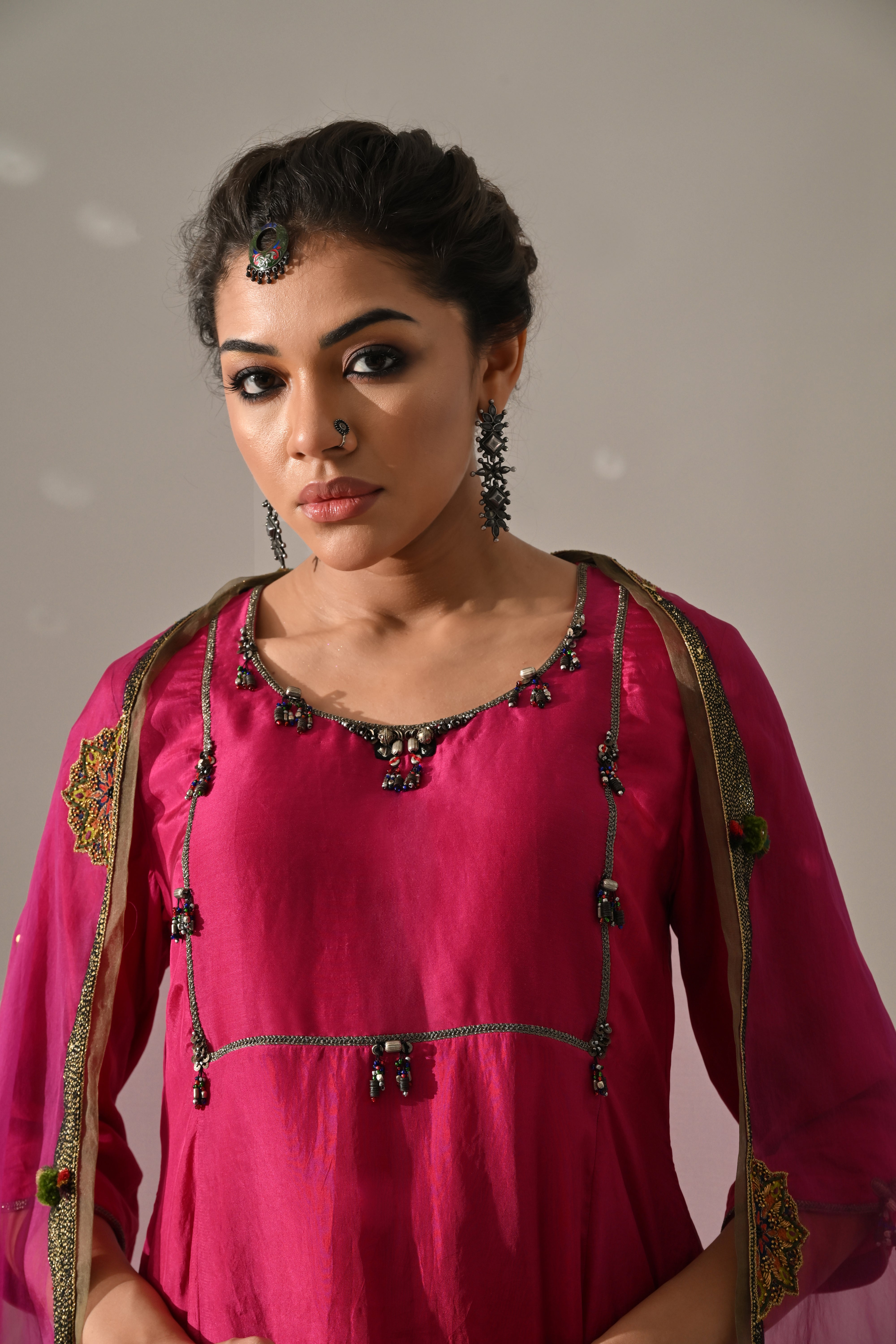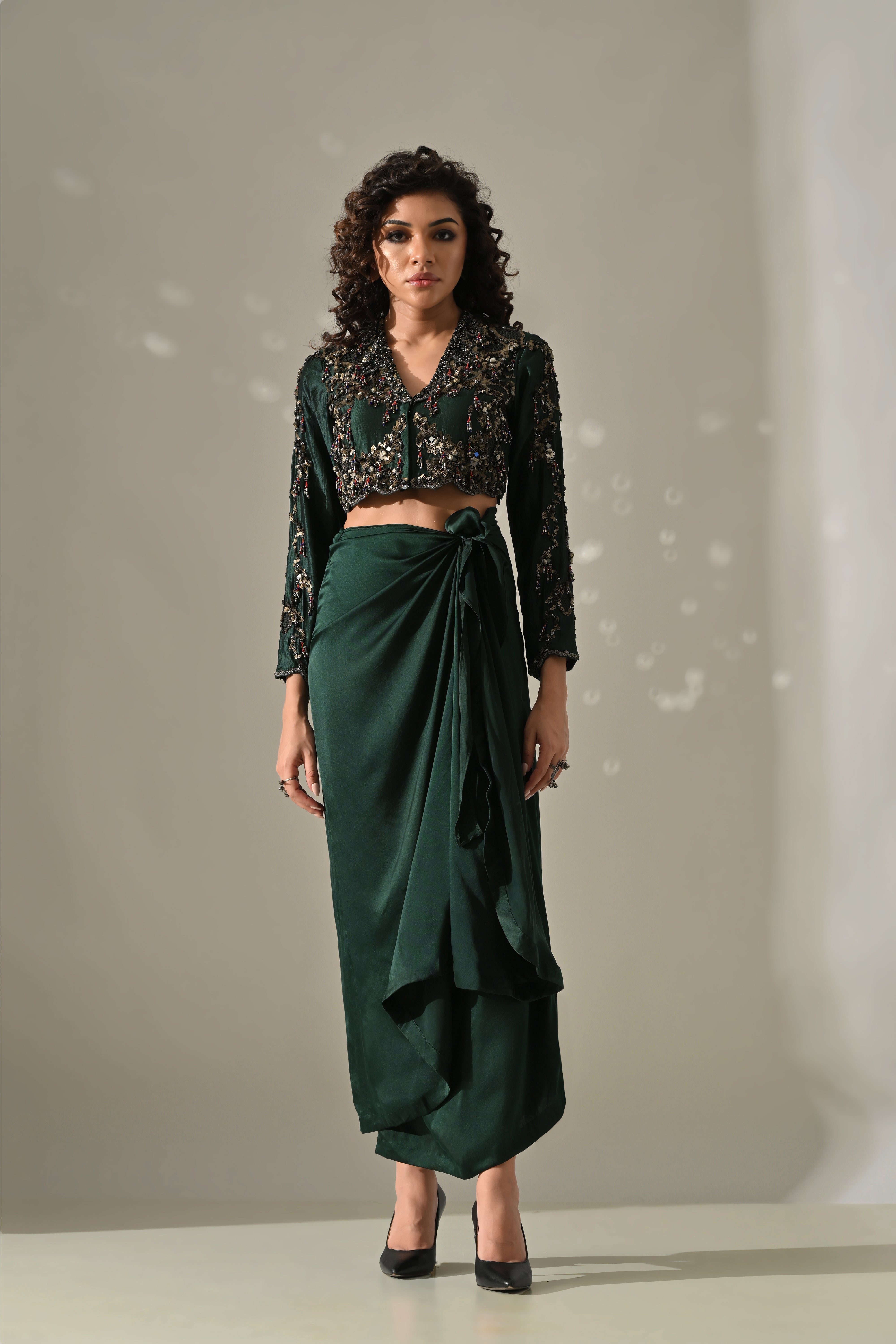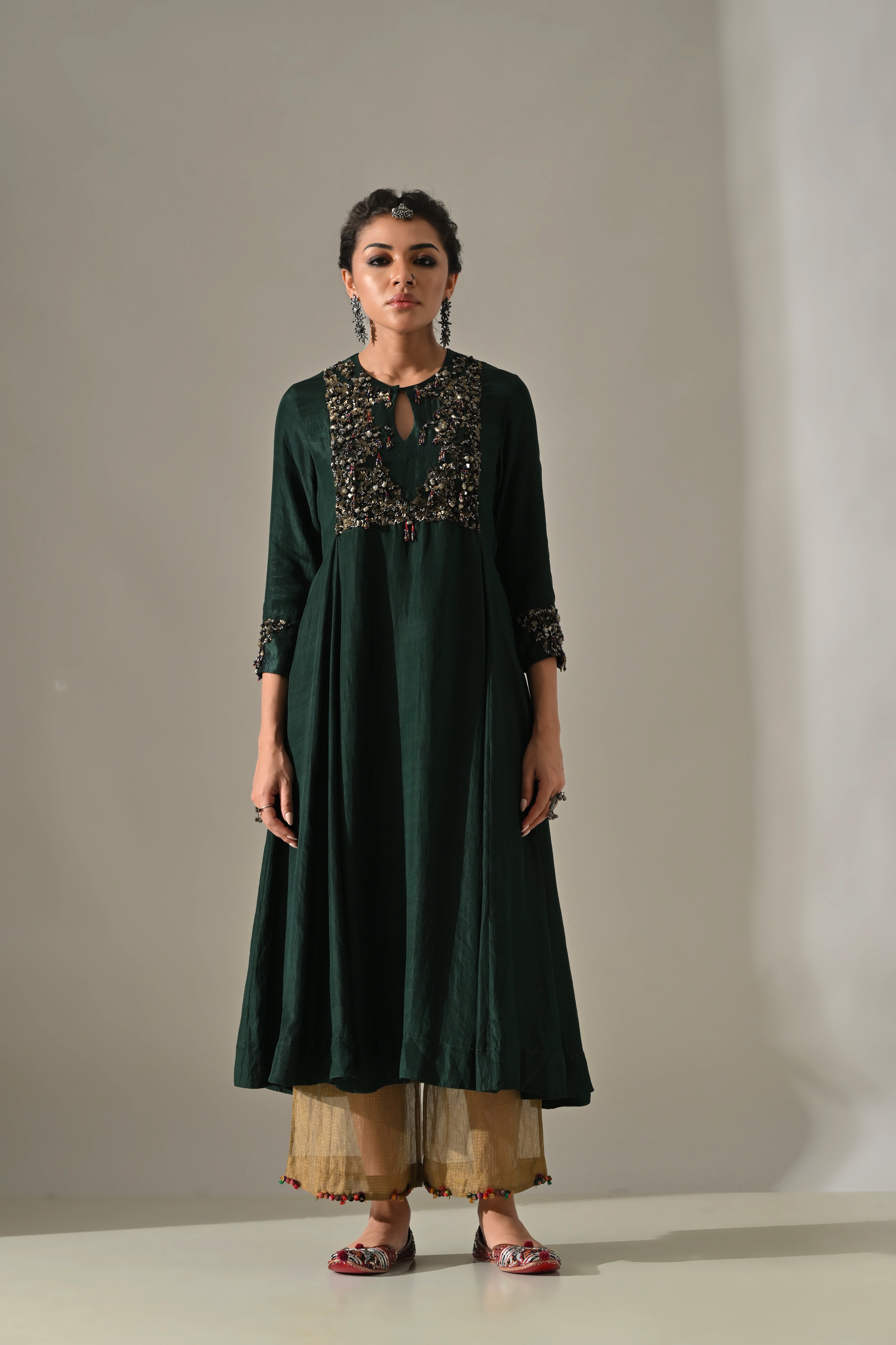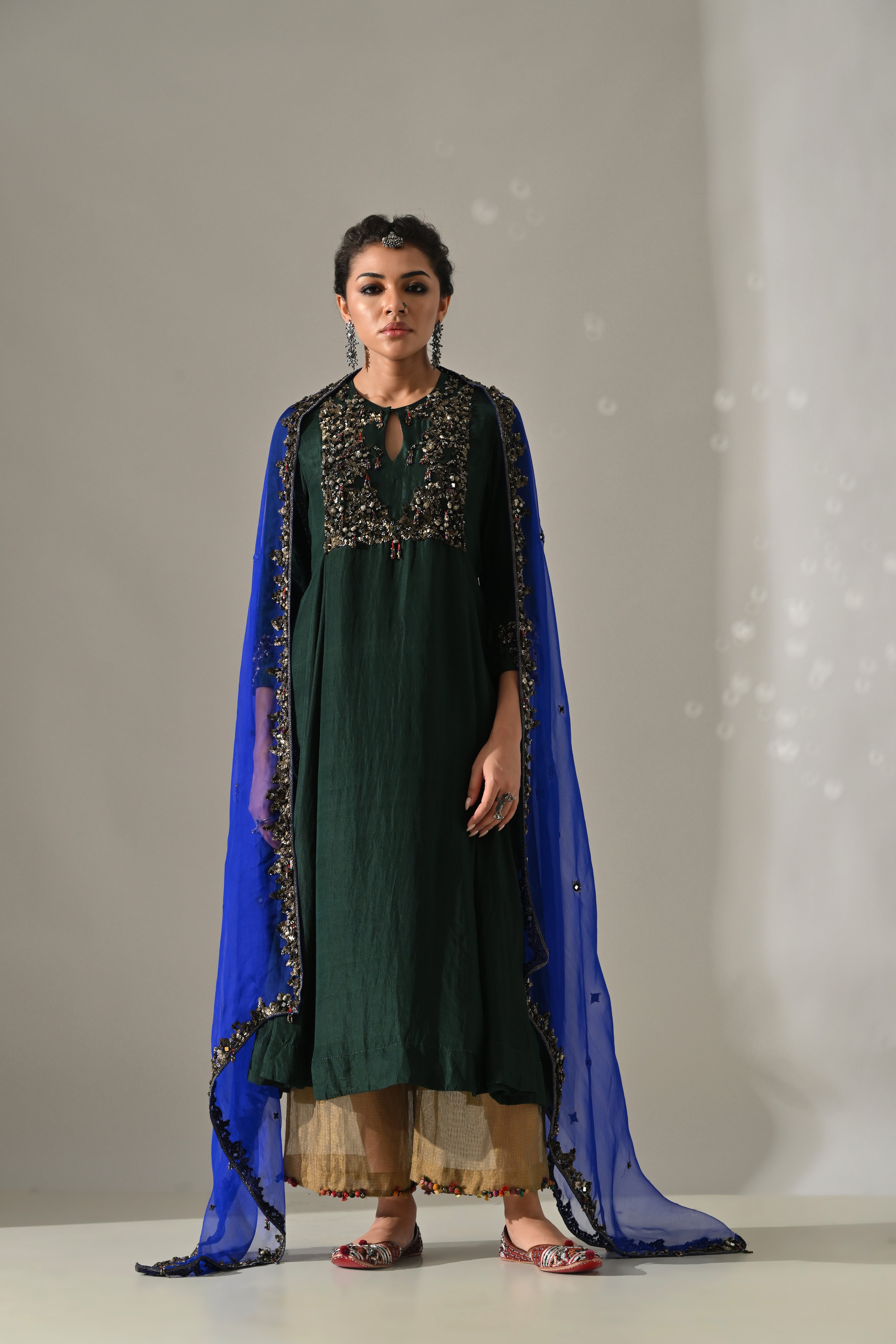 Emerald Sapphire Hand Embroidered Anarkali Set