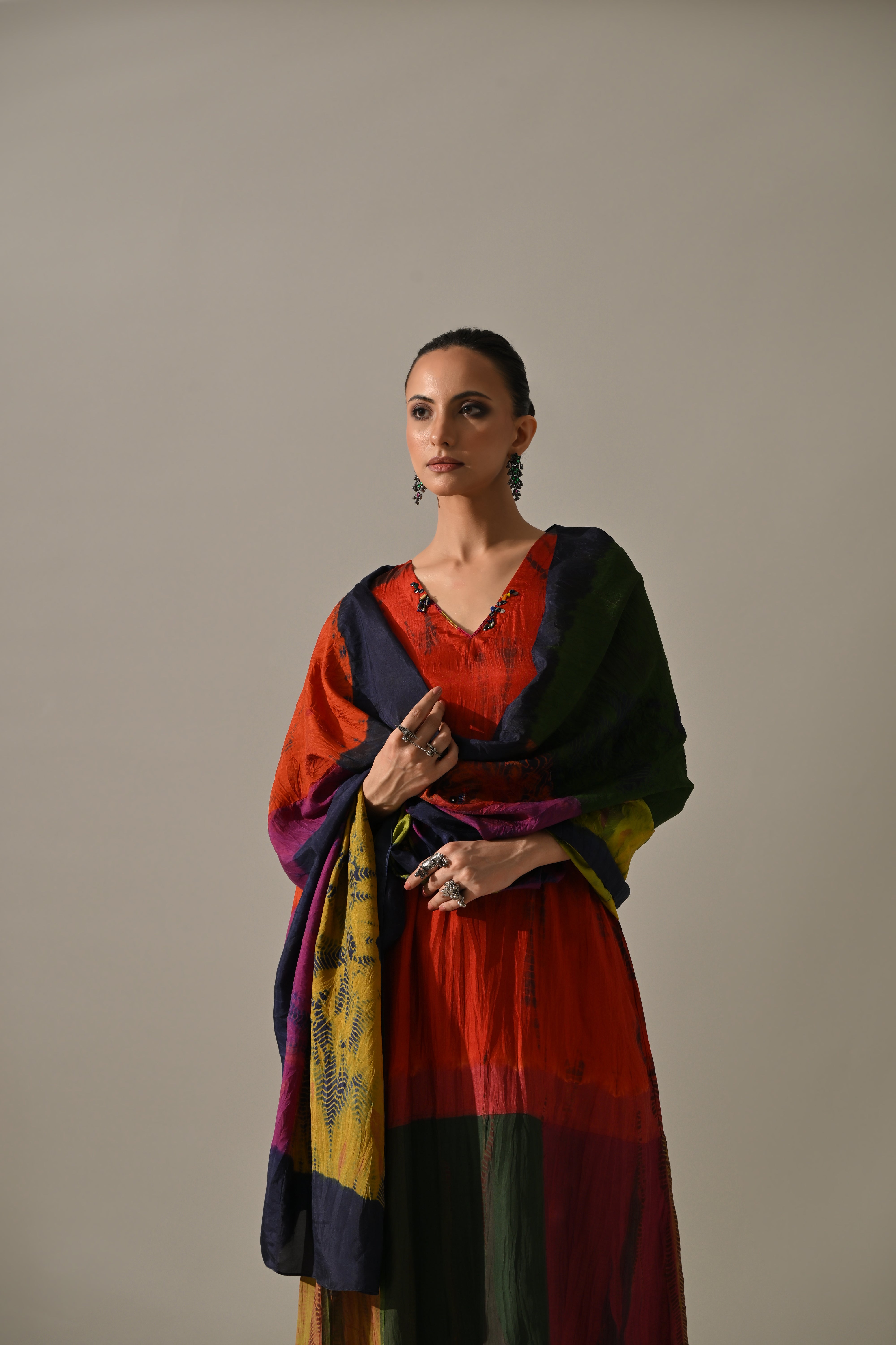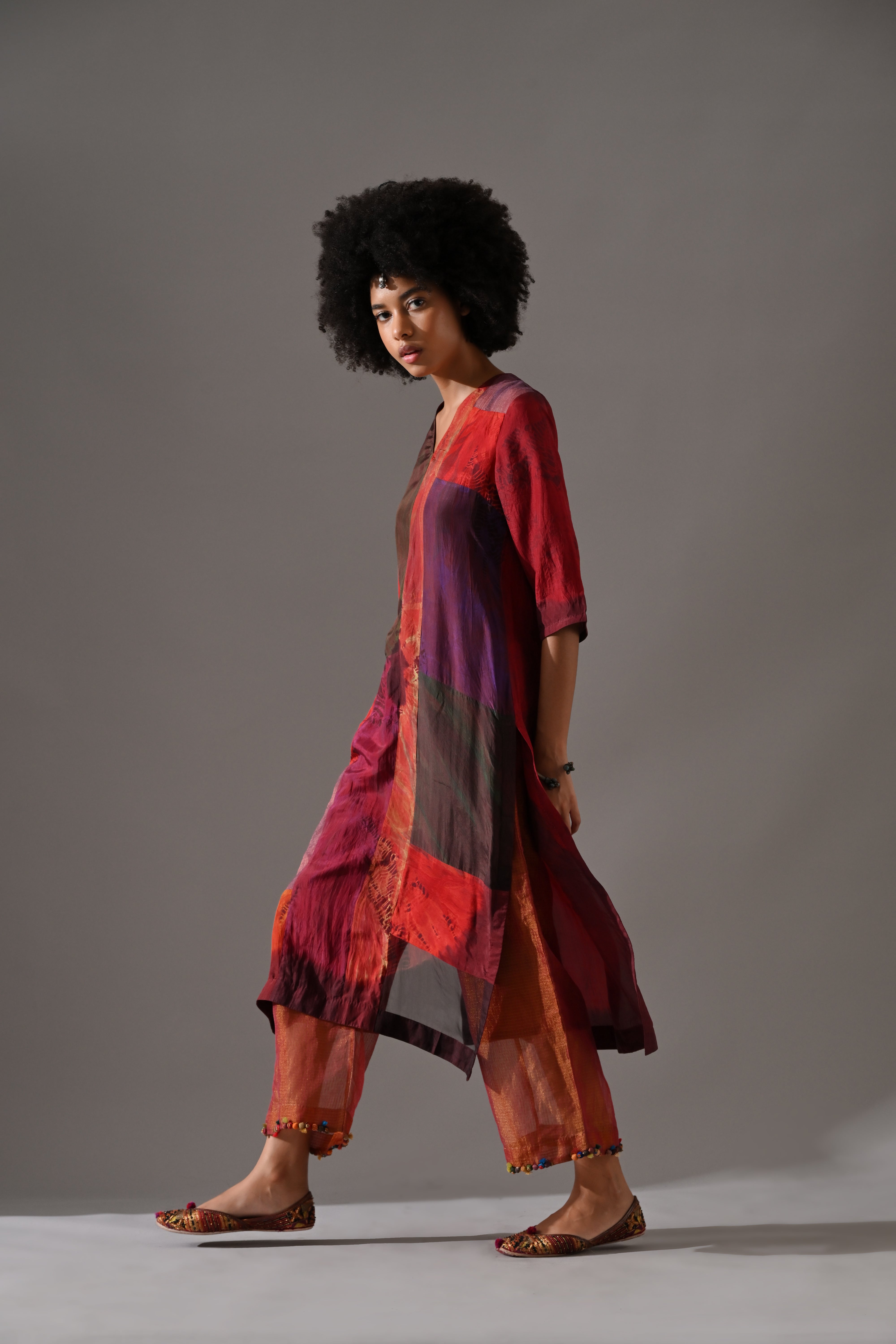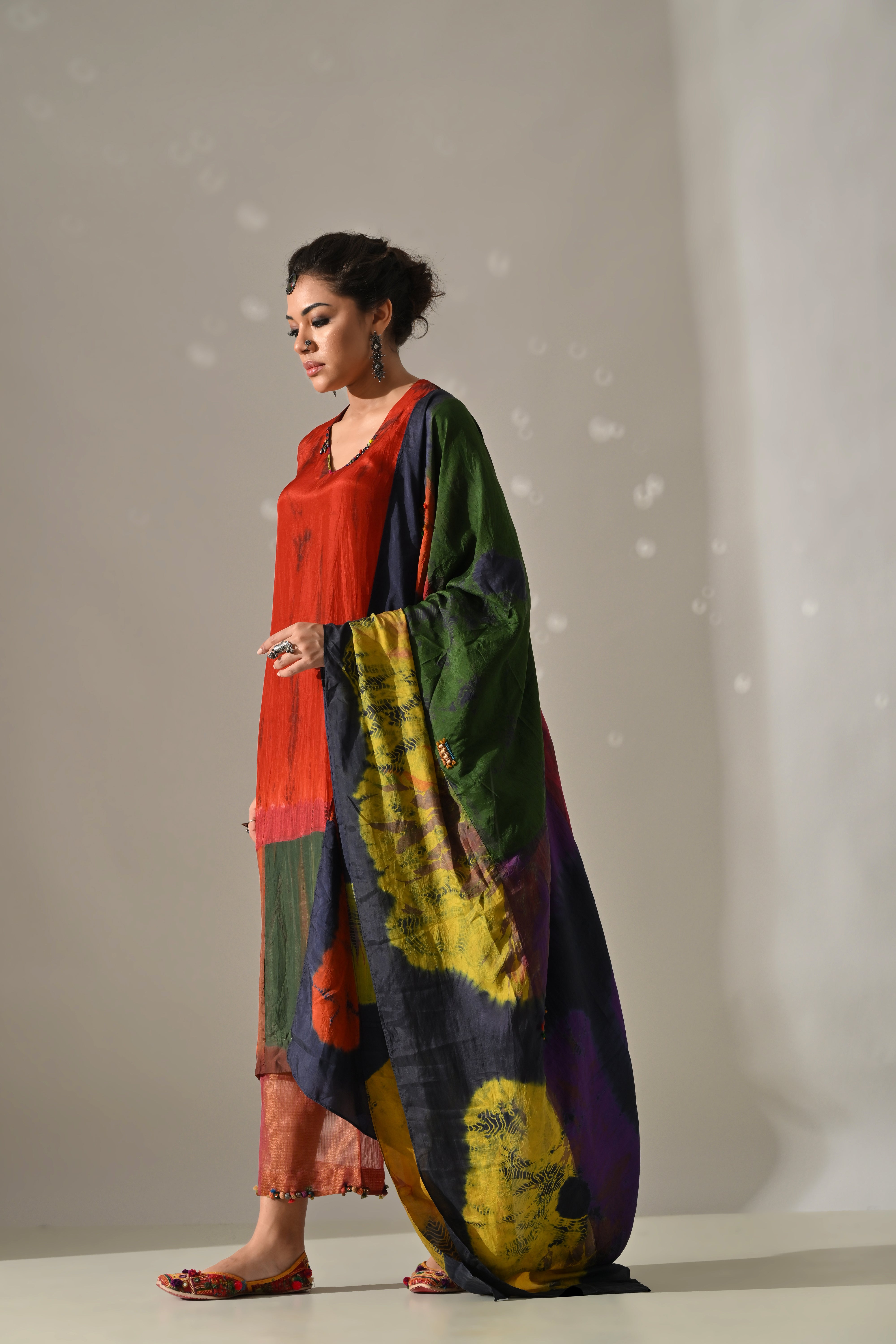 Multi Patchwork and Placement Tie Dye Kurta Set