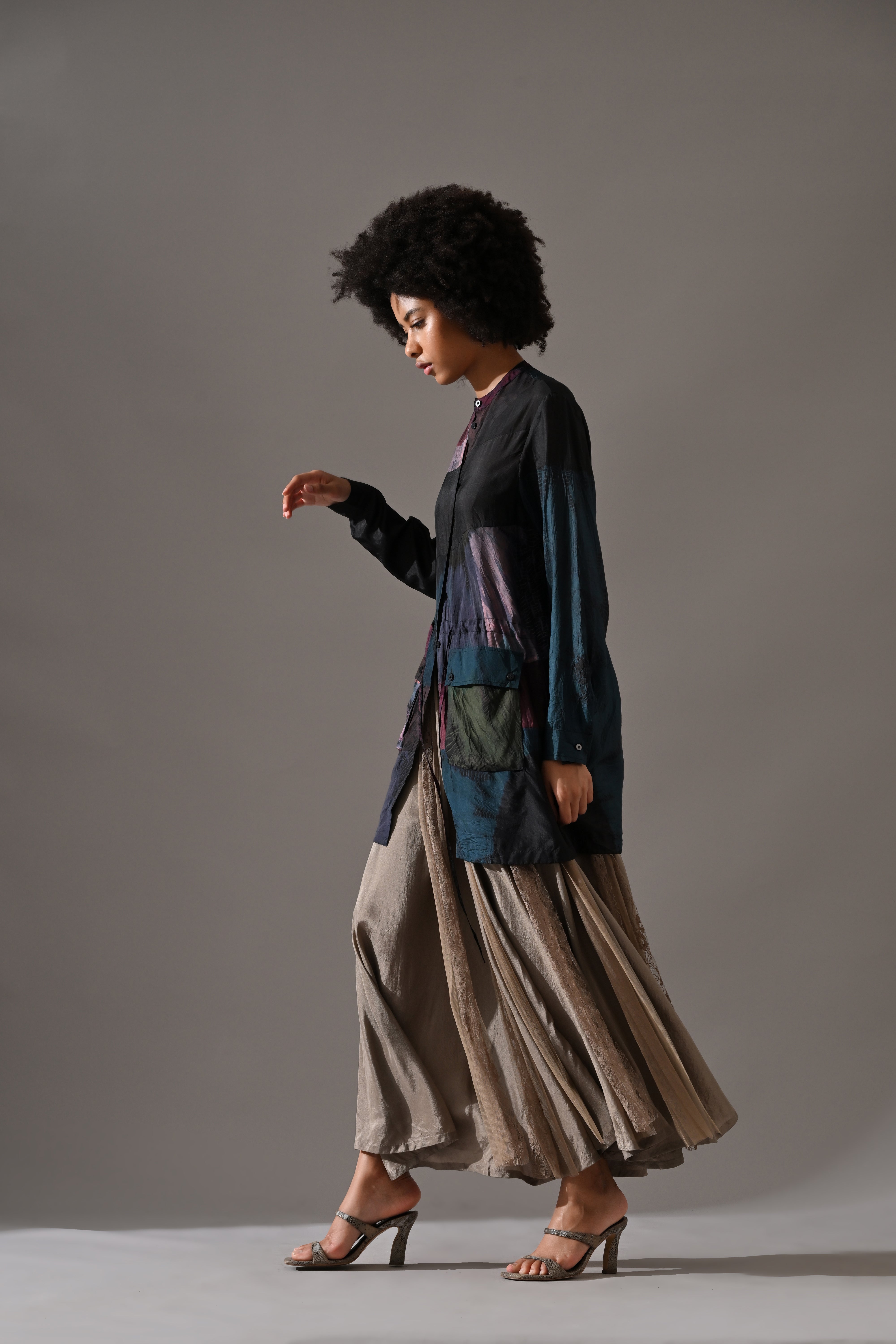 Beige Multi Patchwork and Placement Tie Dye Skirt Set