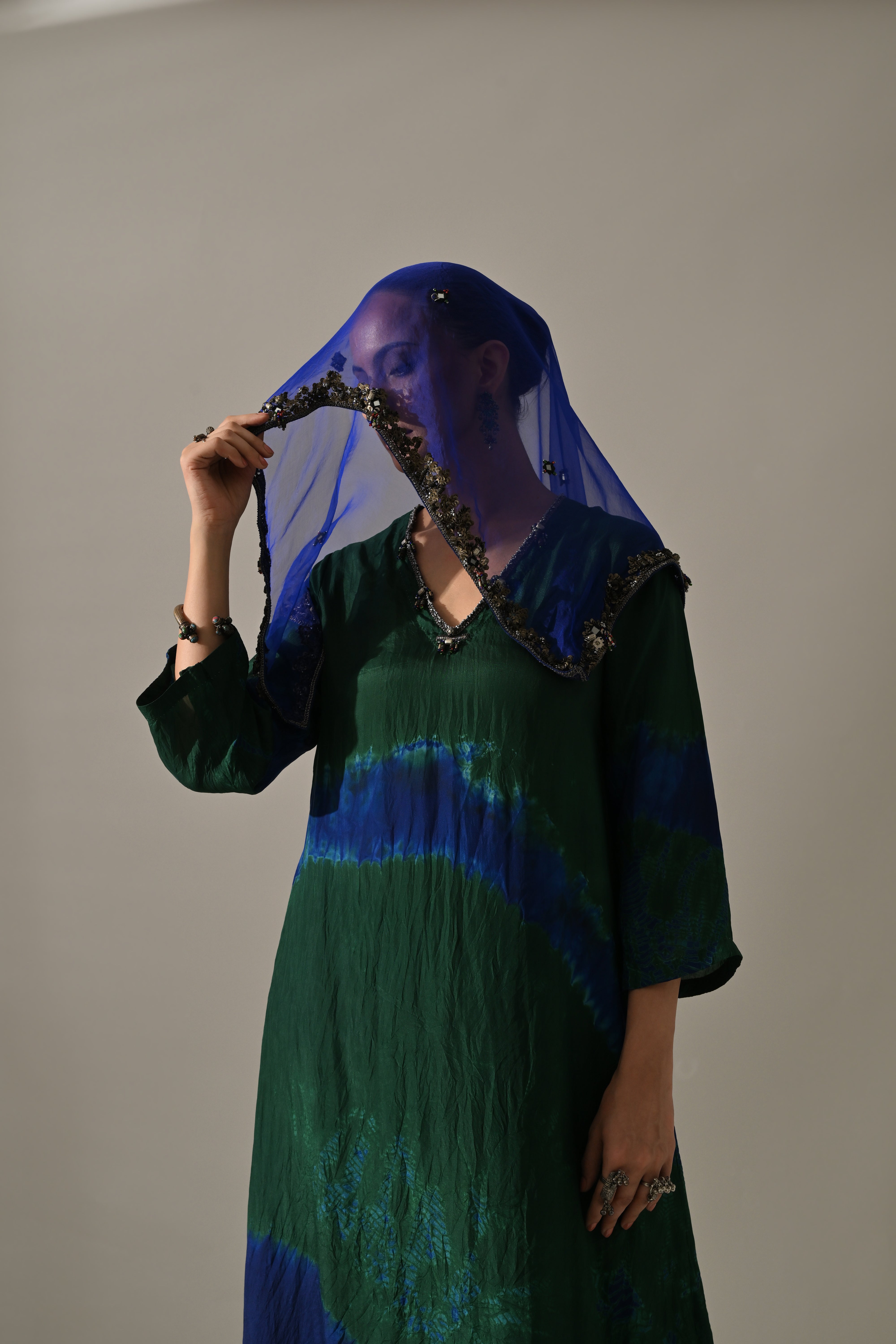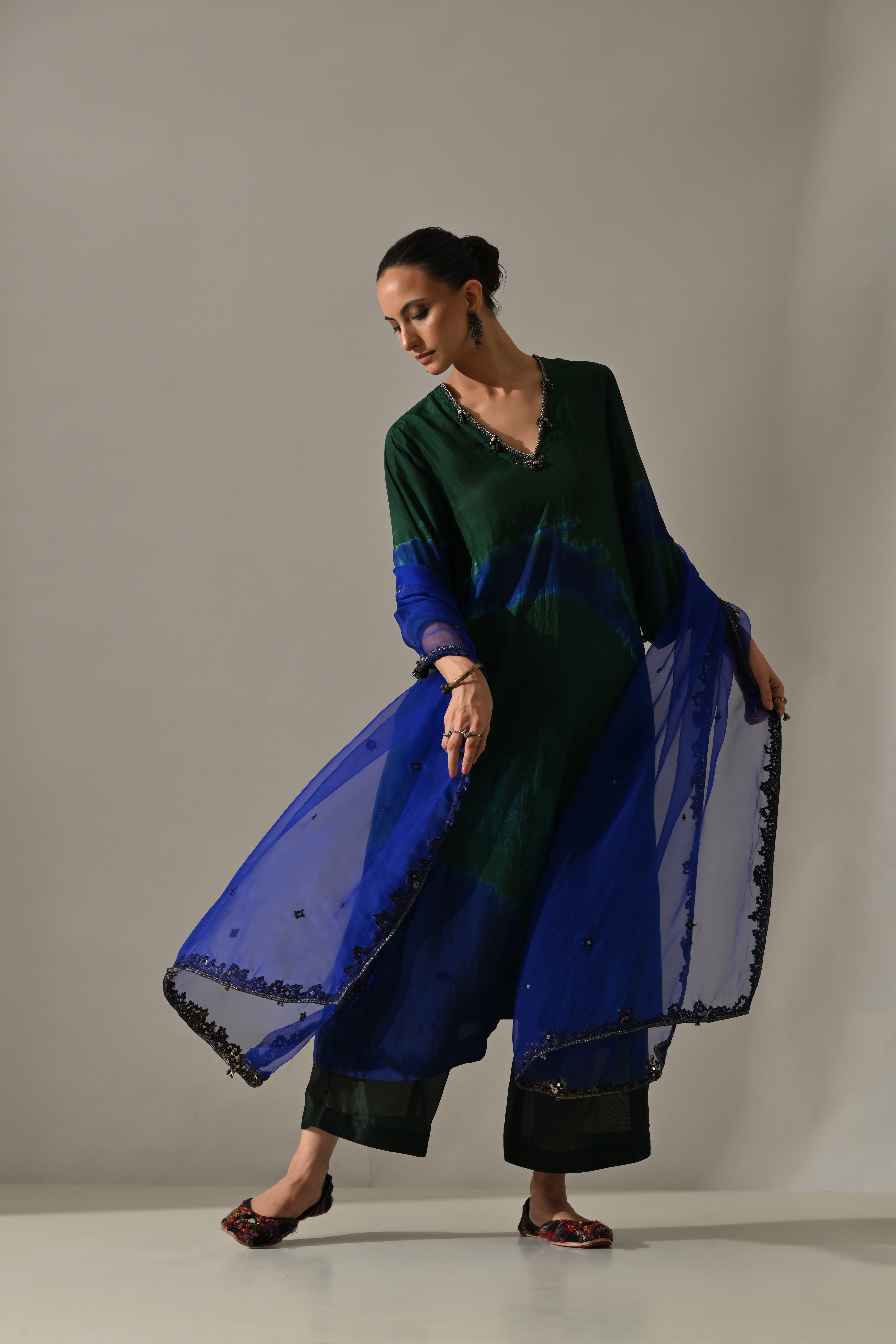 Emerald Sapphire Placement Tie Dye Kurta Set