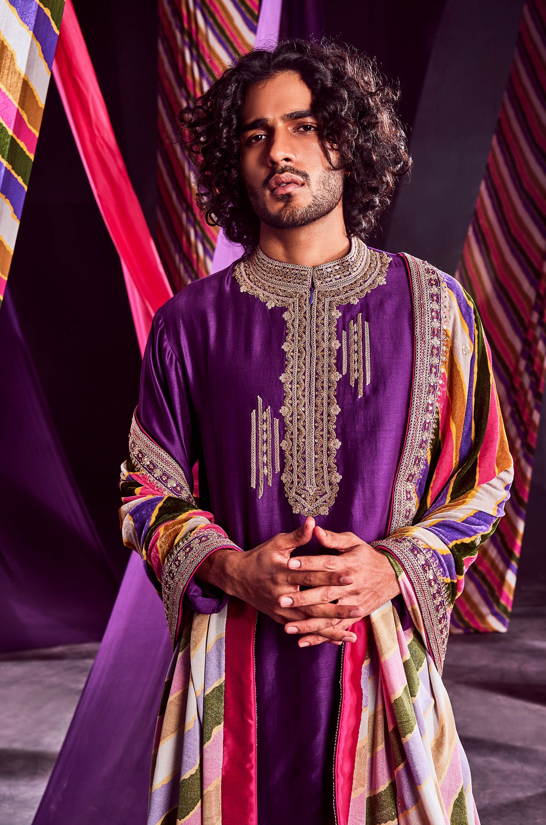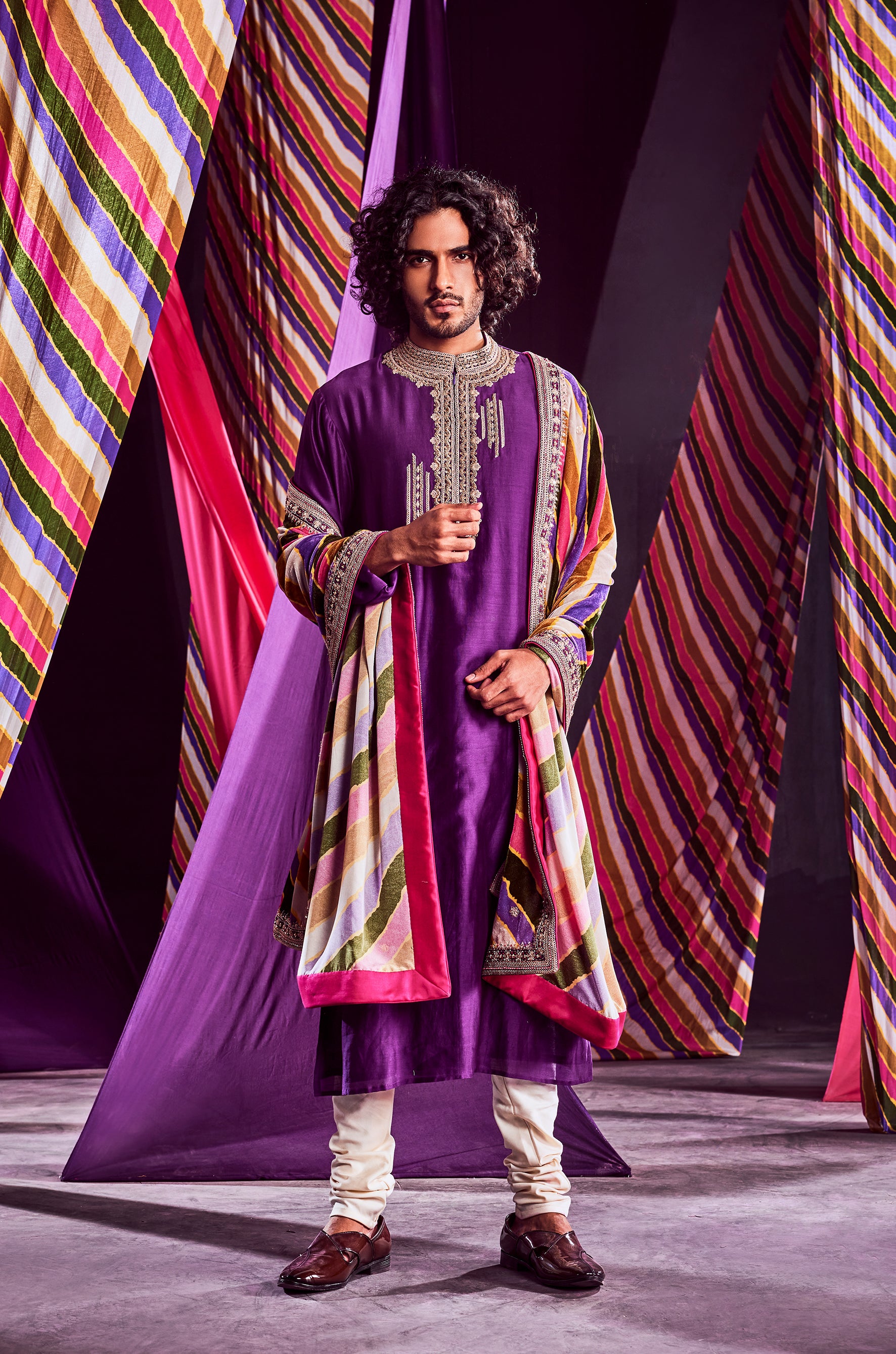 Purple Heavy Kurta With Stripes Dushala & Churida