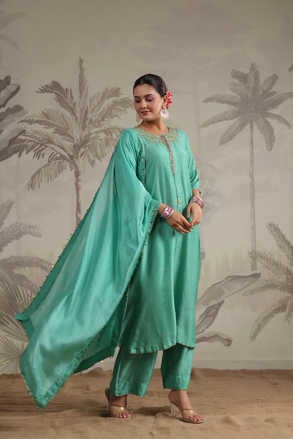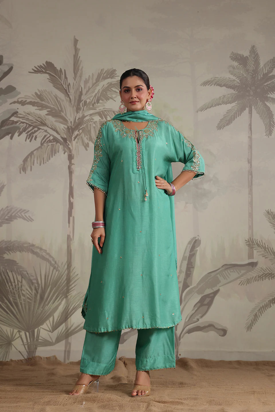 Sea Green Roselyn Neck Embroidered Kurta Set