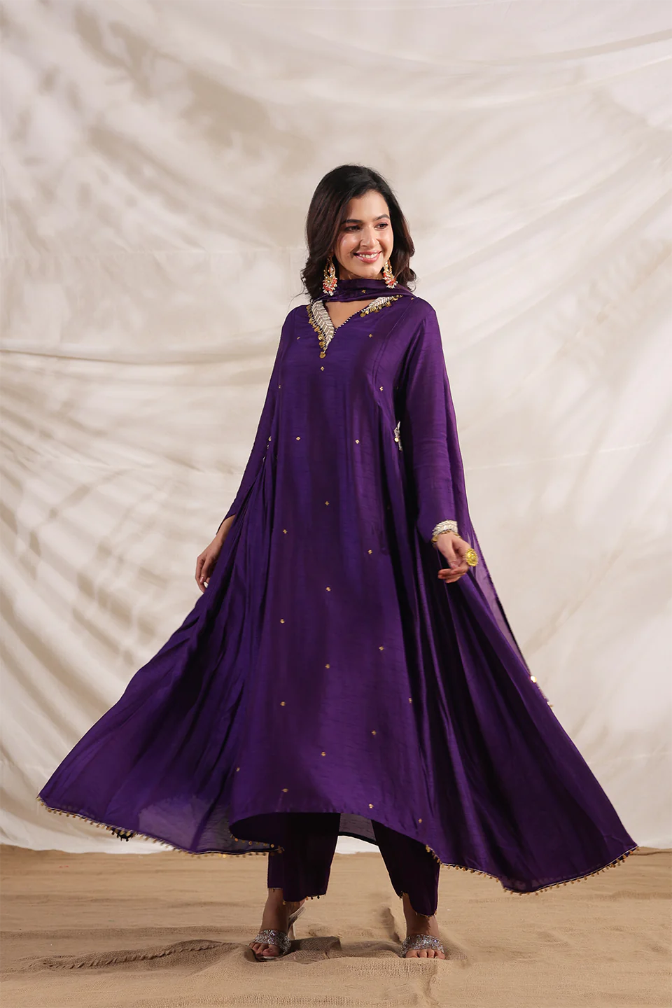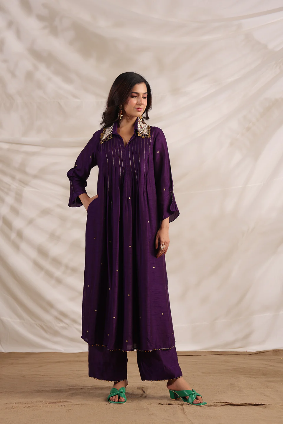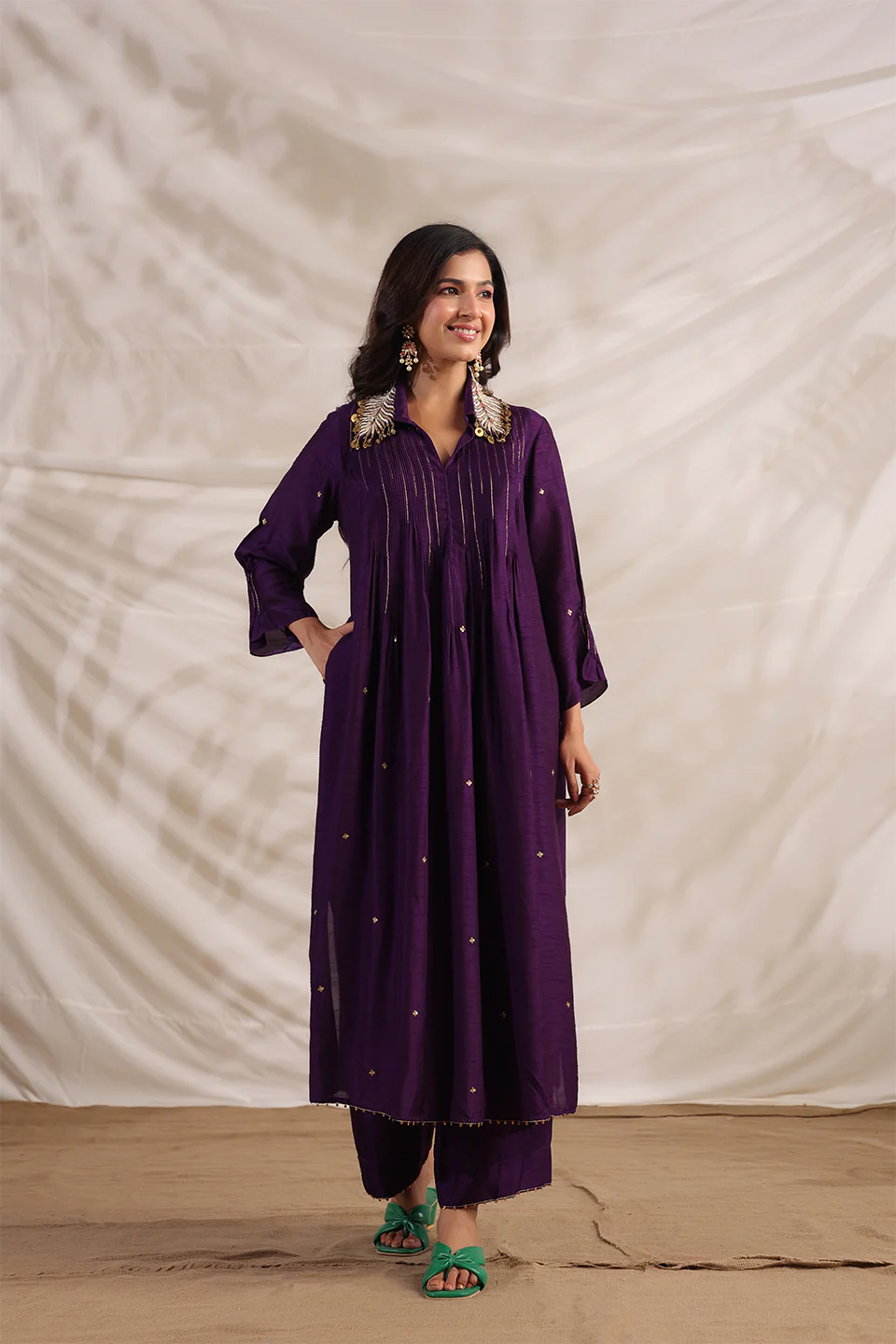 Purple Pankh Shirt Style Embroidered Kurta Set
