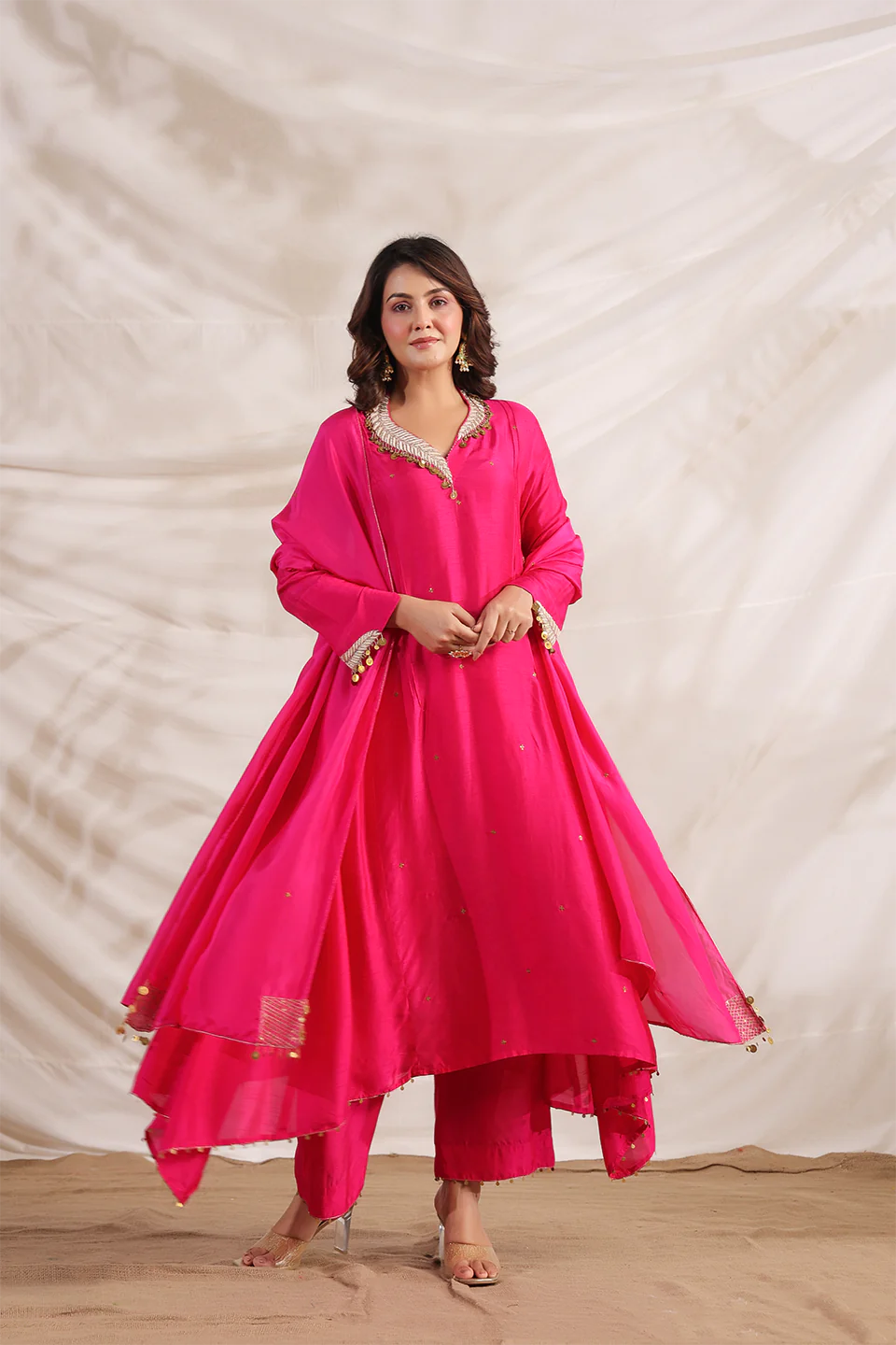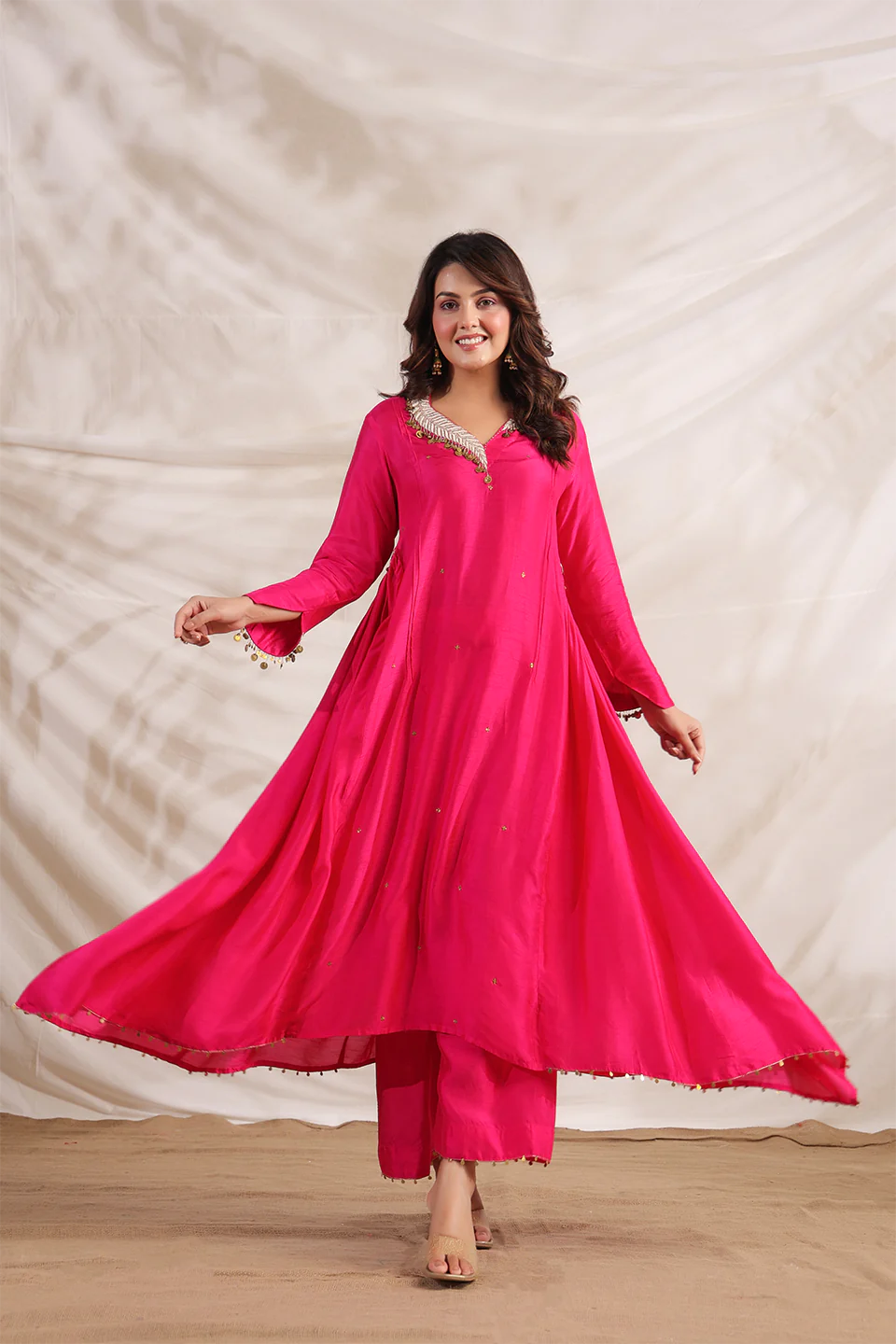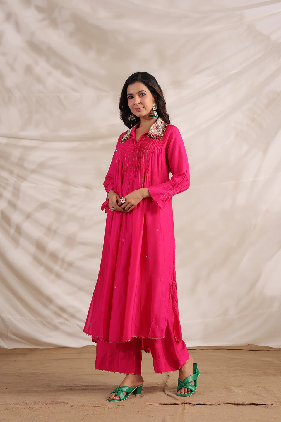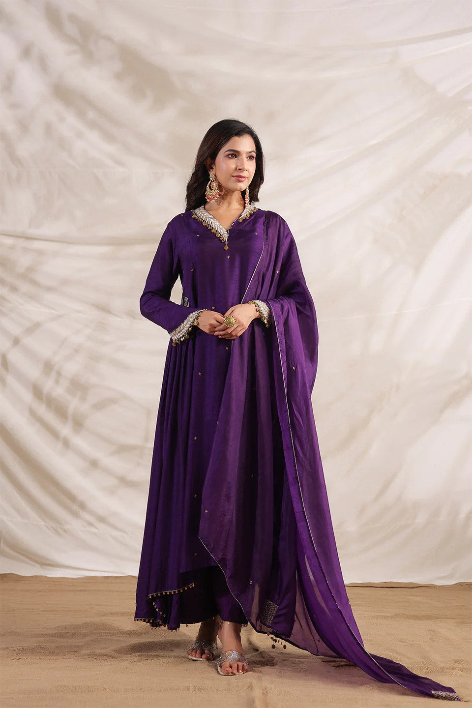 Purple Pankh Shirt Style Embroidered Kurta Set