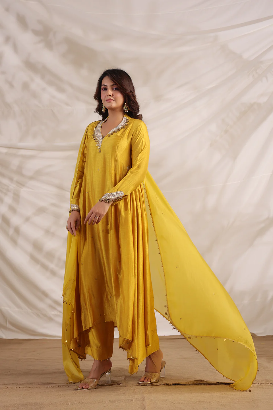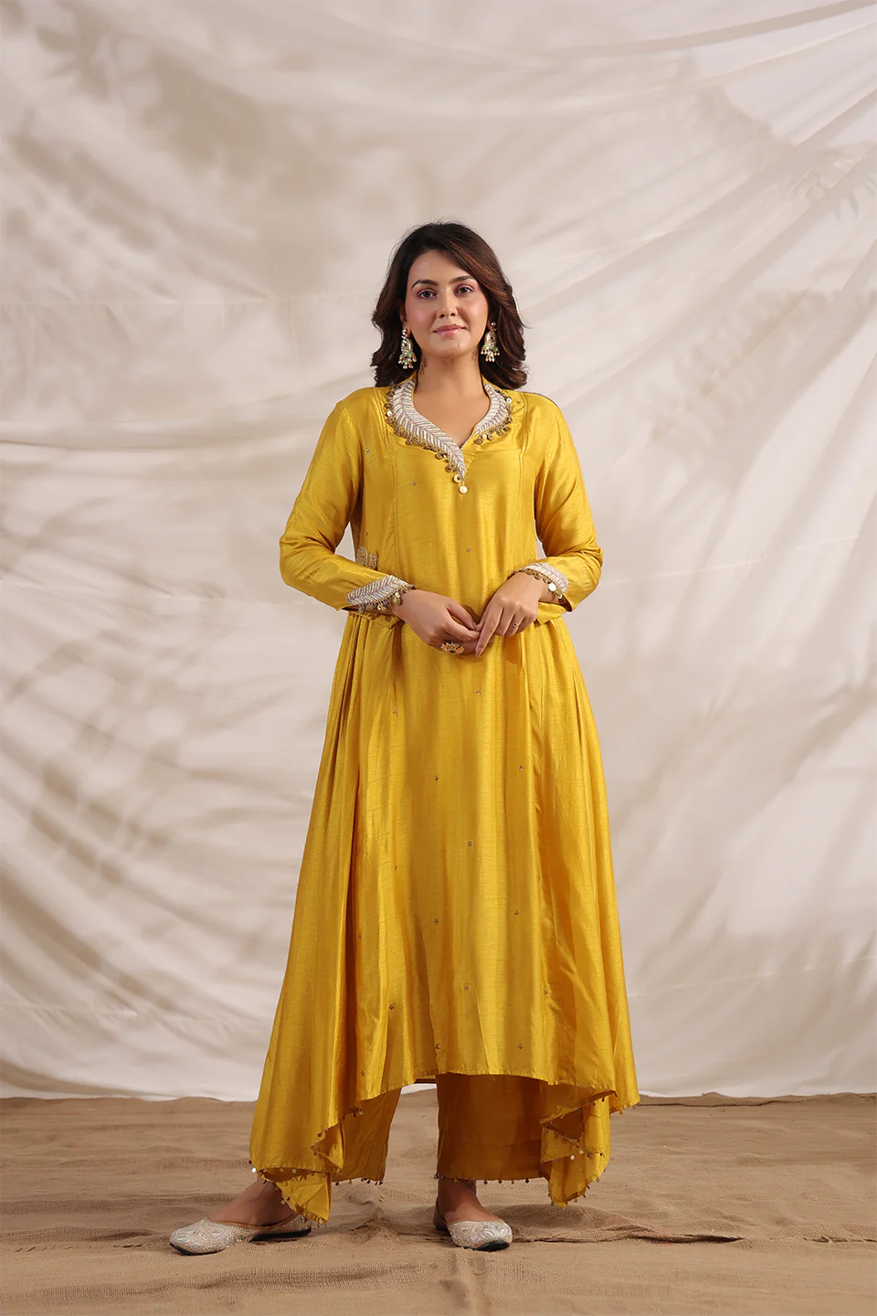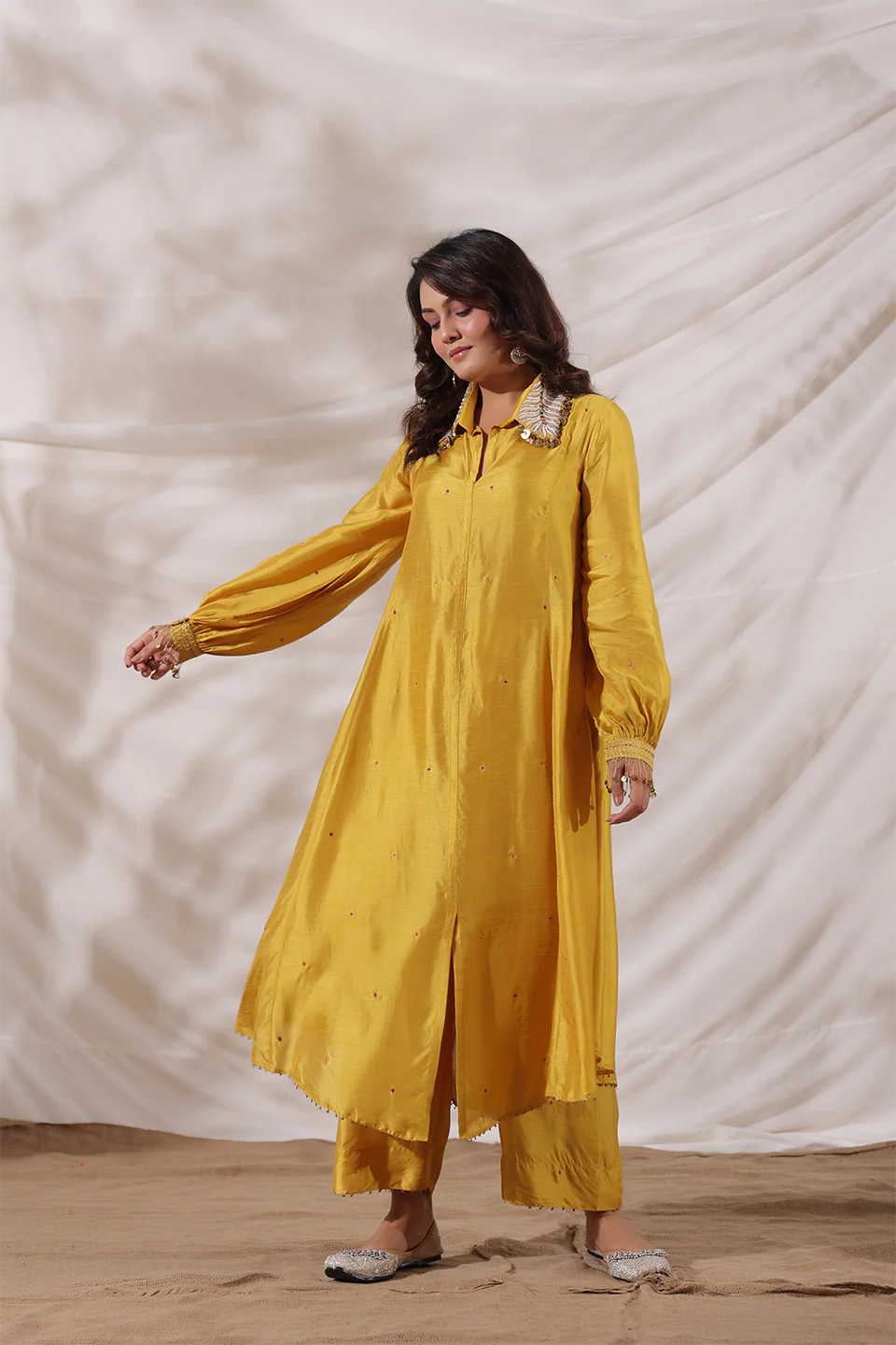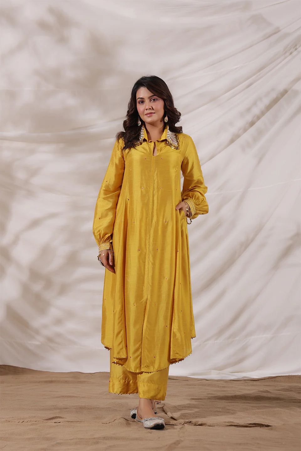 Yellow Pankh Shirt Style Embroidered Kurta Set
