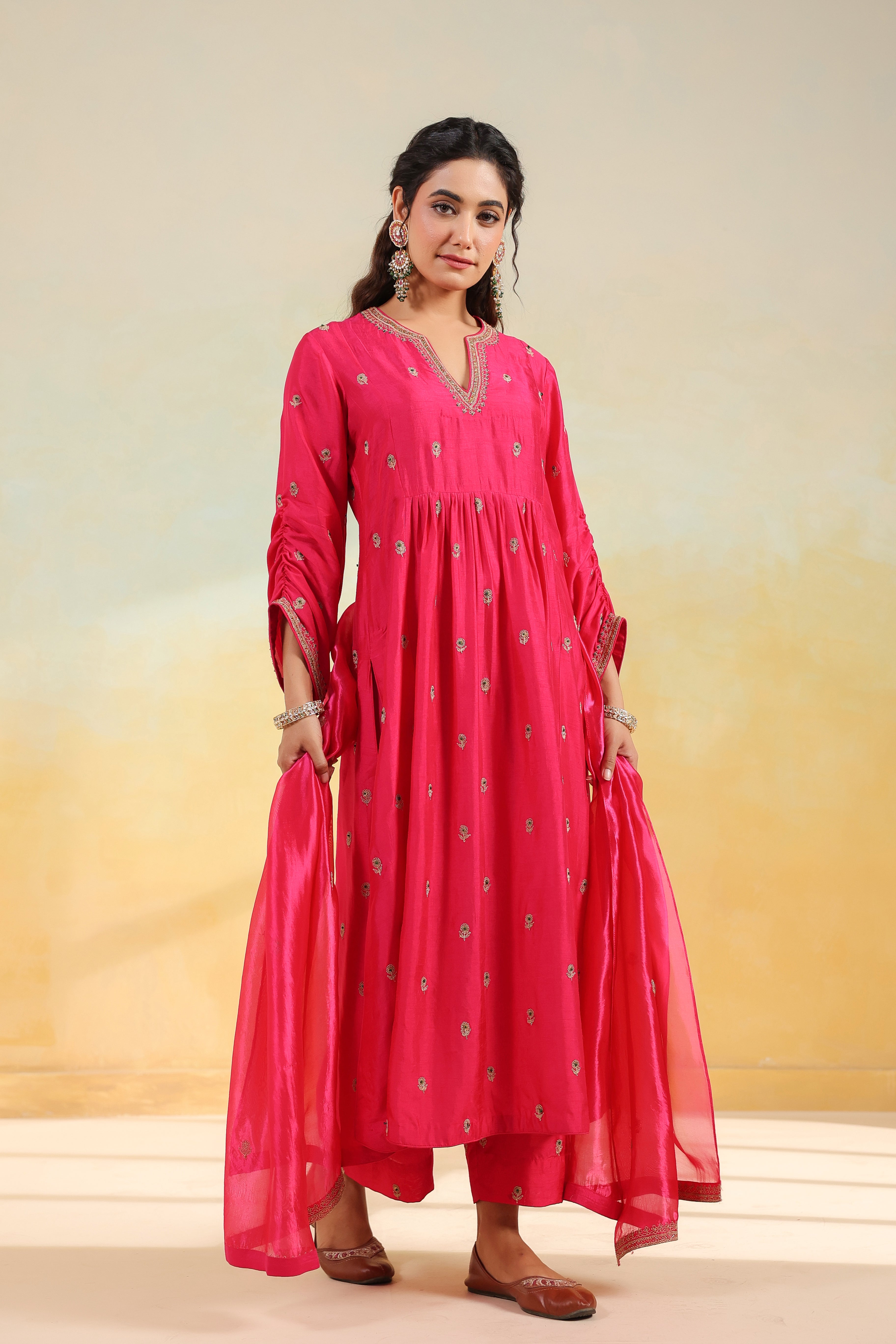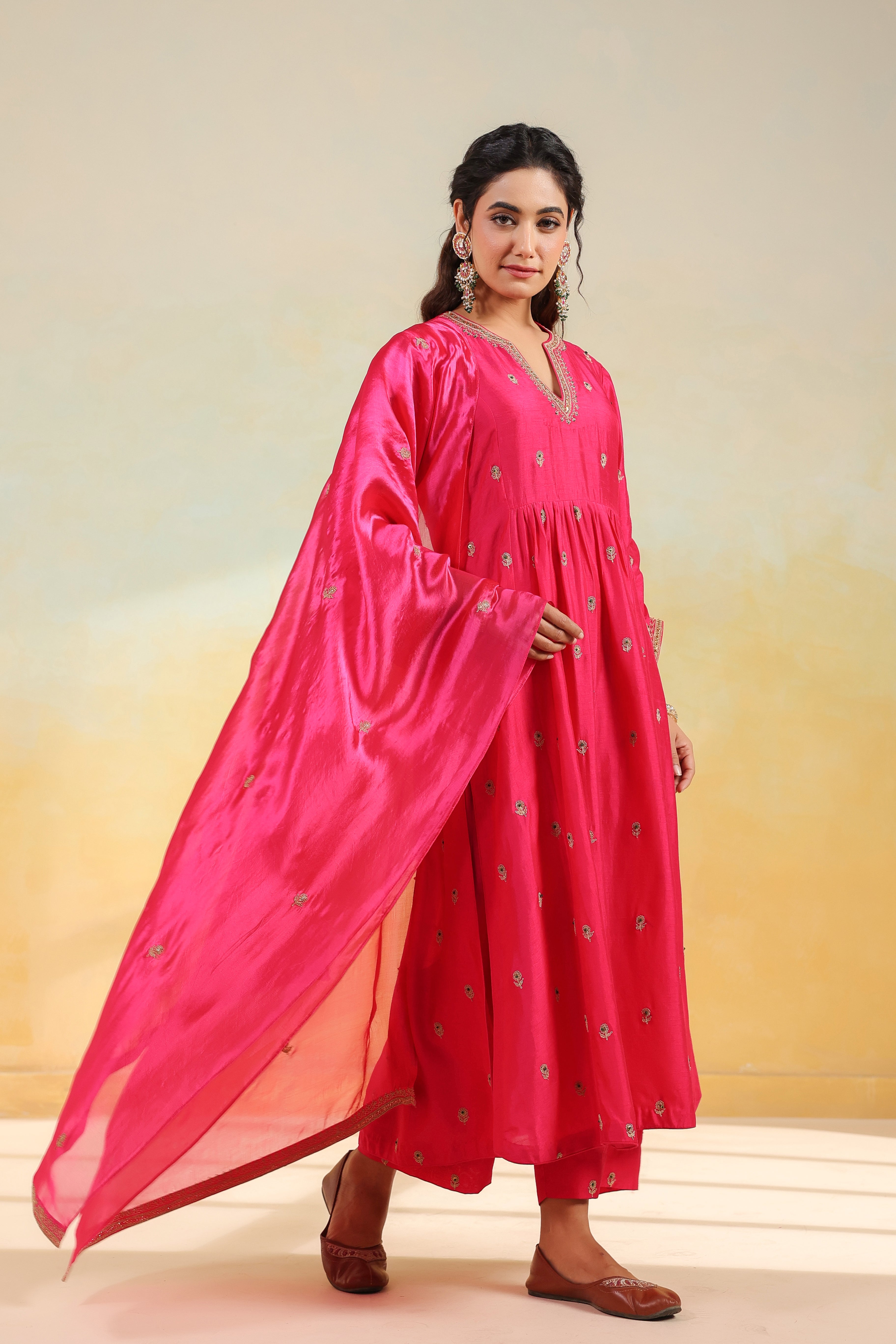 Pink Multi Zardozi Buti Frockstyle Kurta set