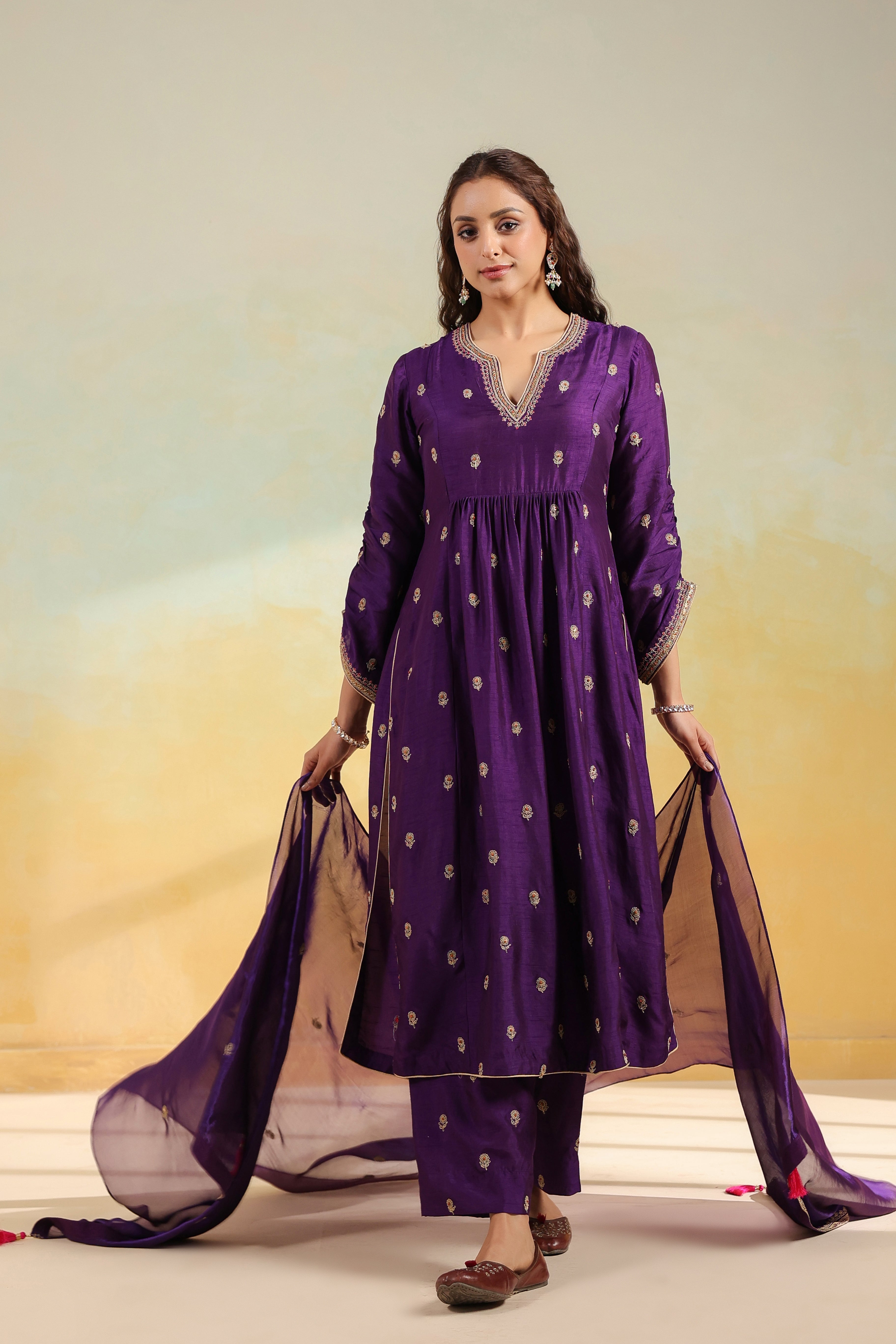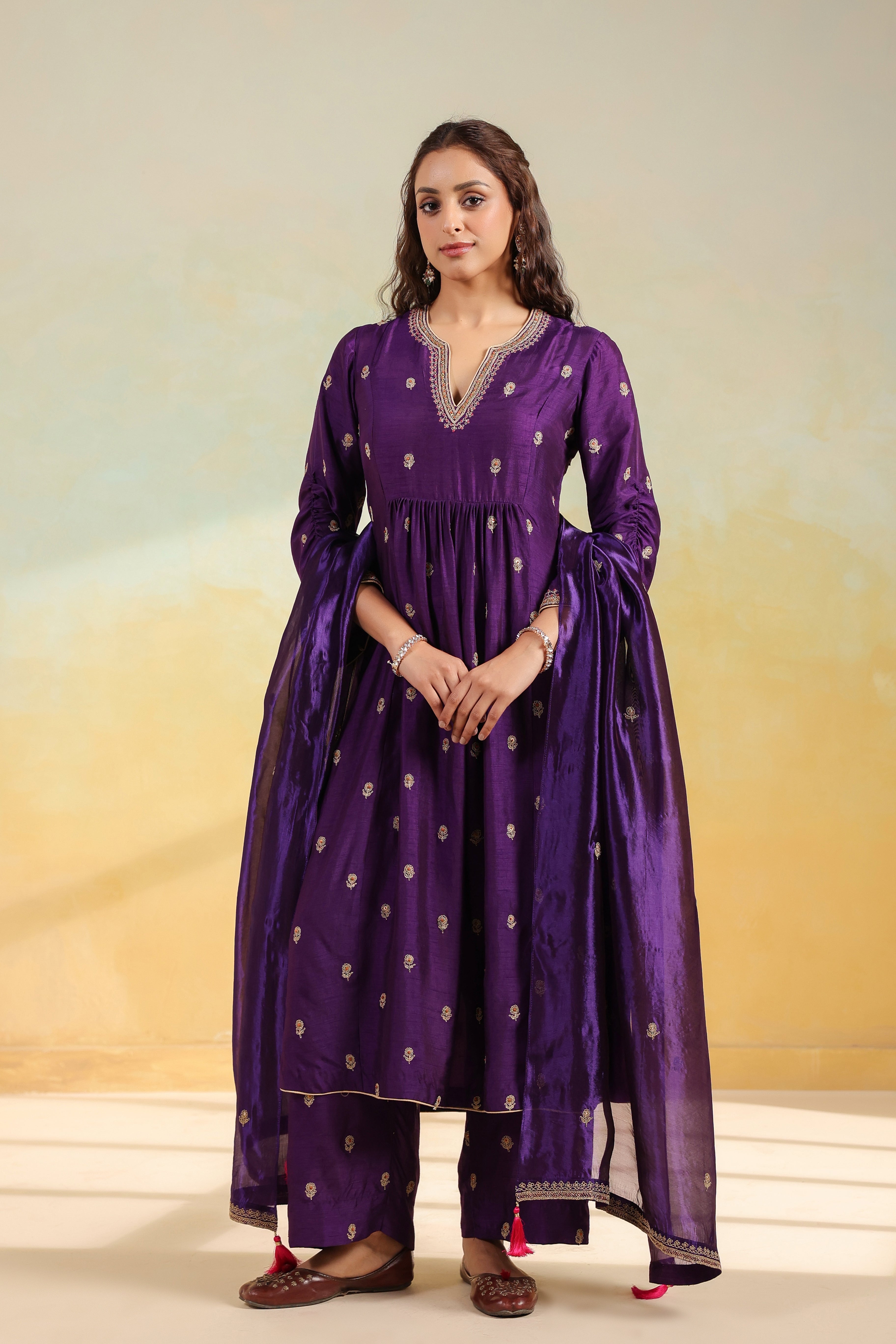 Purple Multi Zardozi Buti Frockstyle Kurta set