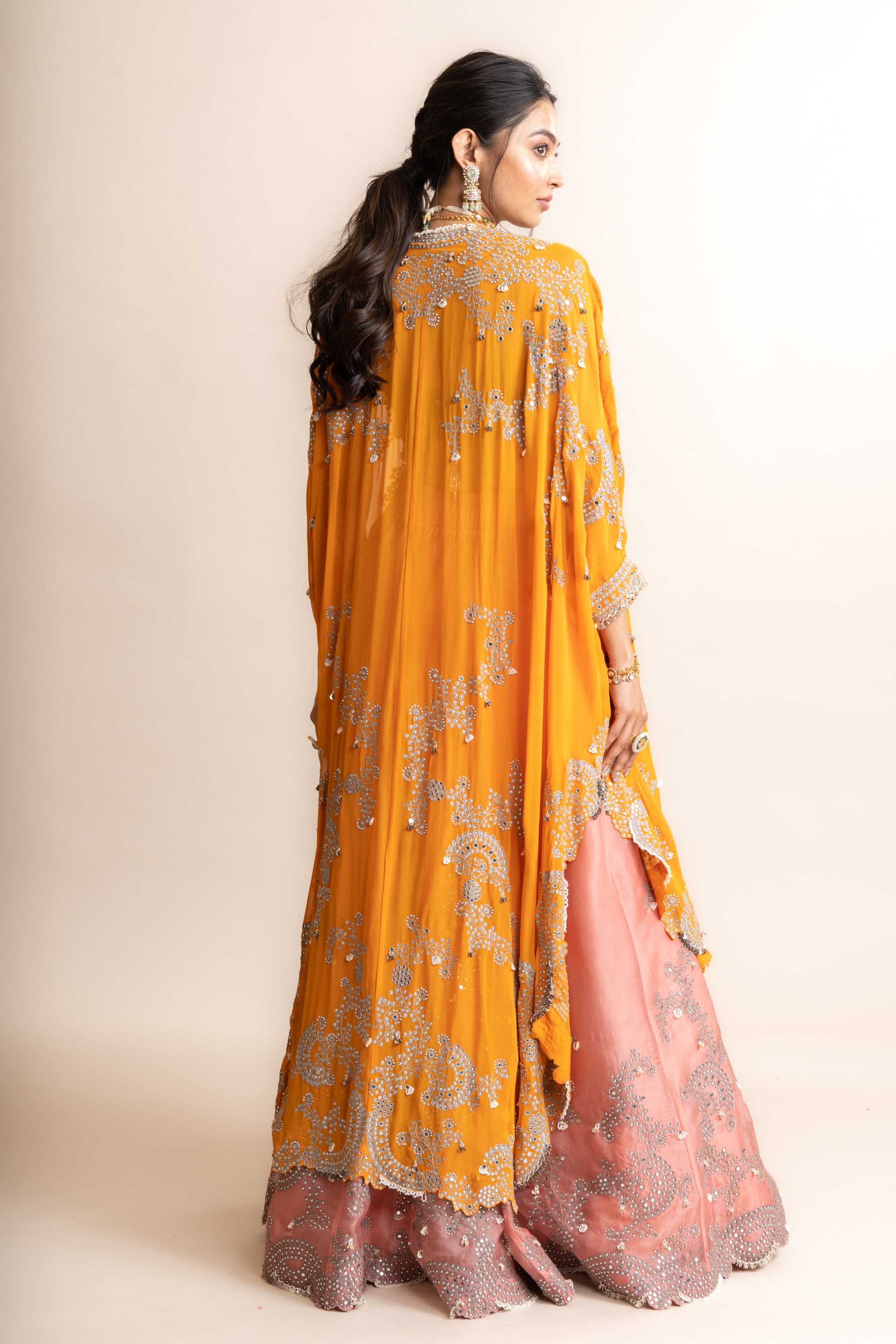 Orange Cape With Pants Set