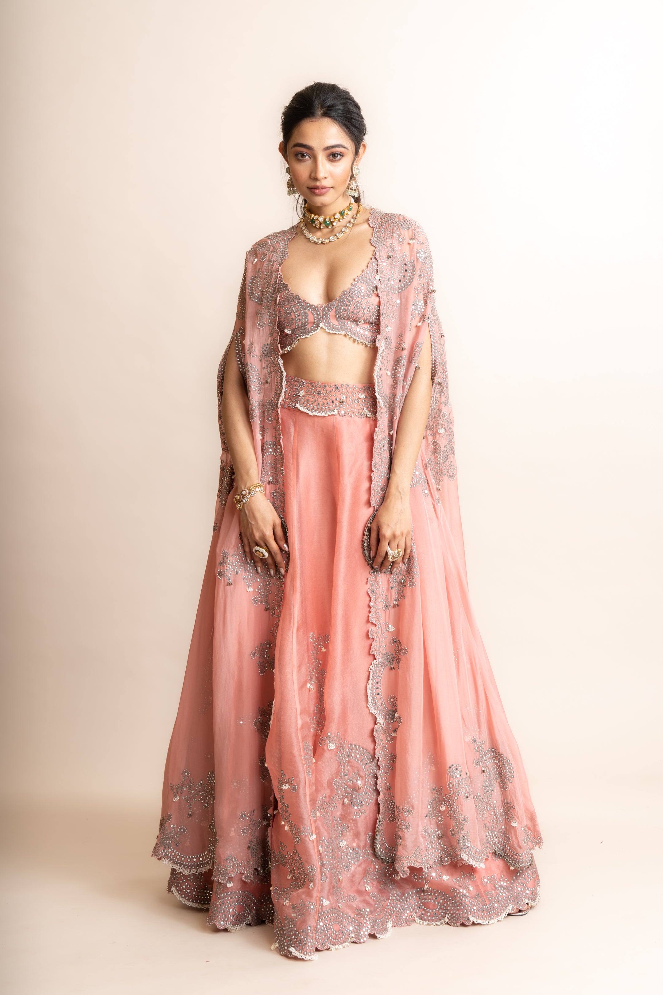 Light Off-Shoulder Top & Heavy Bias Lehenga Set