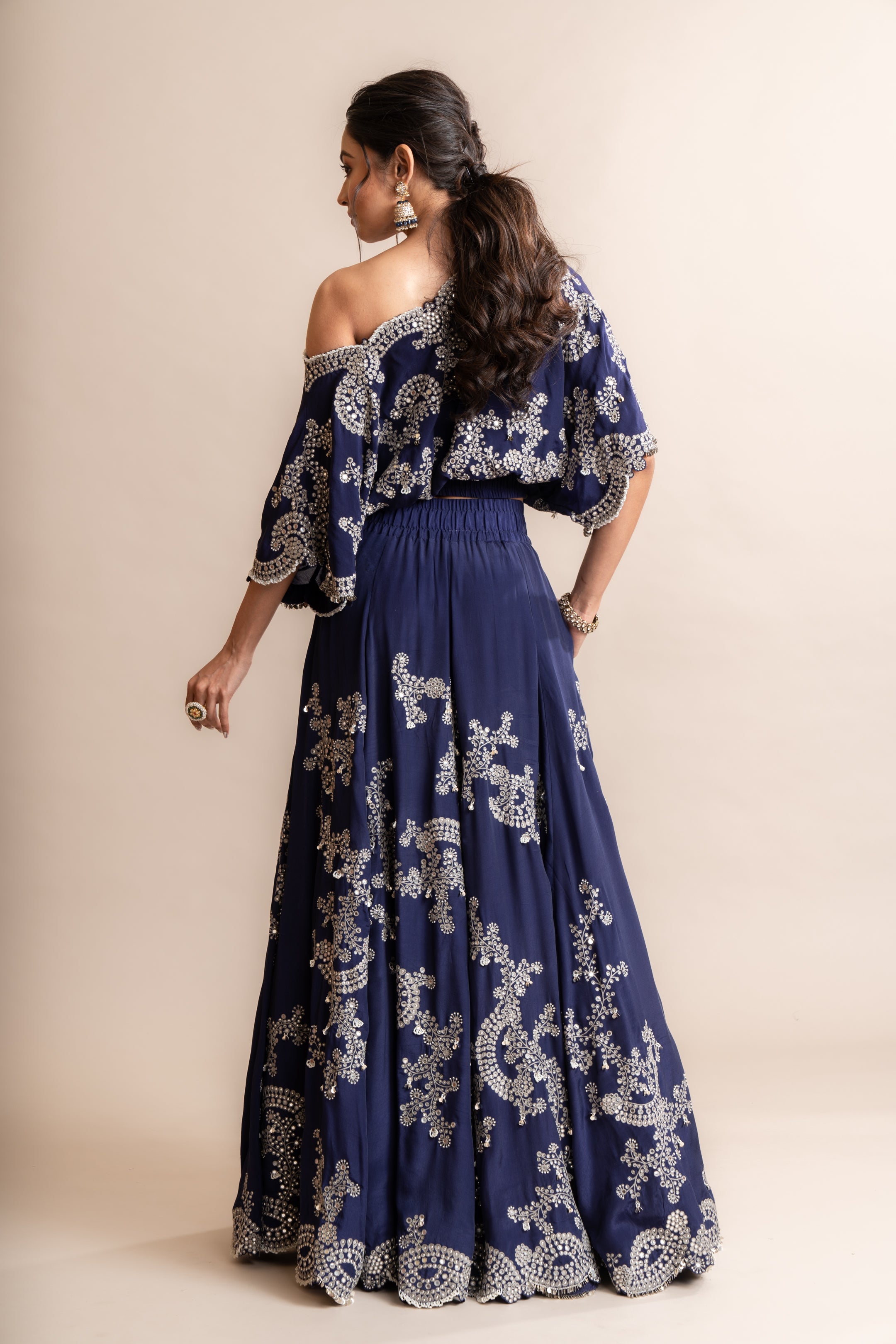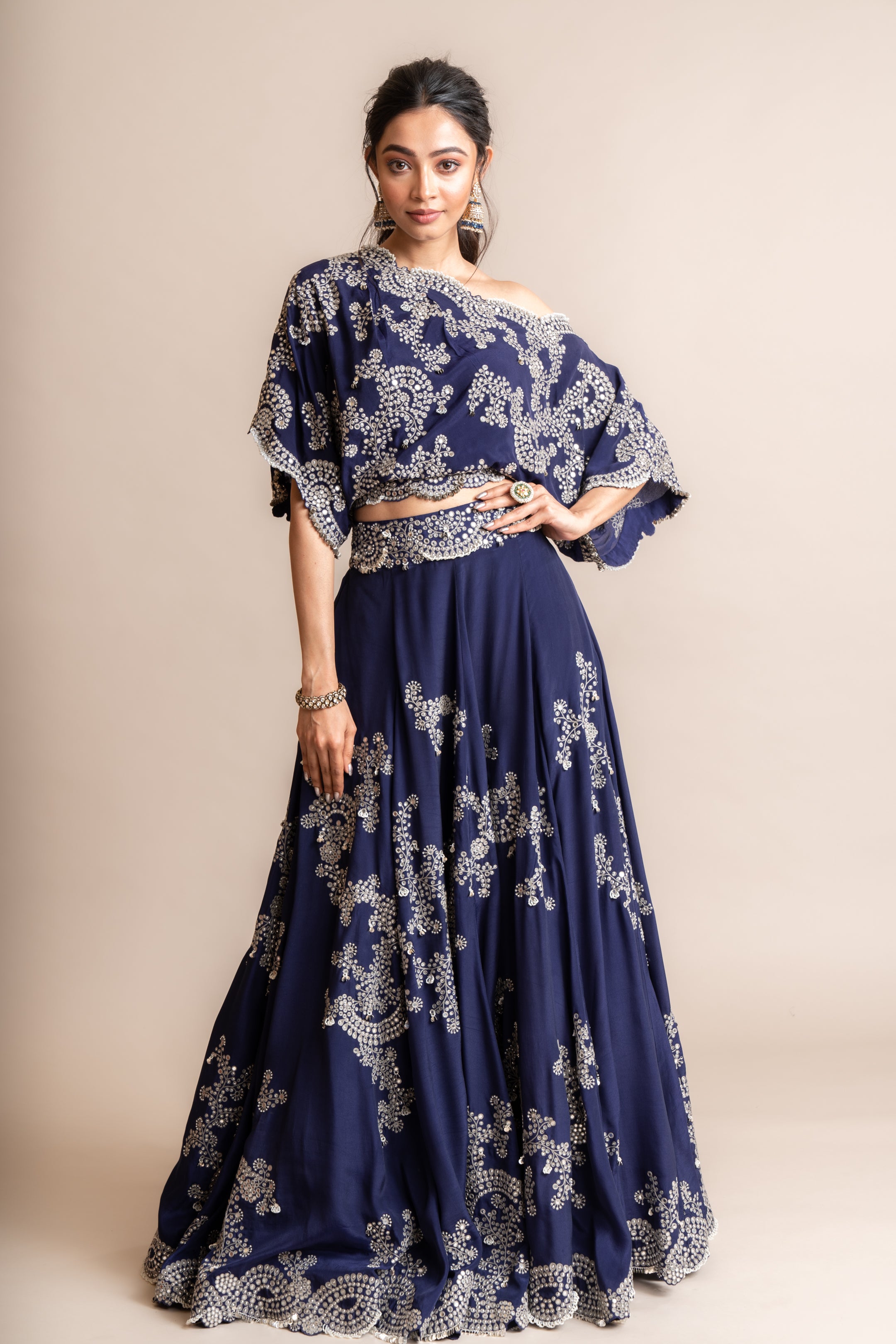 Navy Kaftan Top & Lehenga Set