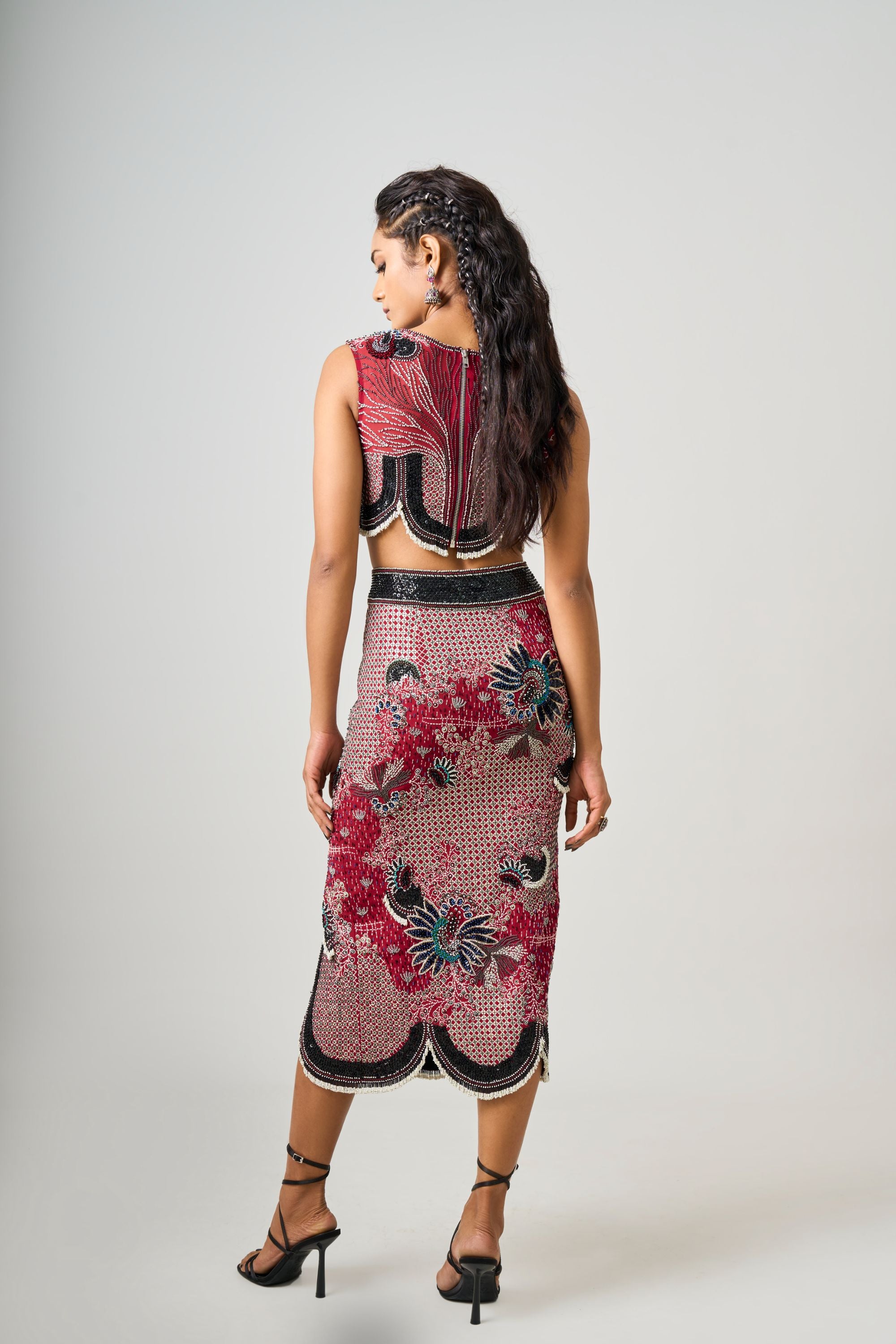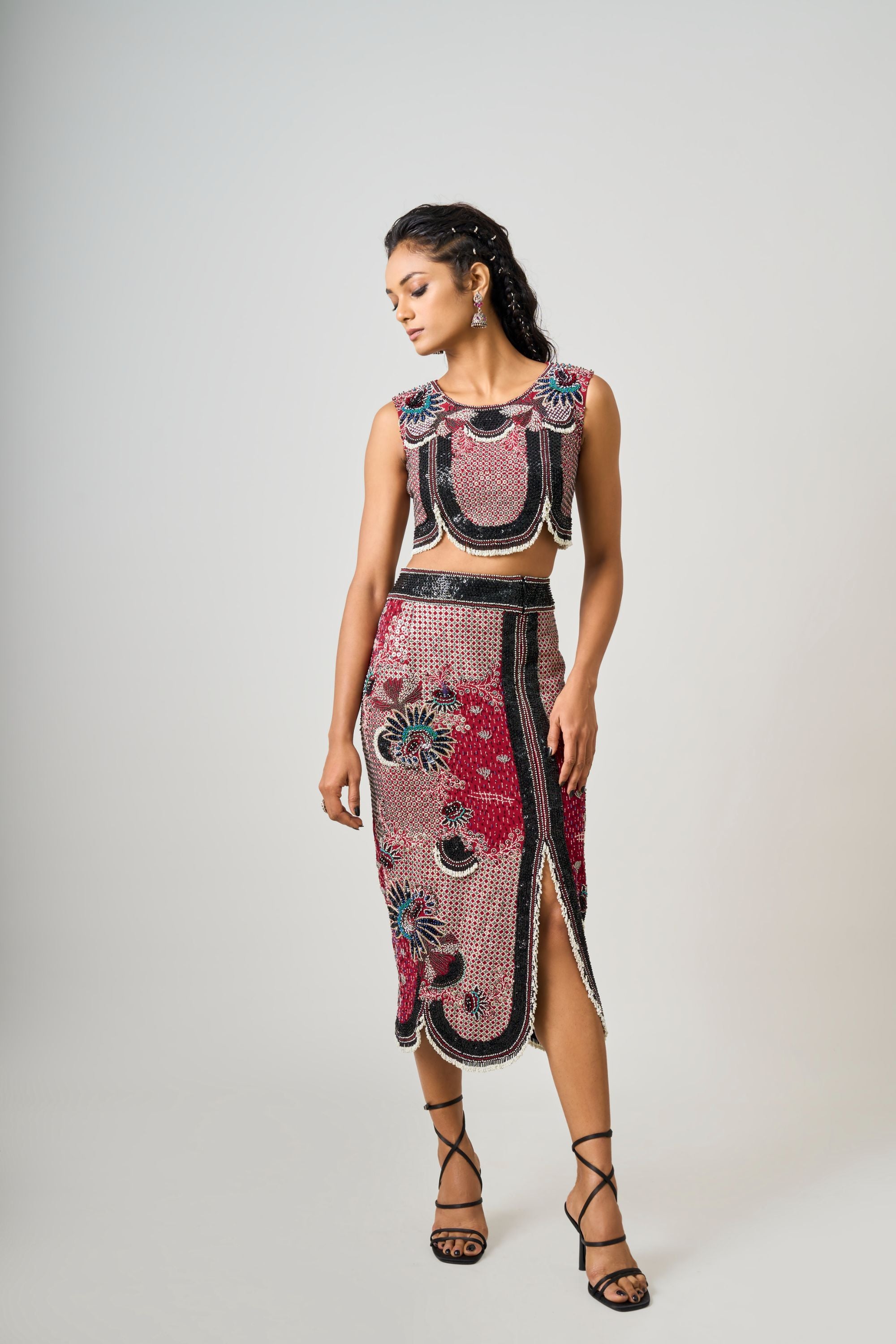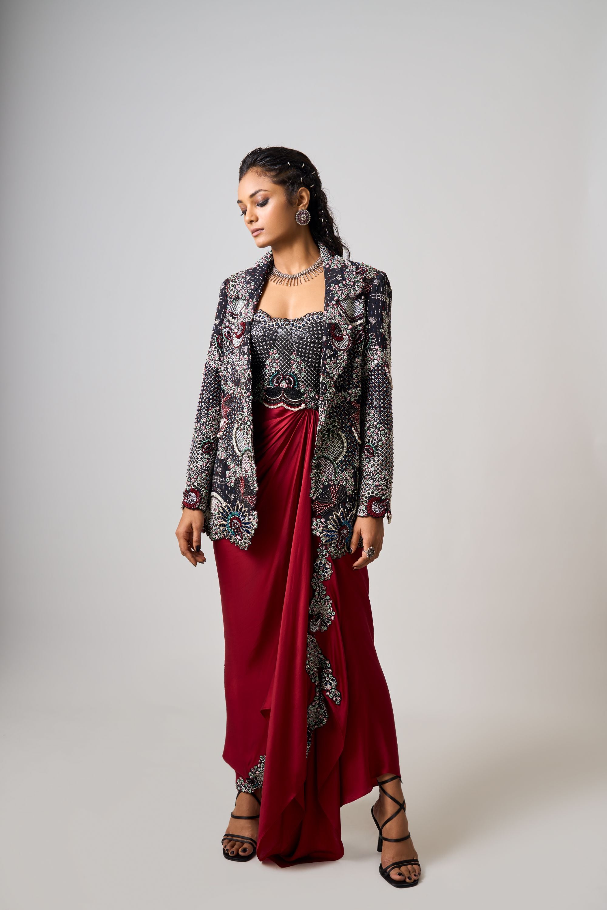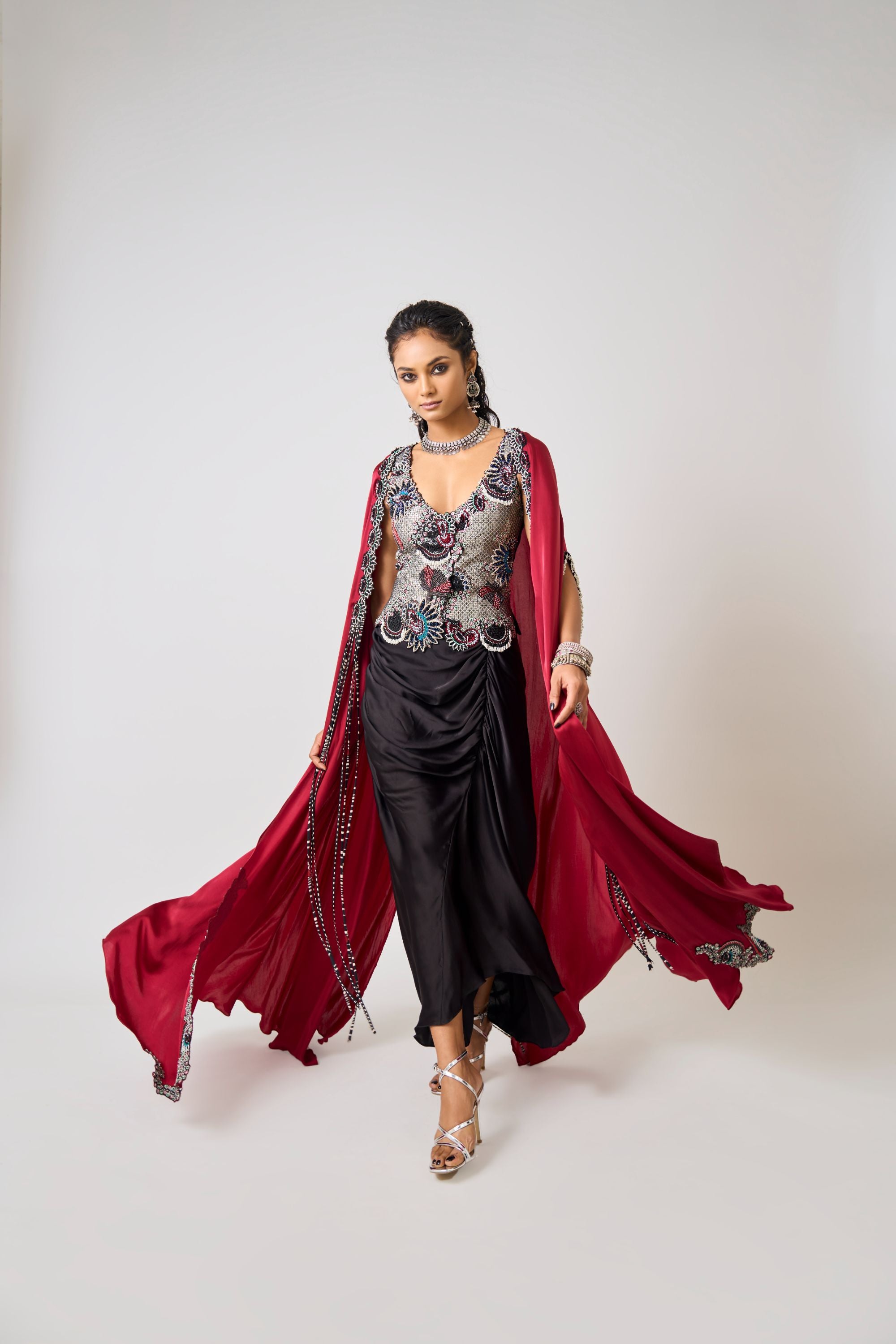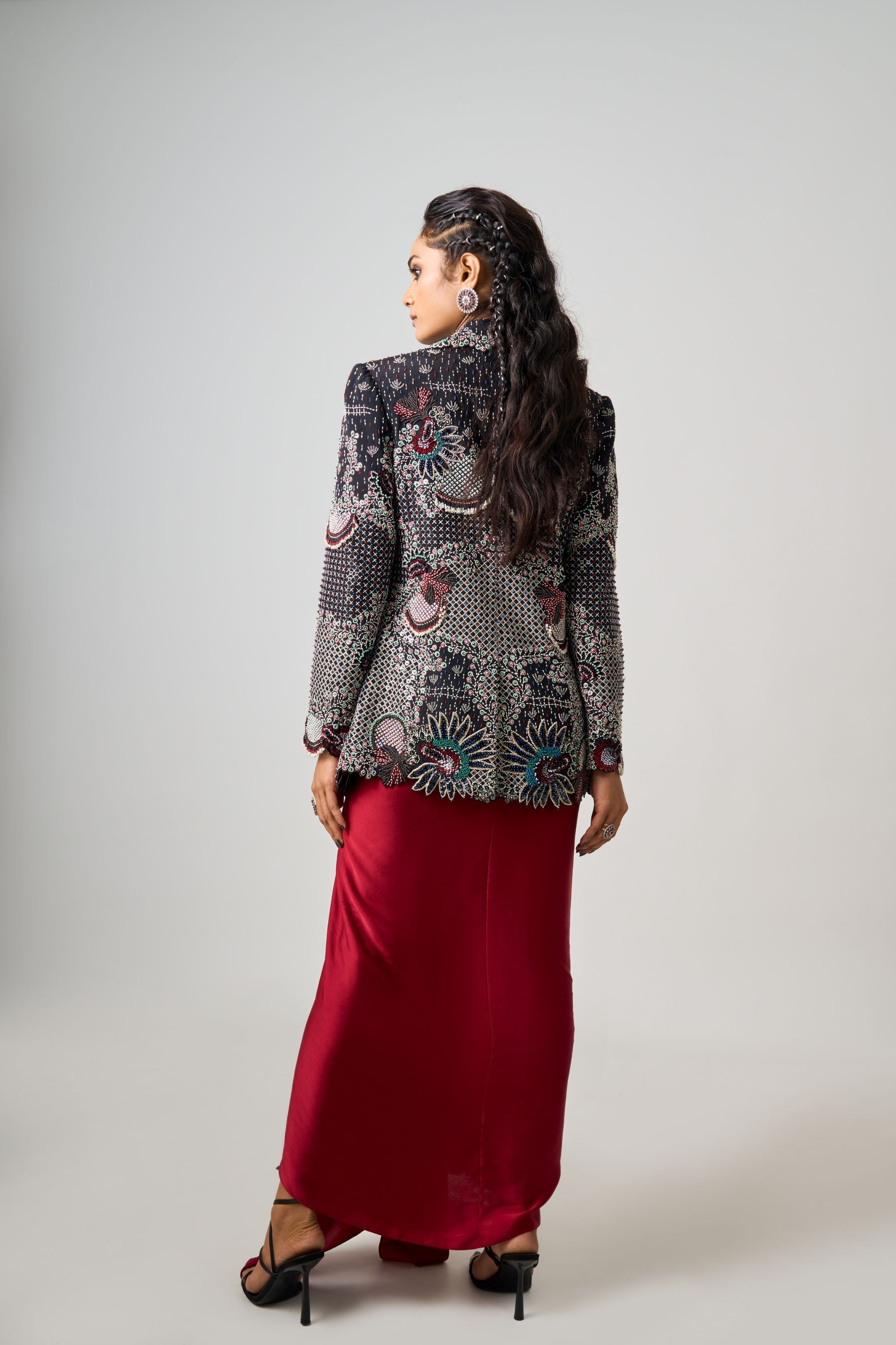 Black Hand-Embroidered Corset With Pick Up Skirt