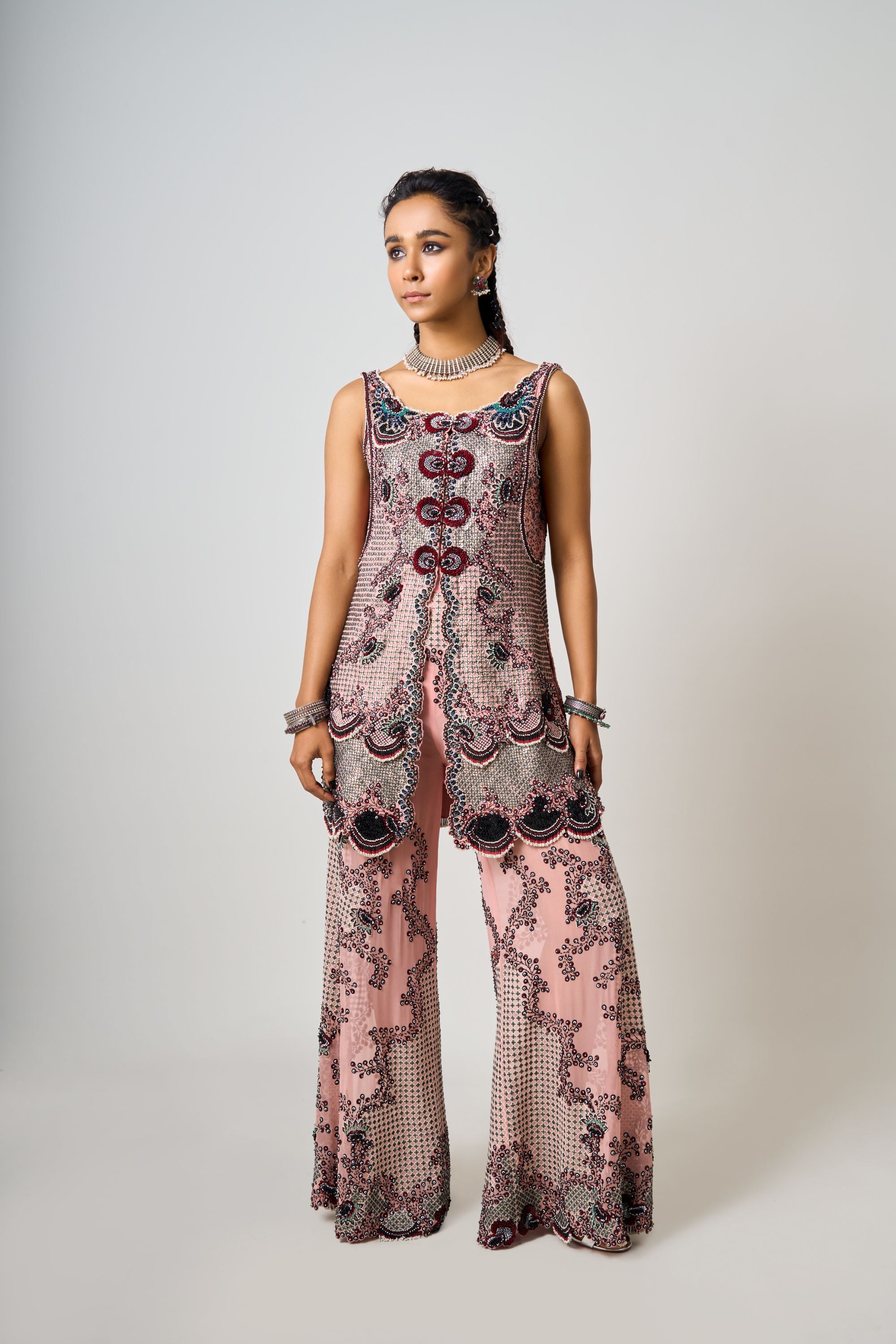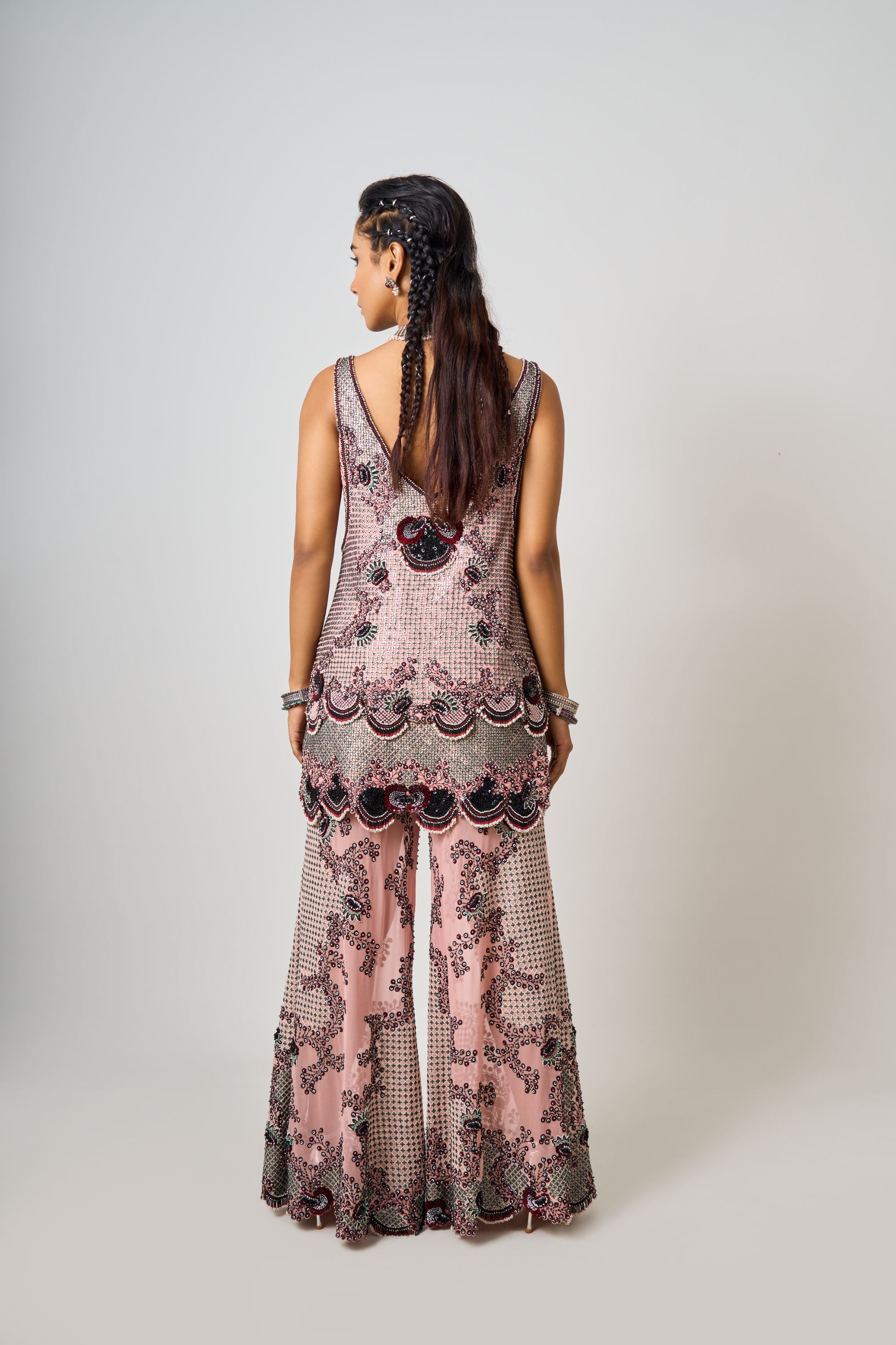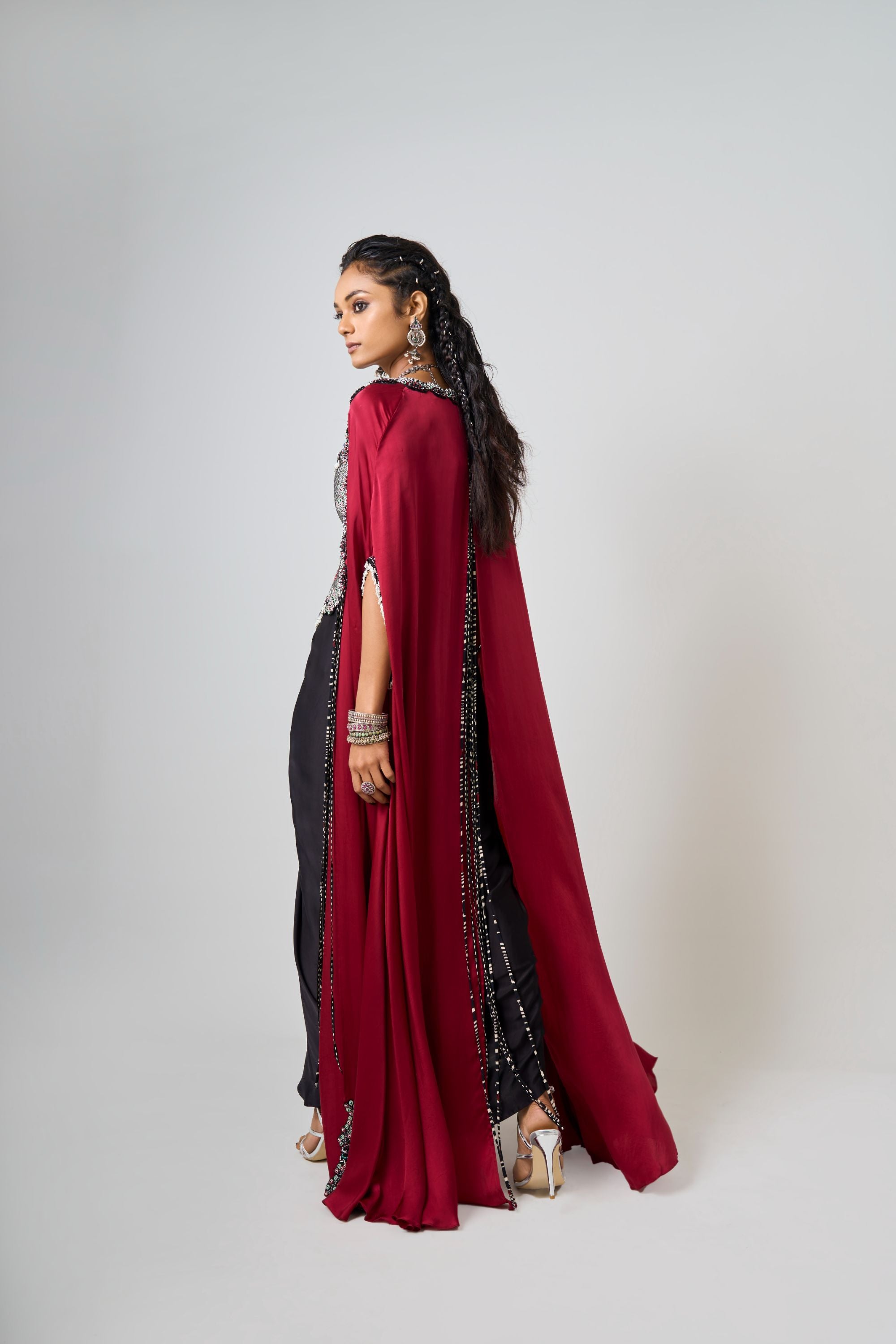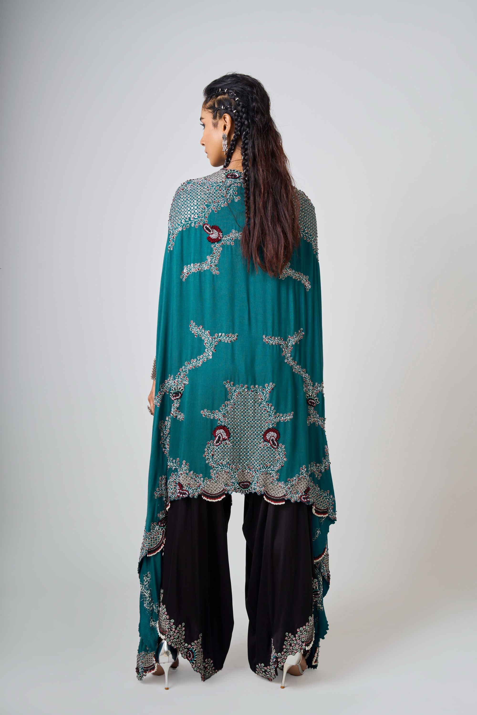 Black Hand-Embroidered Short Kite With Gharara