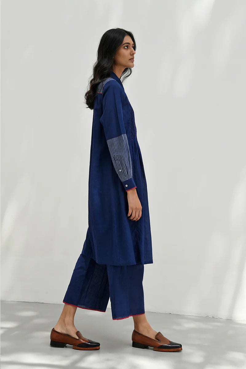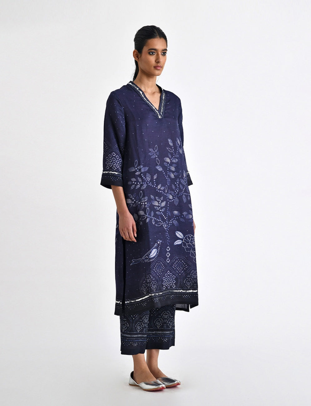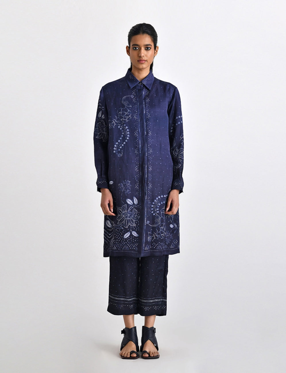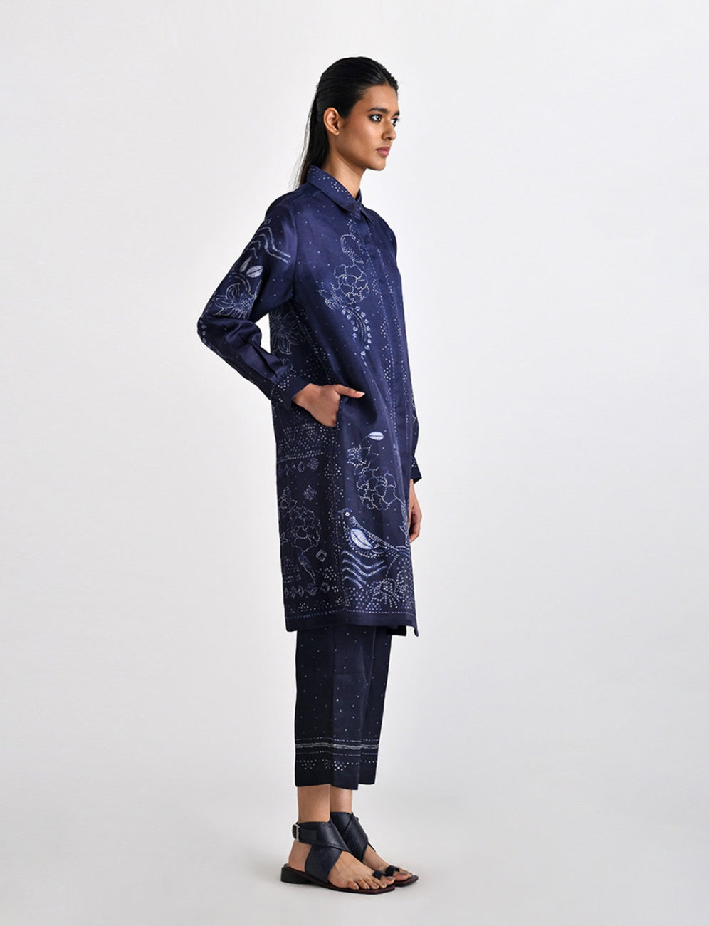 Cobalt Blue Denmar Crushed Silk Tunic With Pant