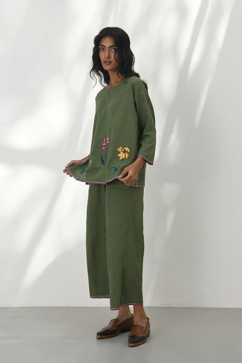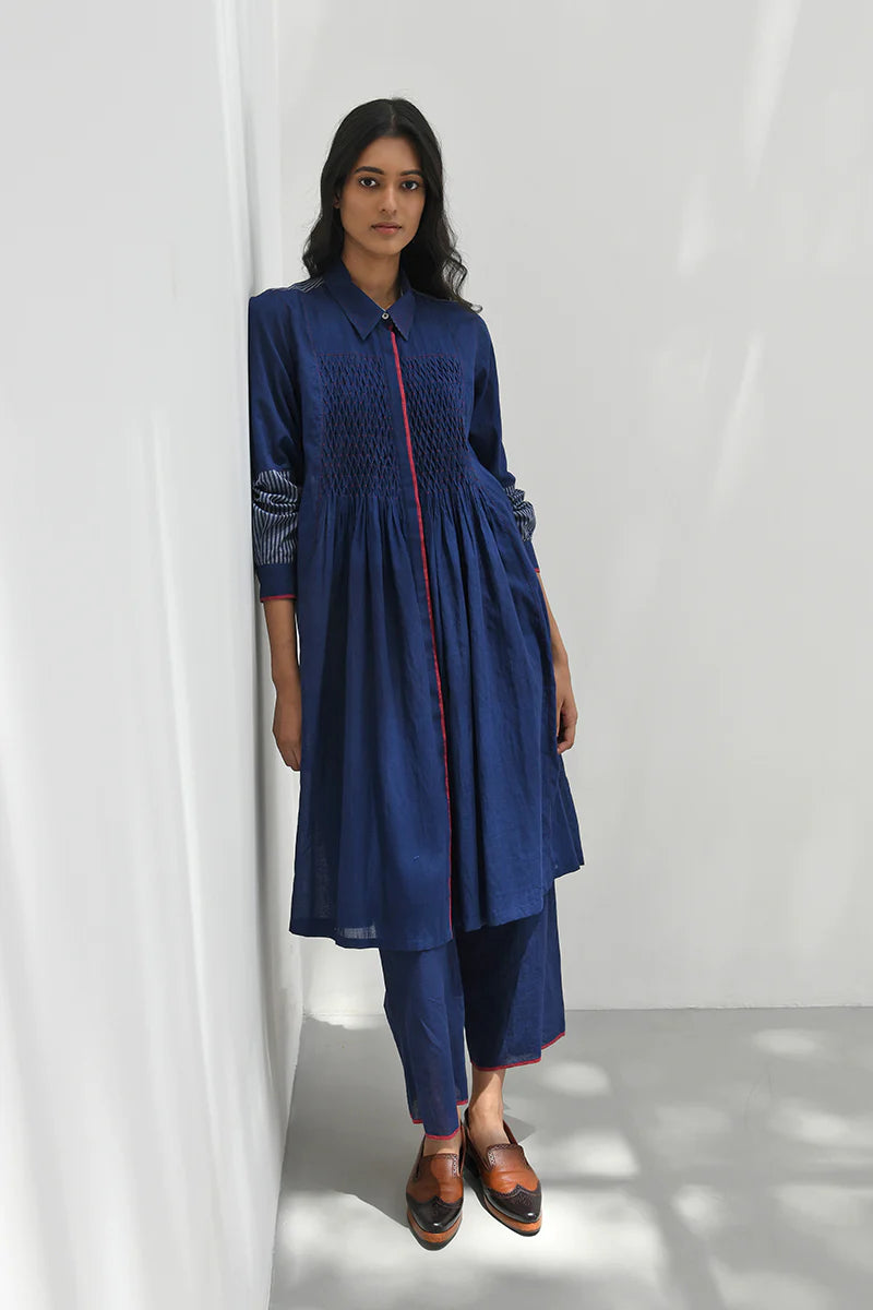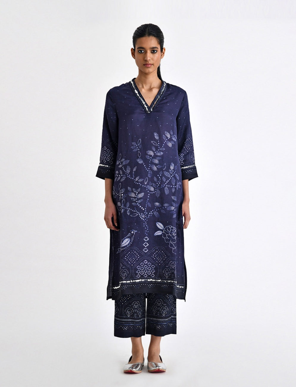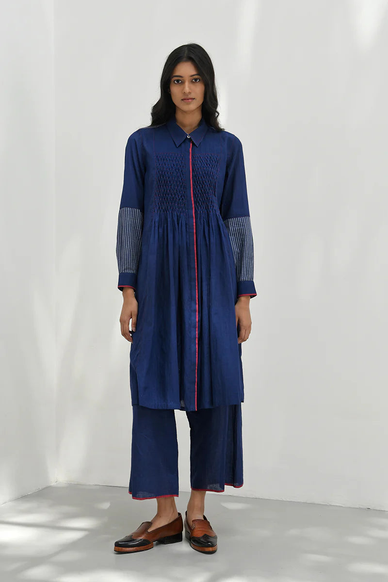 Cobalt Blue Denmar Crushed Silk Tunic With Pant