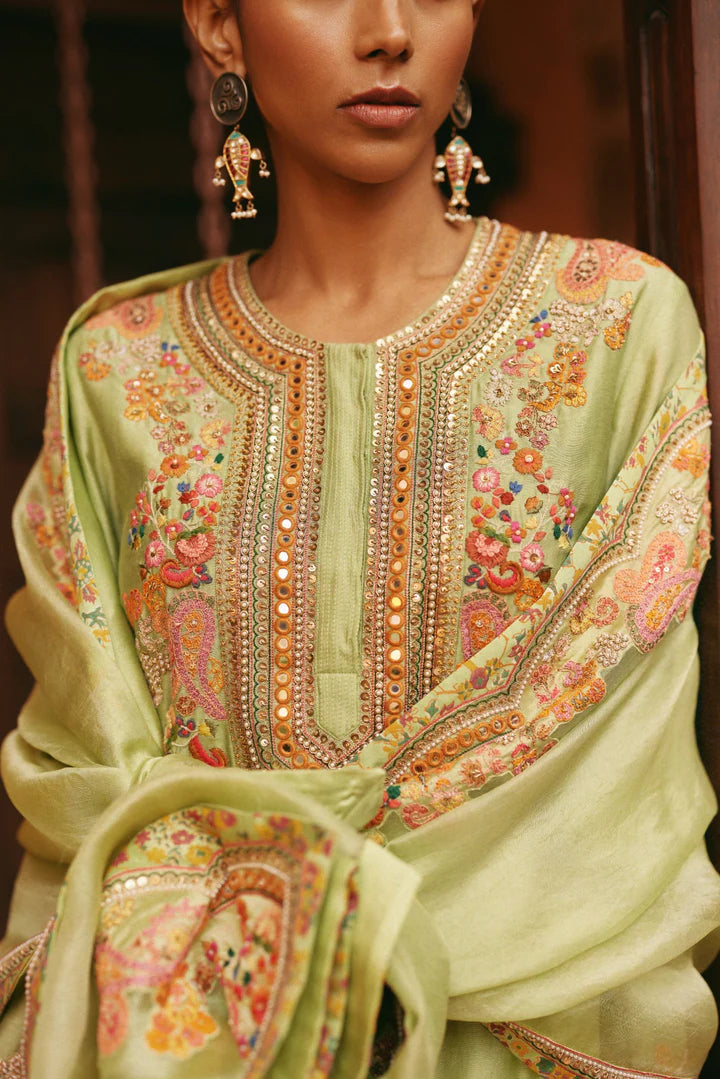 Pista Green Heavy Kalidar With Ombre Dupatta