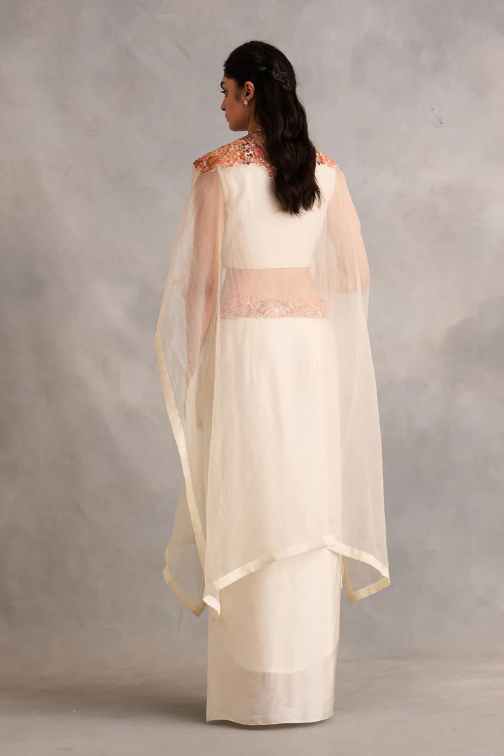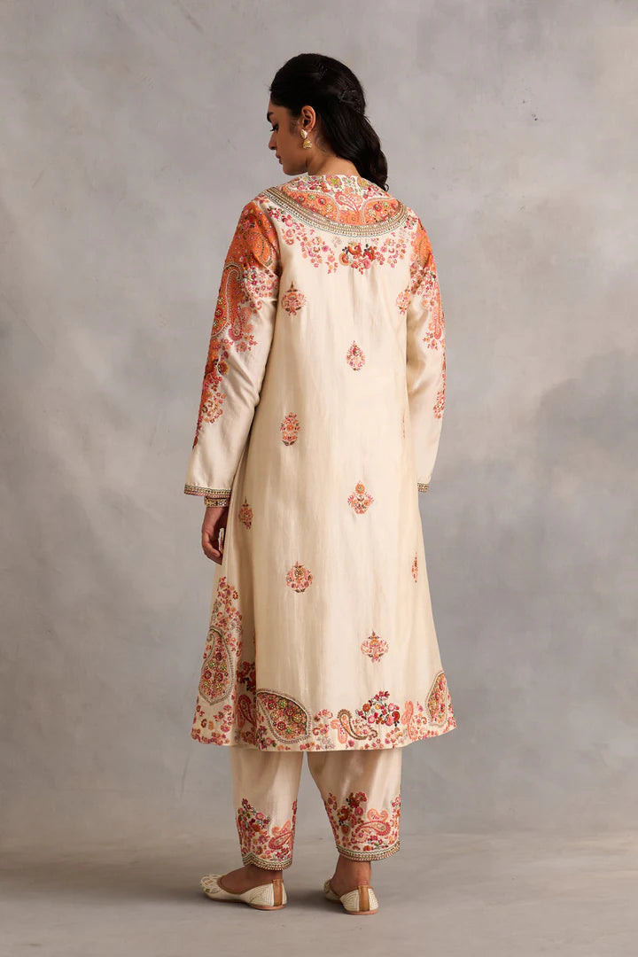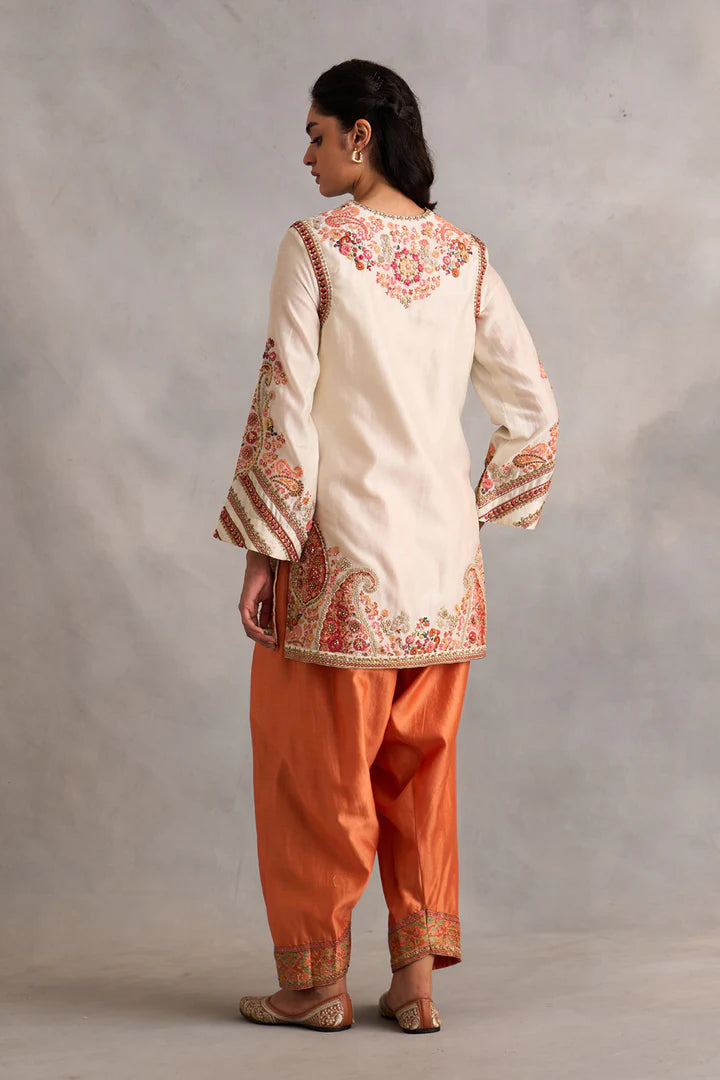 Yellow Crushed Asymmetrical Kalidar With Printed Pants