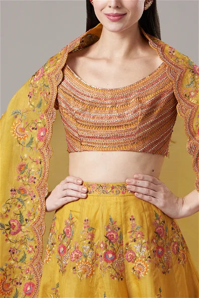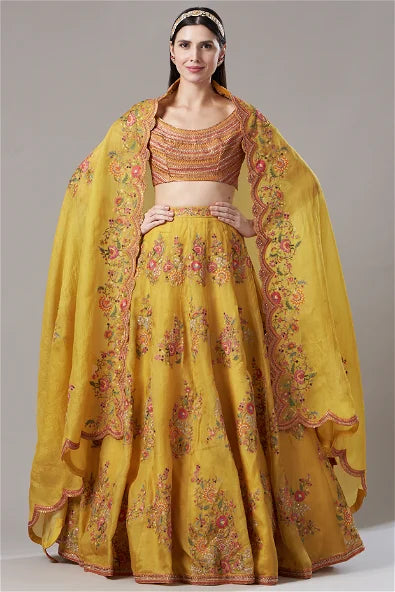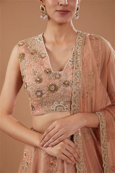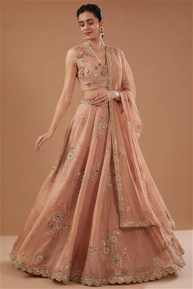 Peach Organza Shimmer Dori Embroidered Lehenga Set