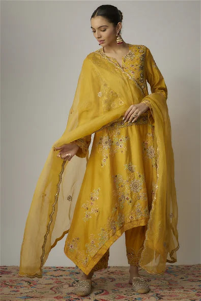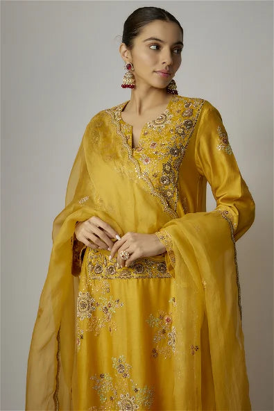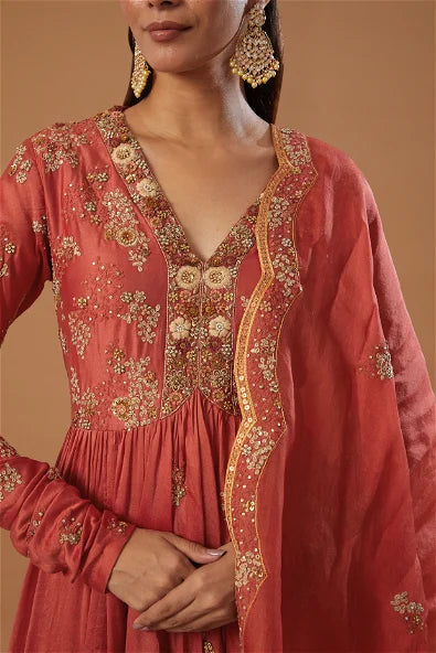 Peach Organza Shimmer Dori Embroidered Sharara Set
