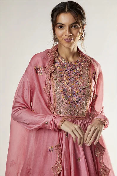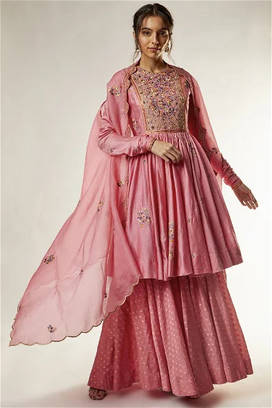 Yellow Dupion Printed & Embroidered Lehenga Set