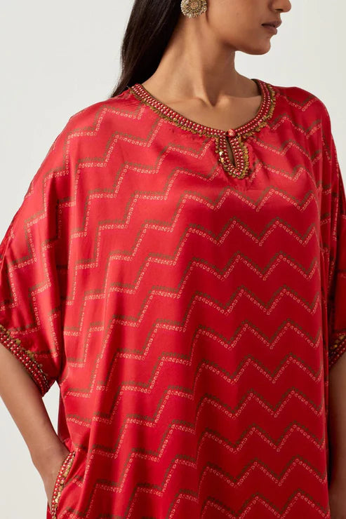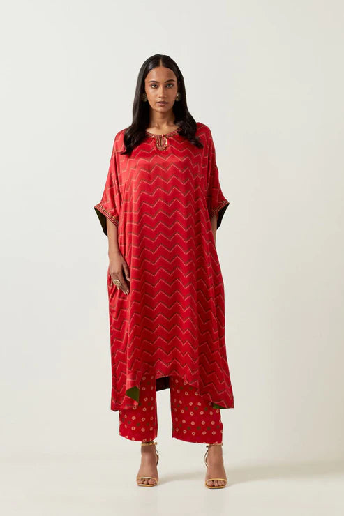 Red Bandhani Kaftaan With Pants