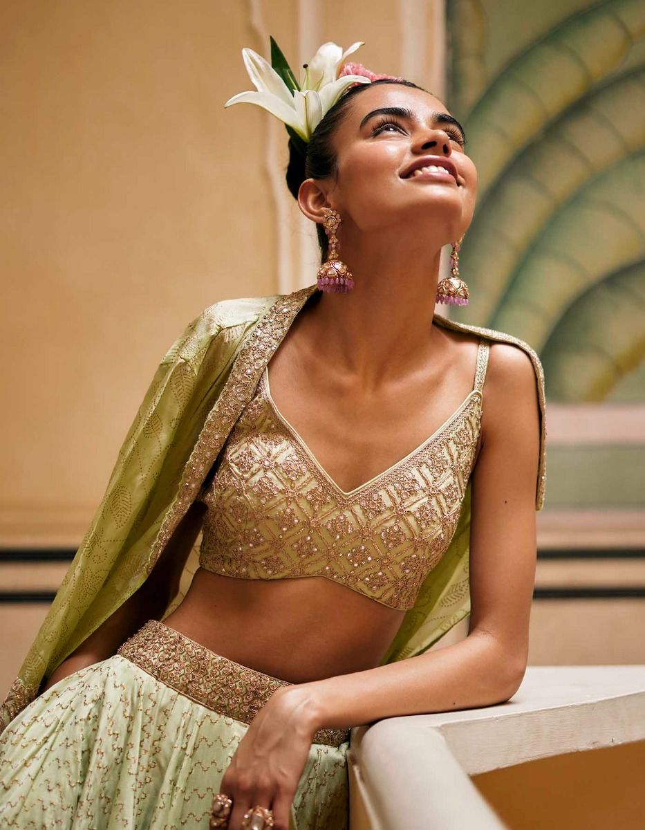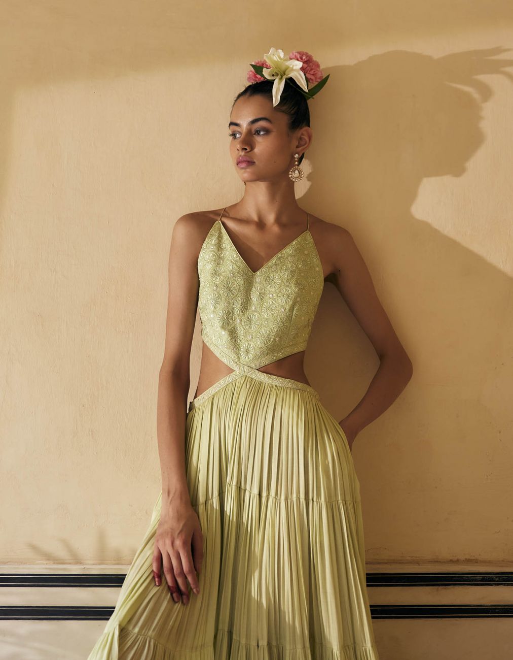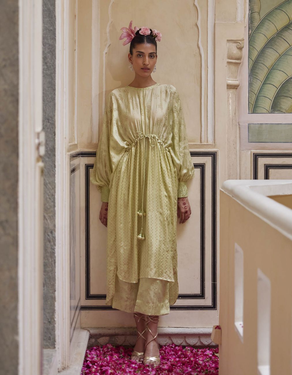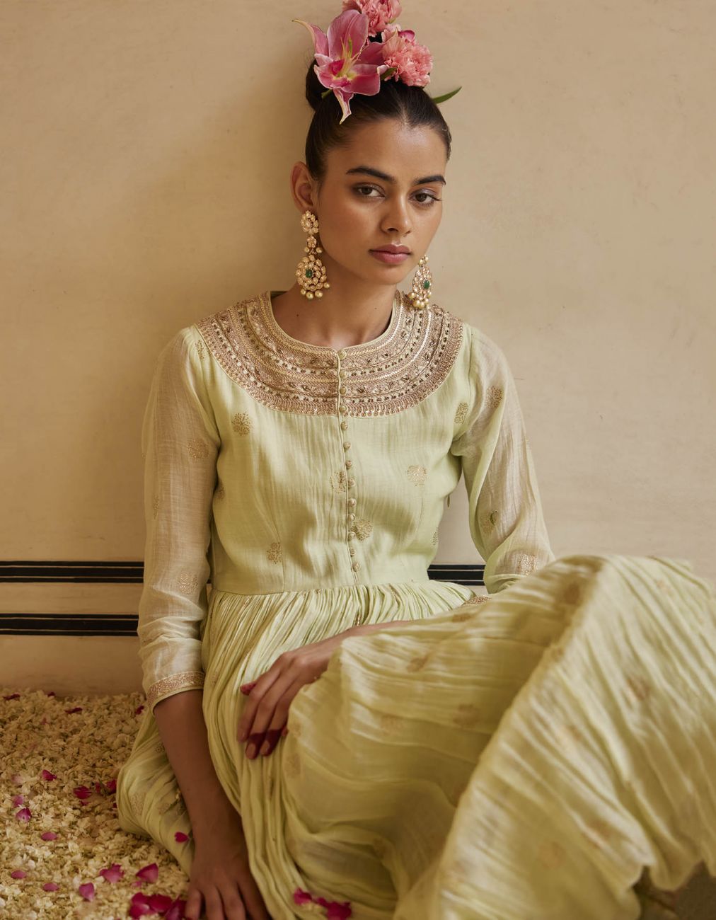 Mint Silk Anarkali Paired With Pants & Dupatta