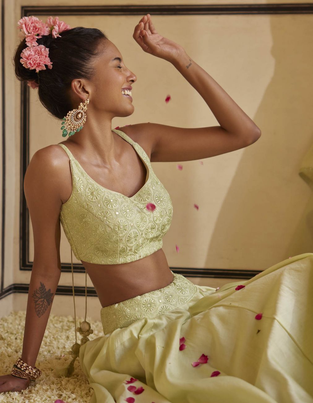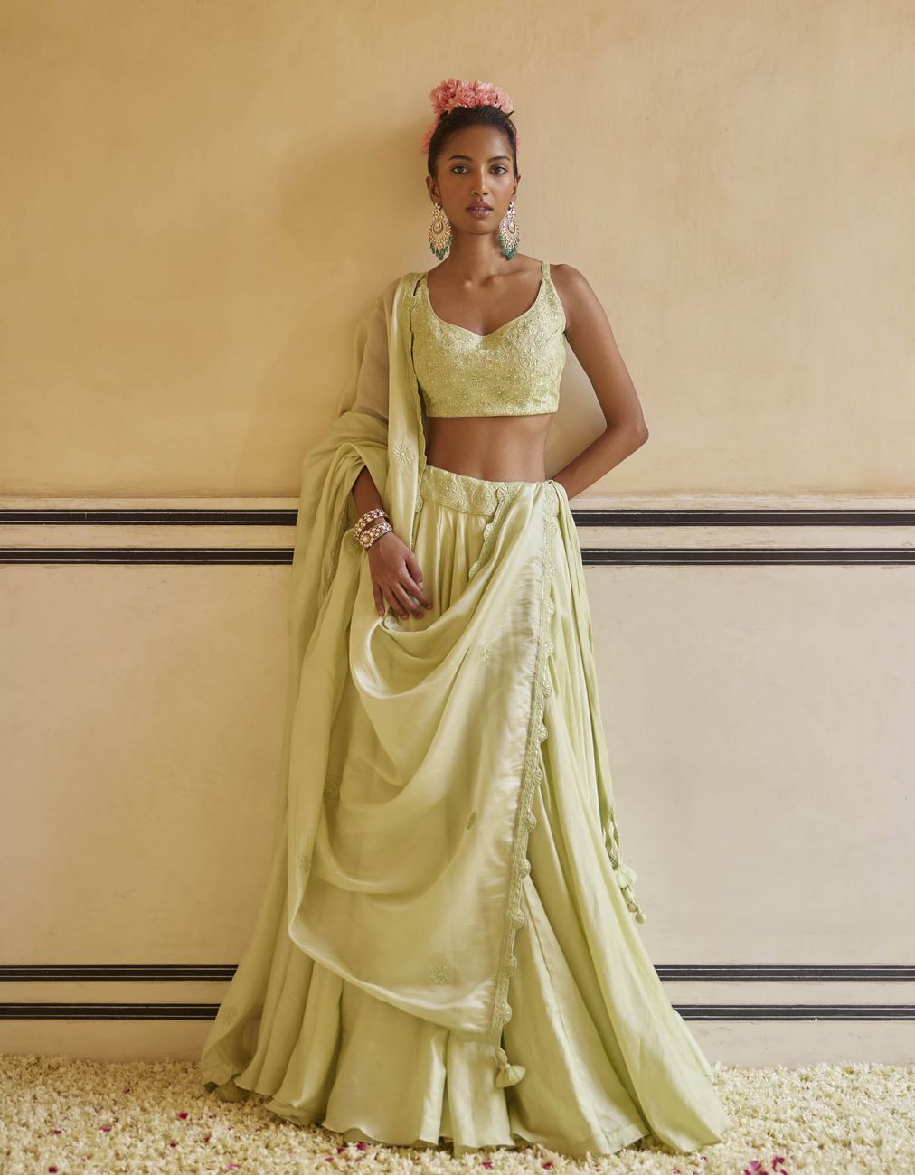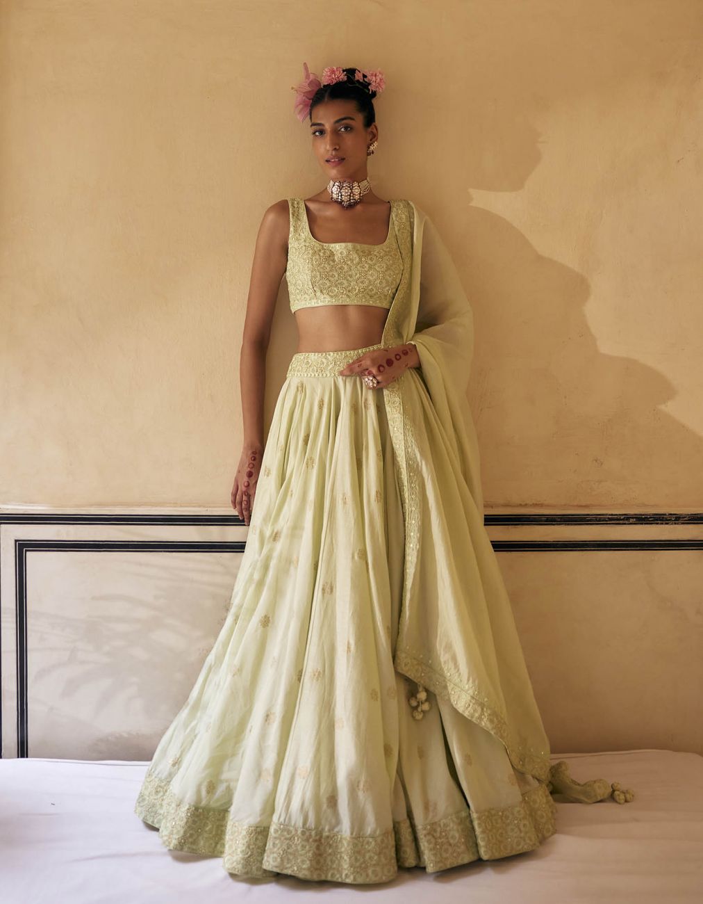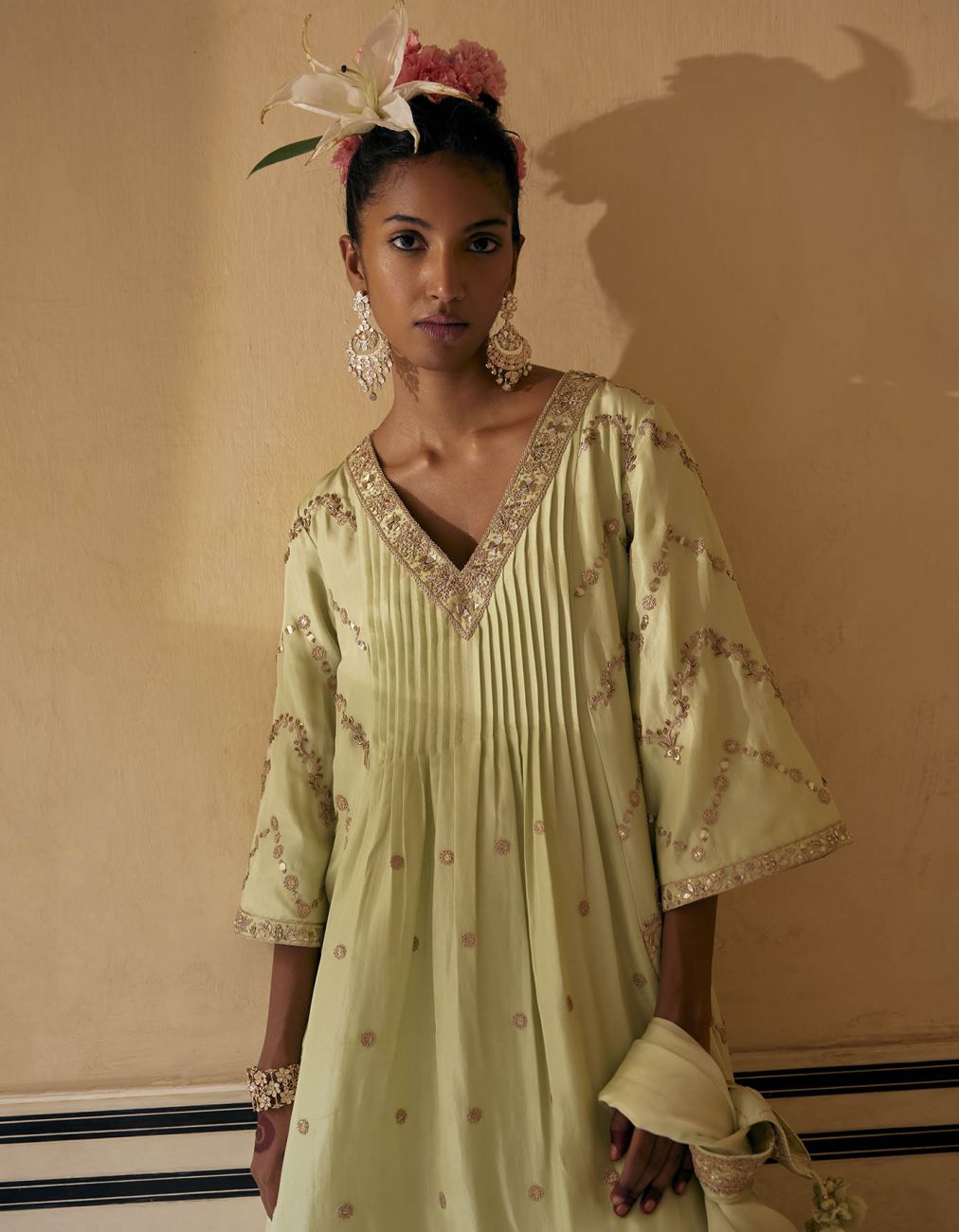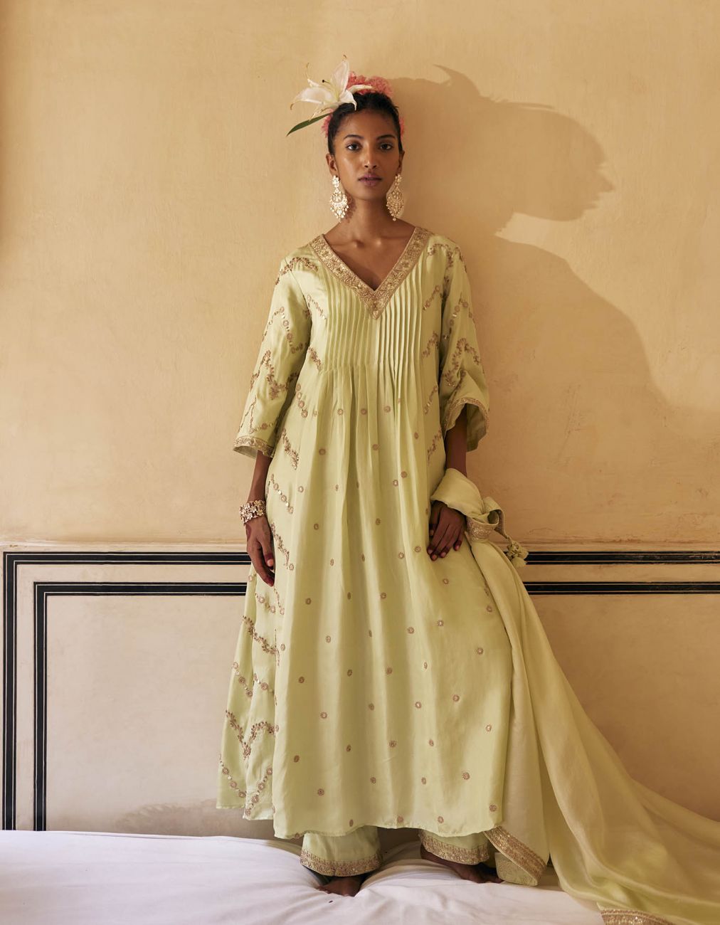 Mint Resham Work Kurta Paired With Pants & Dupatta