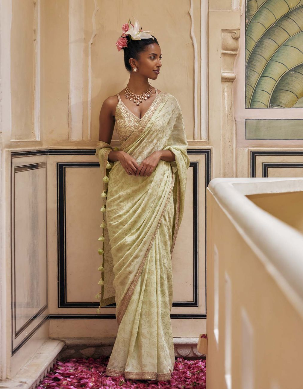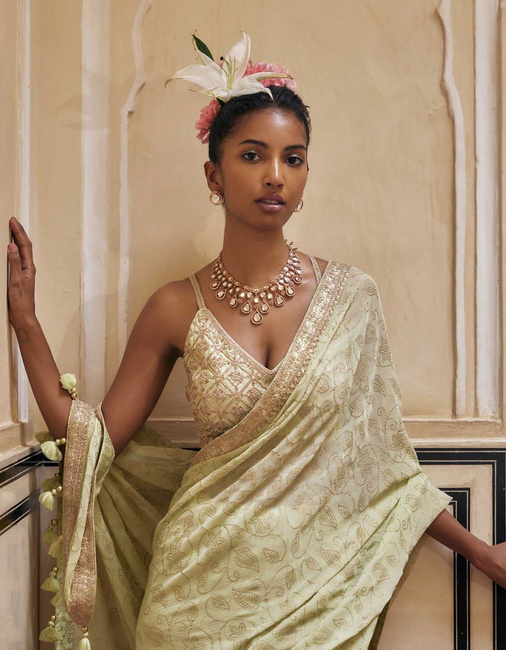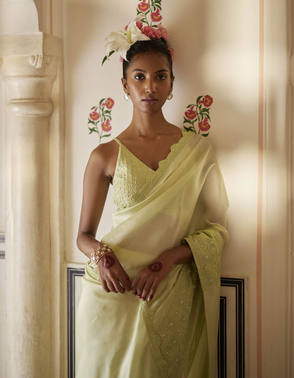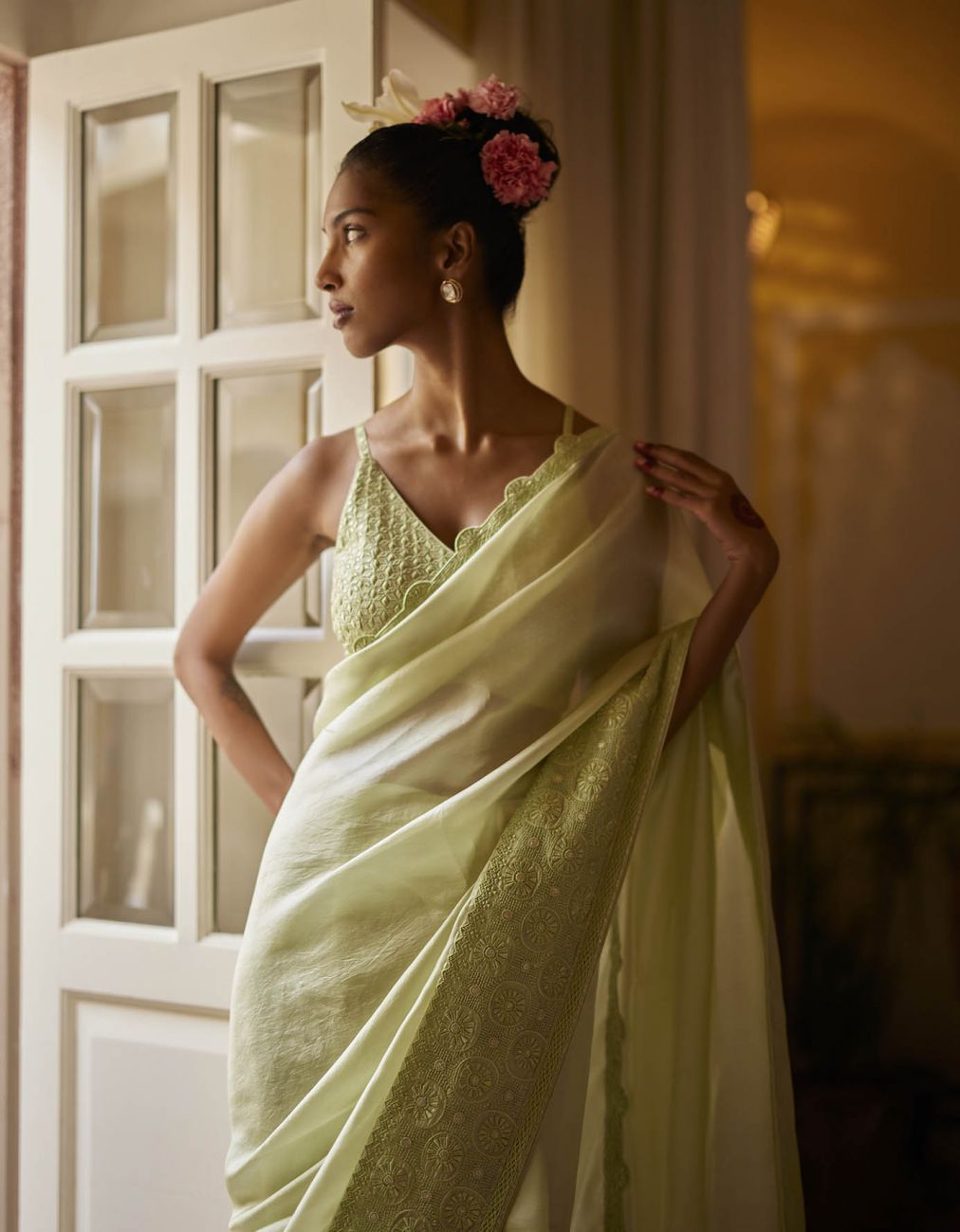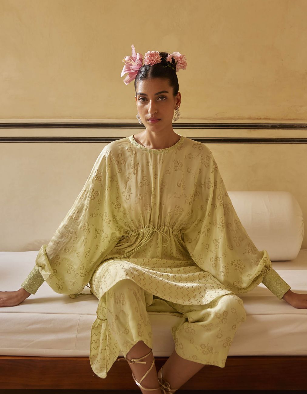 Mint Resham Work Kurta Paired With Pants & Dupatta
